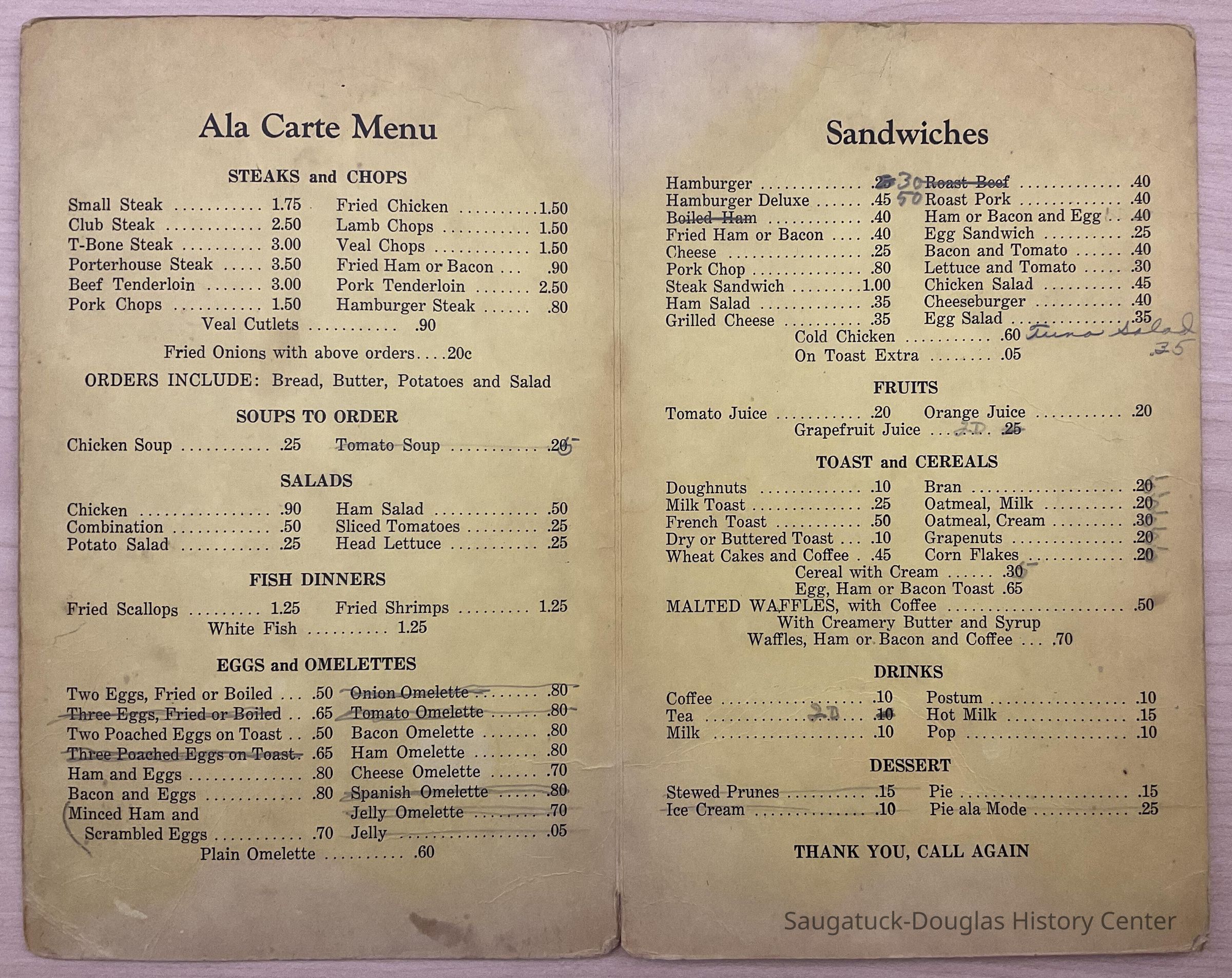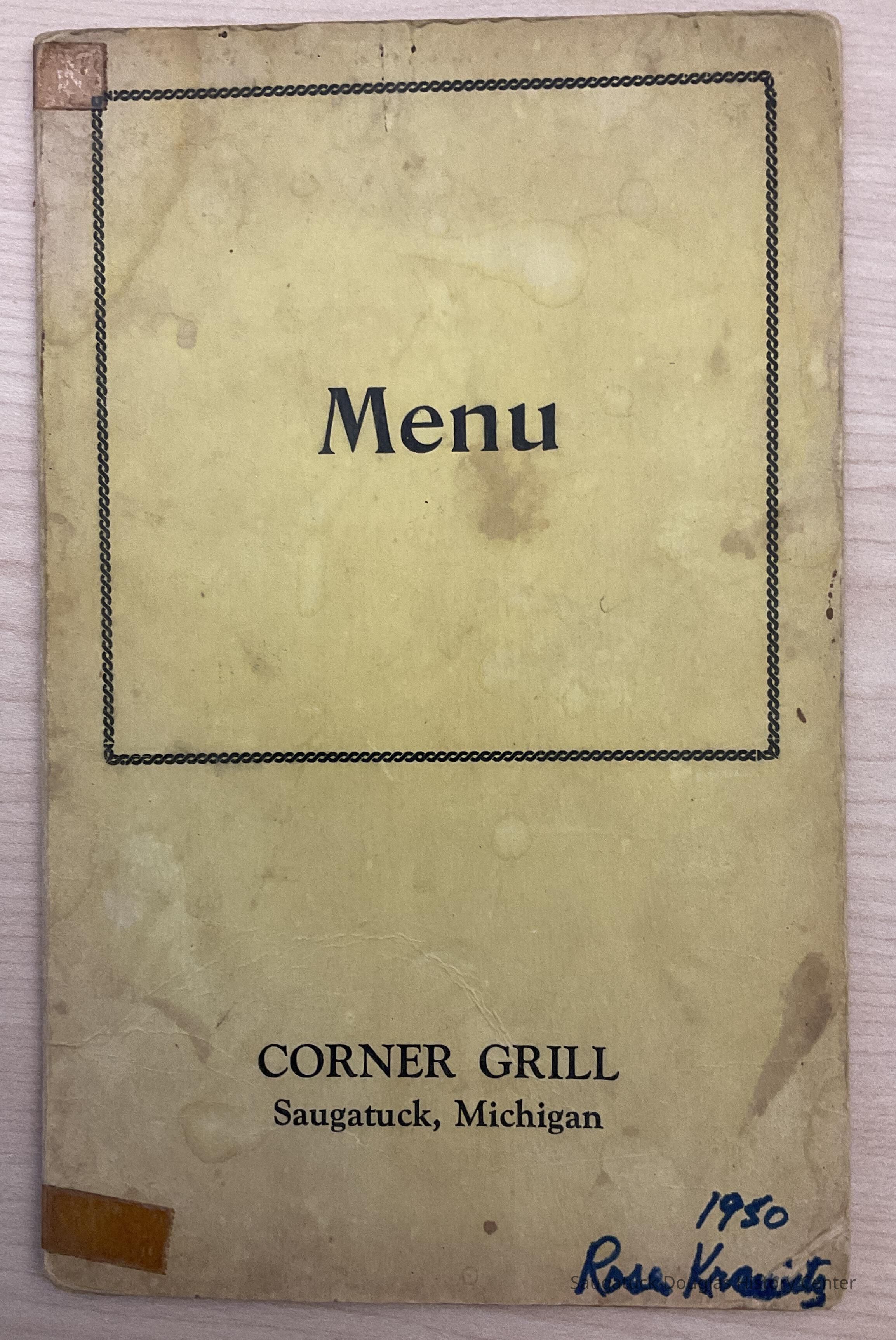 menu of the Corner Grill, Saugatuck, MICollection