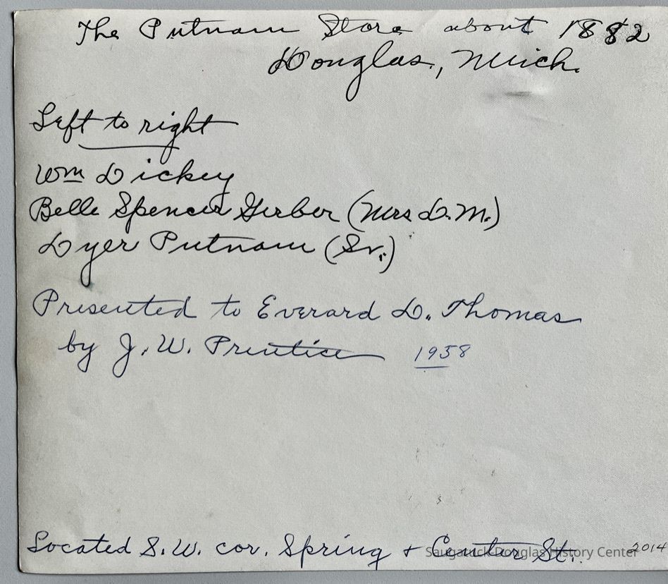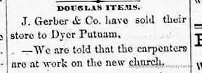 Dyer C. Putnam was a founder of Douglas. [See Person profile.] The D.C. Putnan store was one of two general stores in 1872, the other bring Thos. Gray.