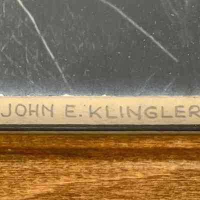 The photo is behind glass, mounted to a backing board with a pinstripe detail and a wooden frame.Photograph Details