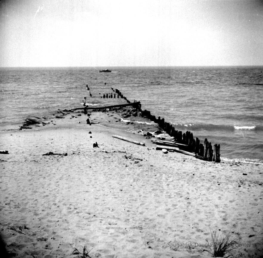 628 1/2 bw Saugatuck - Beach 8/1942 Pilings at old river mouth