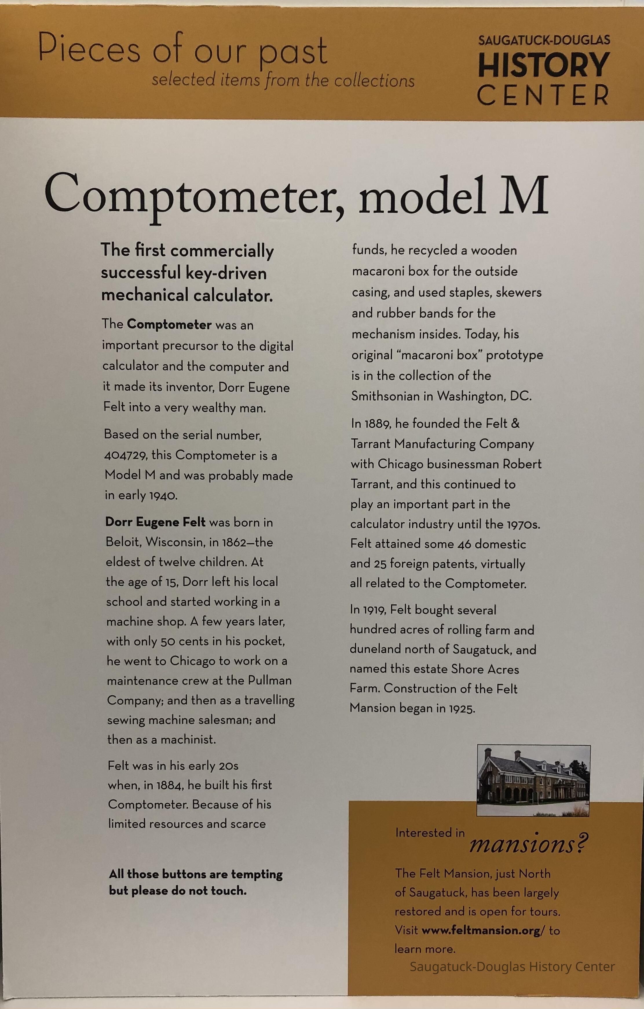 The Comptometer was an important precursor to the digital calculator and the computer and it made its inventor, Dorr Eugene Felt into a very wealthy man.