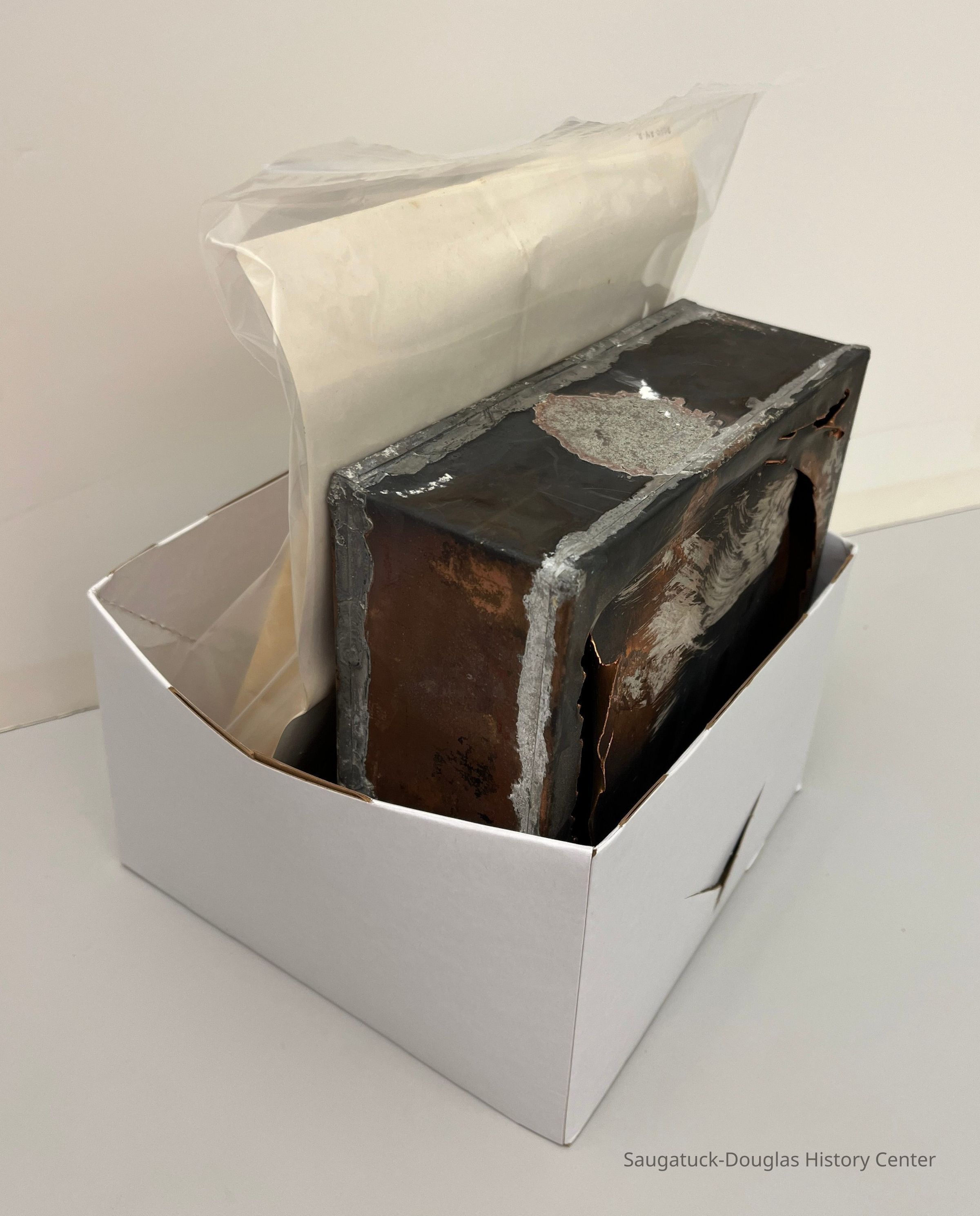 This box of mementos was buried when the hospital construction began in 1958Collection