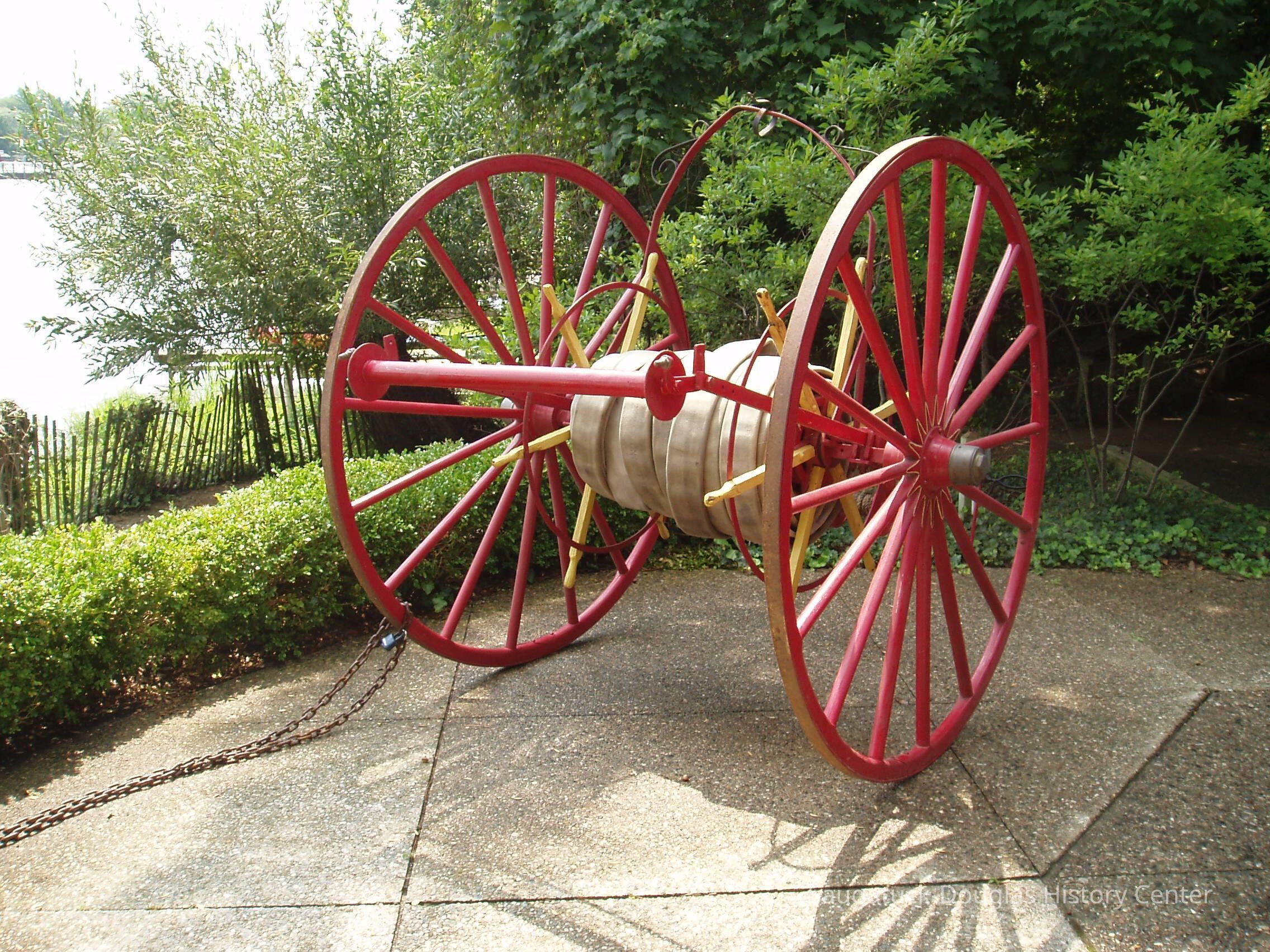 A 1923 era fire hose cart used by the Saugatuck's Fire Department. The hose reel has been returned to the Saugatuck Township Fire District.Collection