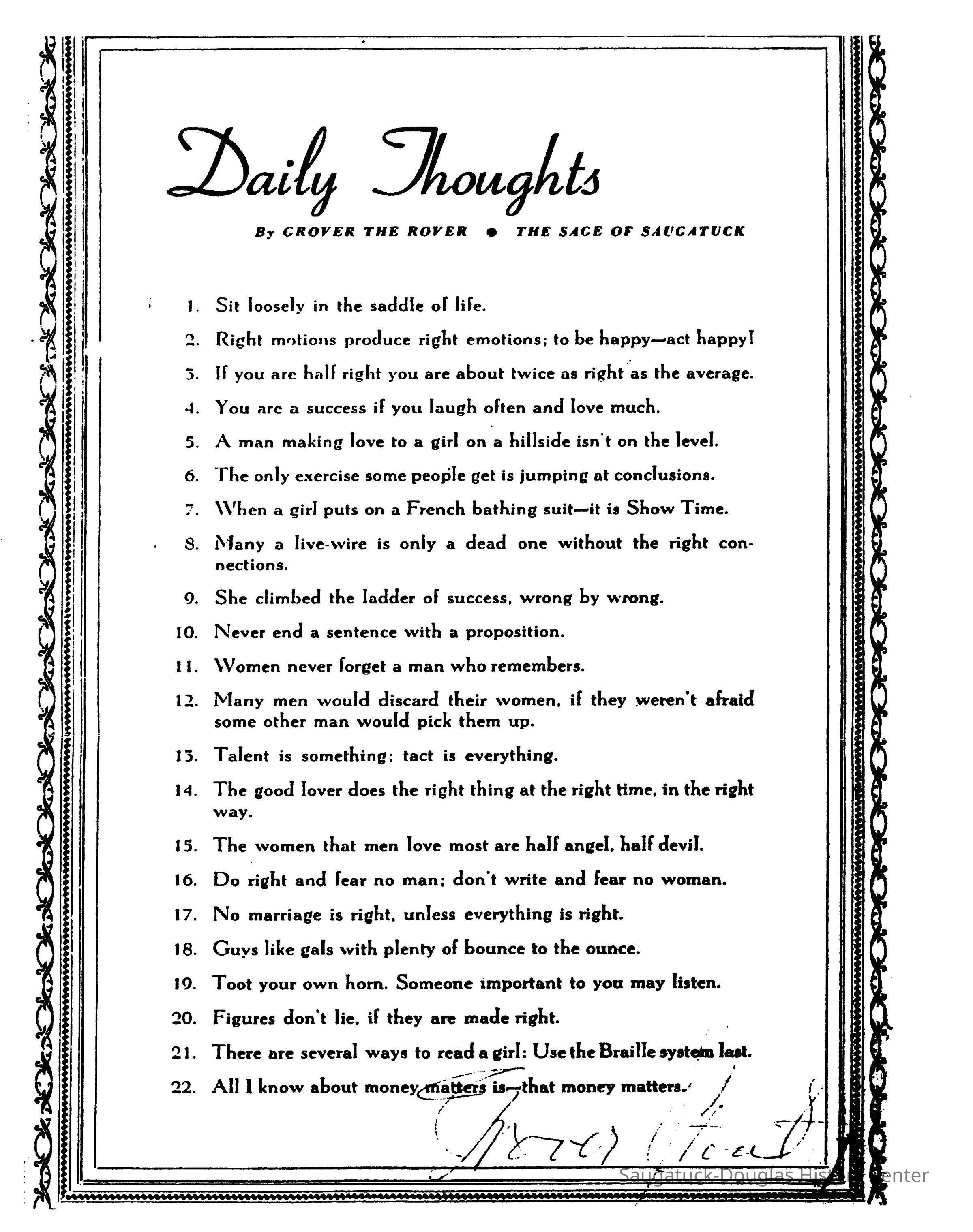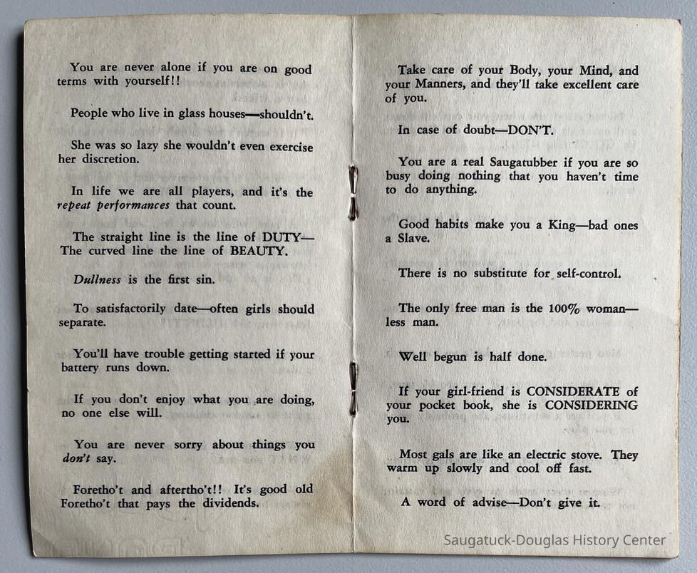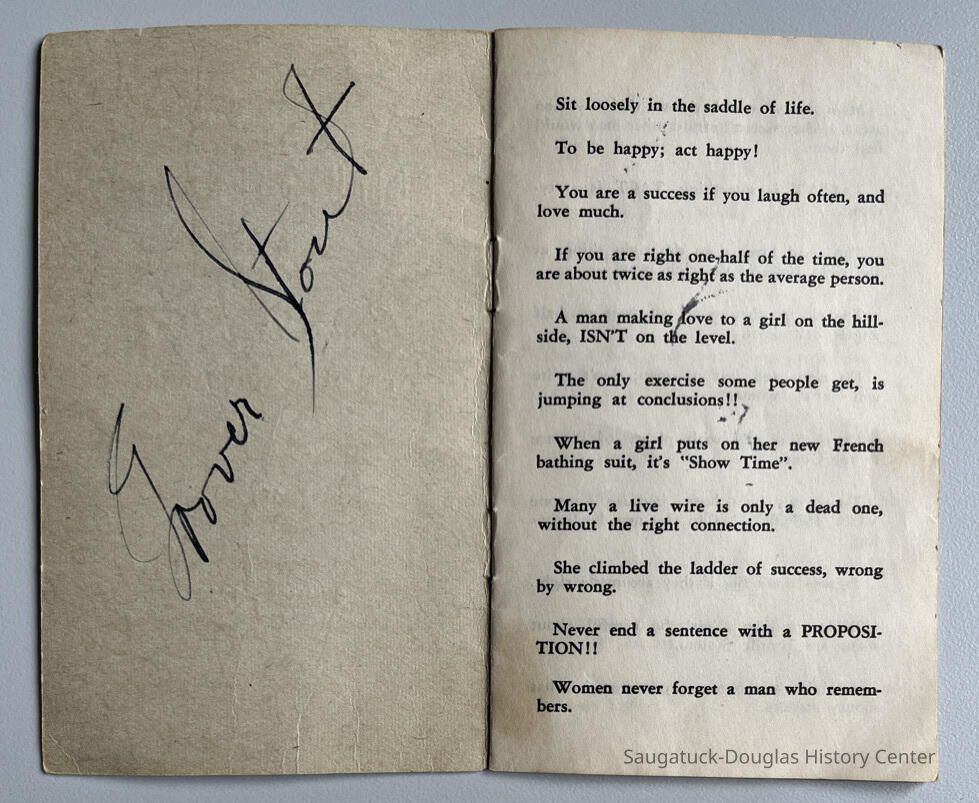 8-page booklet of sayings — borrowed from other sources — compiled by Grover Stout.