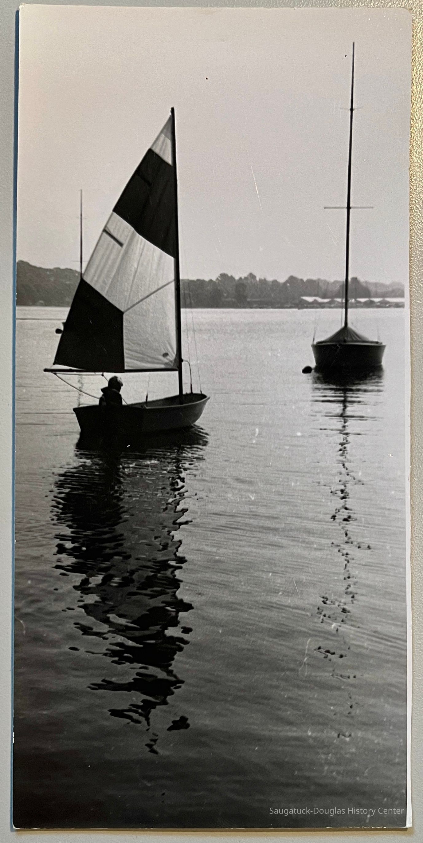 This photo is likely of David W. Lefley, son of Robert Sidney "Bob" Lefley III, sailing a Saugatuck Yacht Club vessel on Lake Kalamazoo, circa 1970sCollection
