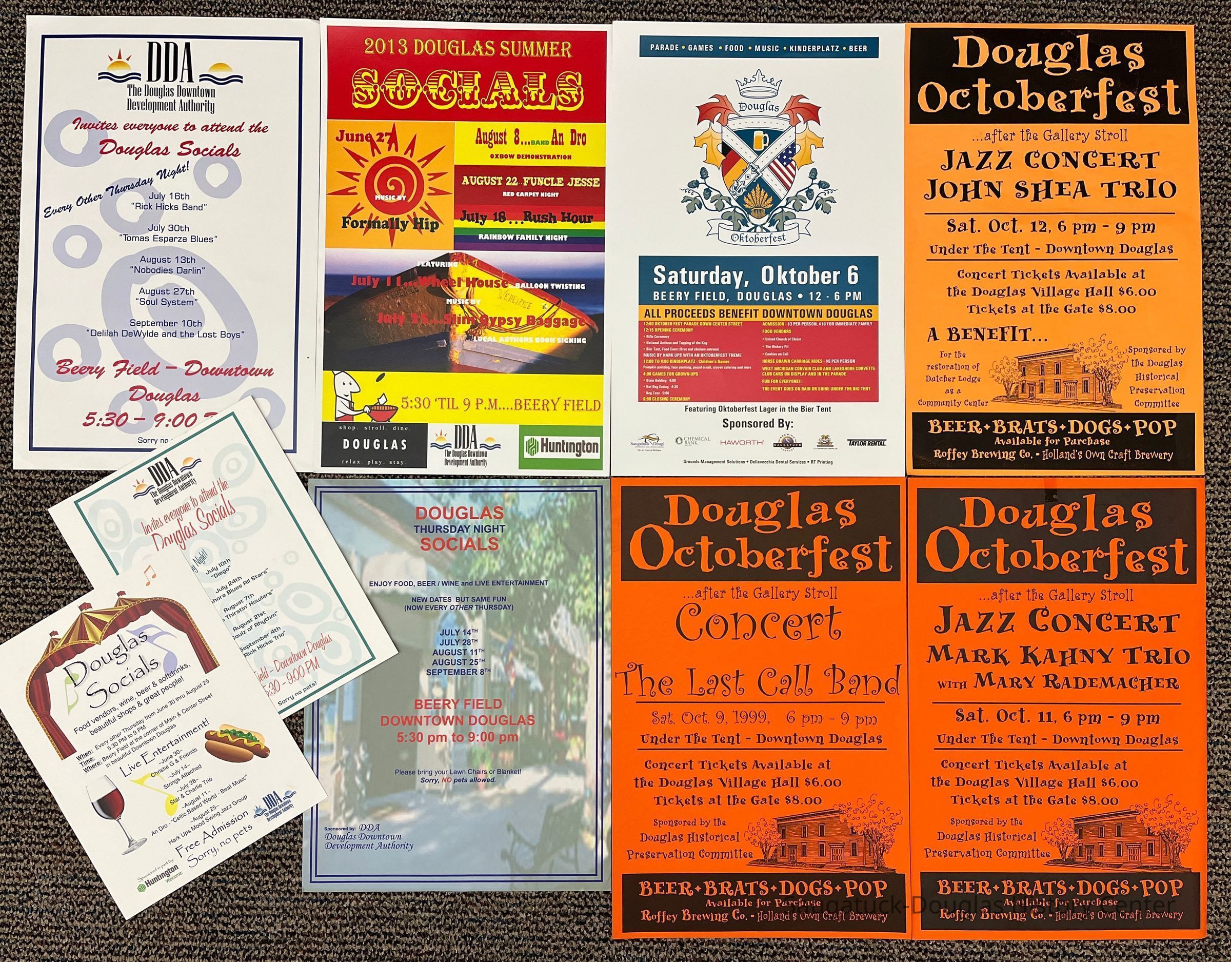 Three 17x11" Douglas Oktoberfest posters, one in color, three photocopied on orange paper.Collection