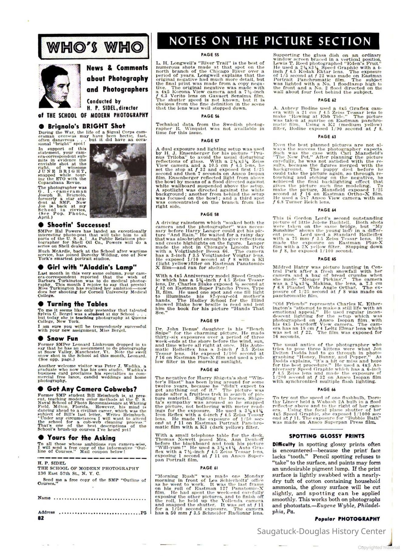 Les Schierholtz was a photographer from the western suburbs of Chicago active in the 1940s. Mentioned in association with Western Springs, Brookfield and LaGrange, Illinois. Photo printed in "Popular Photography" magazine, May 1946, page 61Collection