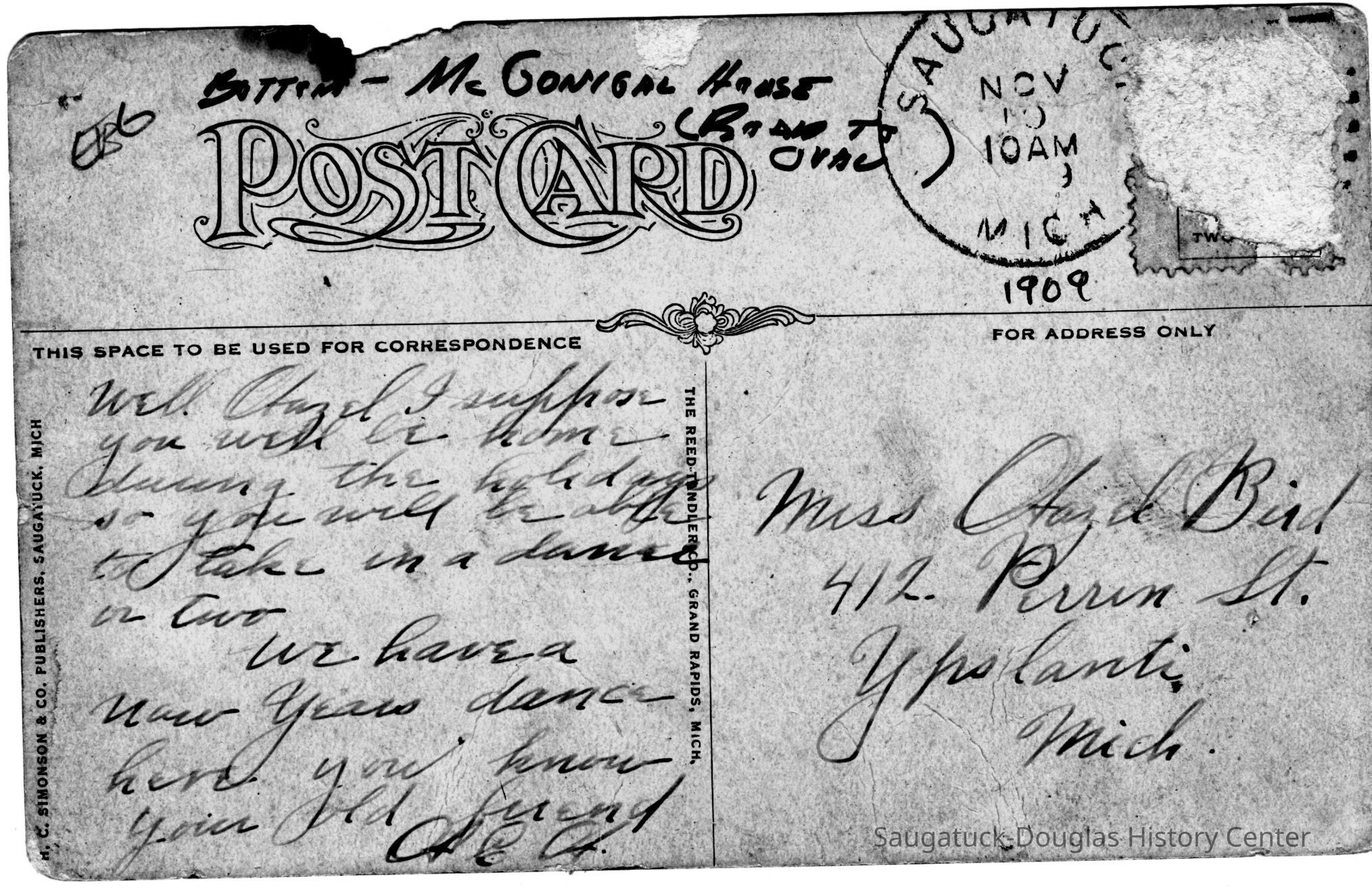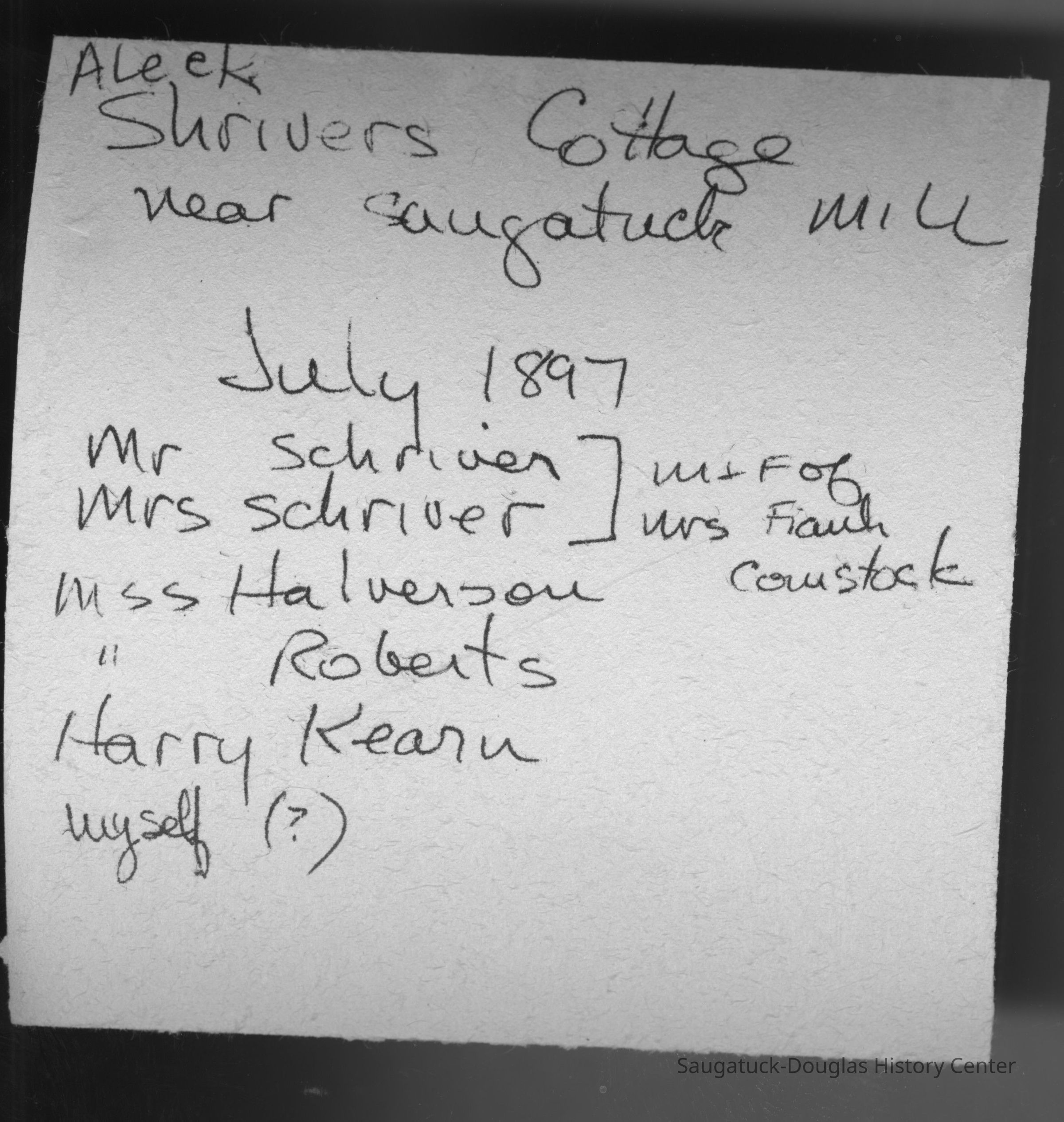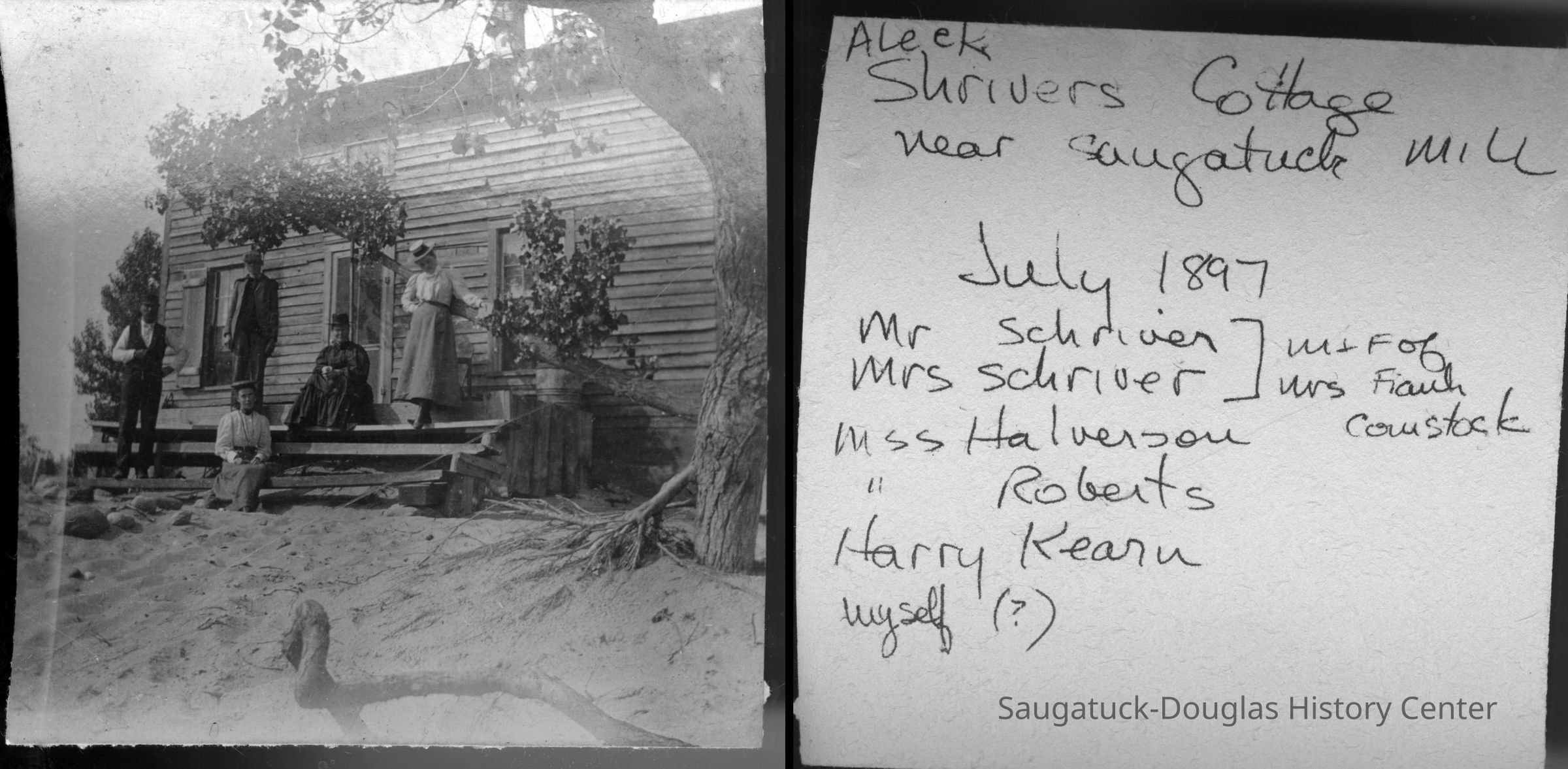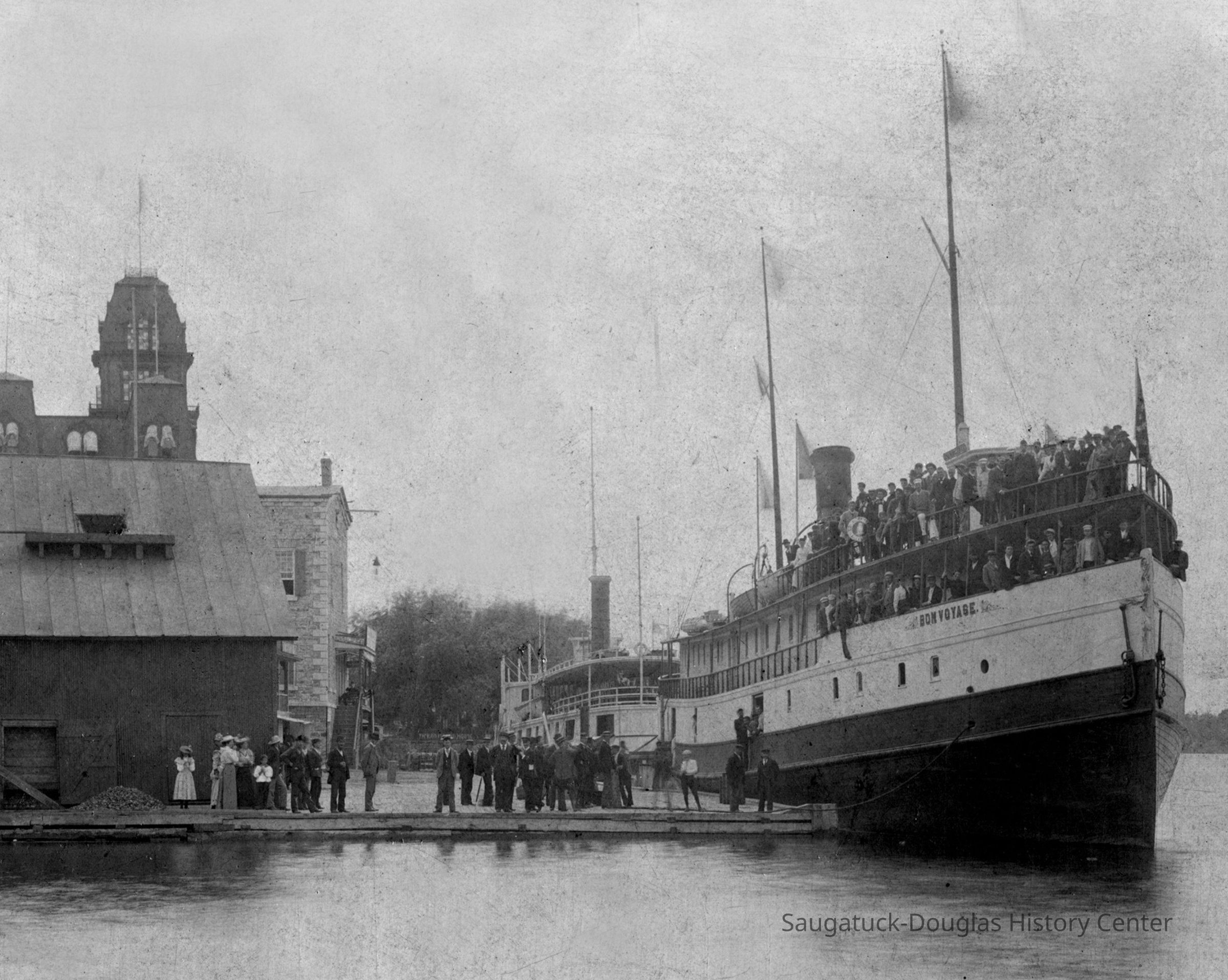 Watrous, Mary 1803-1893, Big Pavilion 1909-1960, Mt. Baldhead Hotel 1933-1959/Tourists' Home 1901, Old Chain Ferry Scows c1836-1947, North American (ship), South American (ship), 40 Butler/Hotel Butler/Grist Mill/Haymarket/Dutch windmill, Mt. Baldhead Observation Tower/Deck, Bon Voyage (ship) 1891, A.B. Taylor (ship) 1884 / Ottawa 1902-1910, Wise Residence/515 Park/Ferry Store/Heath Shop 1917-1980s?, Shriver, Mary Josephine (Greenhalgh) 1847-1926, Shriver, George Henry 1844-1924, Bird, Harriet “Hattie” Louise (Moffat) (Wright) 1855-1944, Comstock, Myrtle (Shriver) 1879-1964, Cummings, Edith (Baker) 1880-1911, Old Harbor/Channel piers pre-1906/Ox-Bow Lagoon, Fishtown, Water St. Fishing Docks, Chain Ferry Landings, Mount Baldhead Dune/Park, Saugatuck Harbor Piers/Channel 1906-present, Allegan (boat), Pokagon Resort/Inn 1899-1901, Shriver, Alexander Joseph "Alex" 1846-1912Subject Place