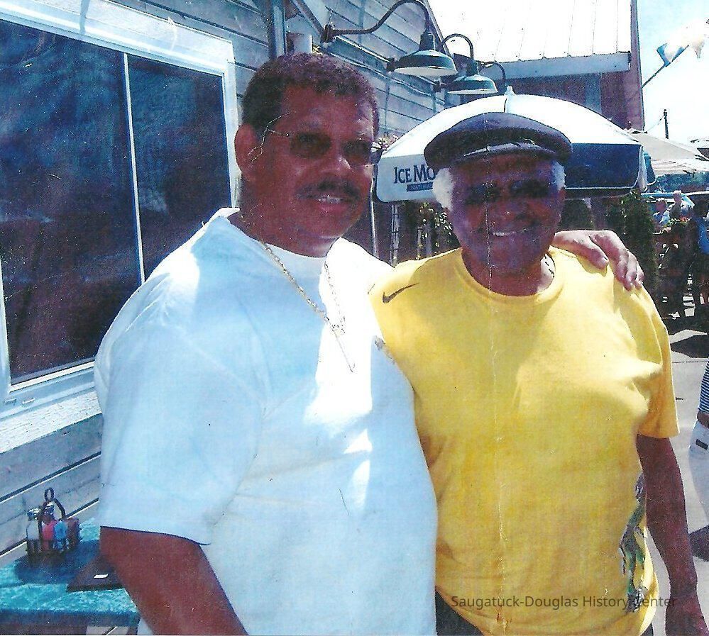 A photograph of Nobel Peace Prize winner, Desmond TUTU with Dr. Faite Mack, a Grand Valley Univ. Professor, taken at the Mermaid Restaurant in Saugatuck on July 25, 2008Cataloged By