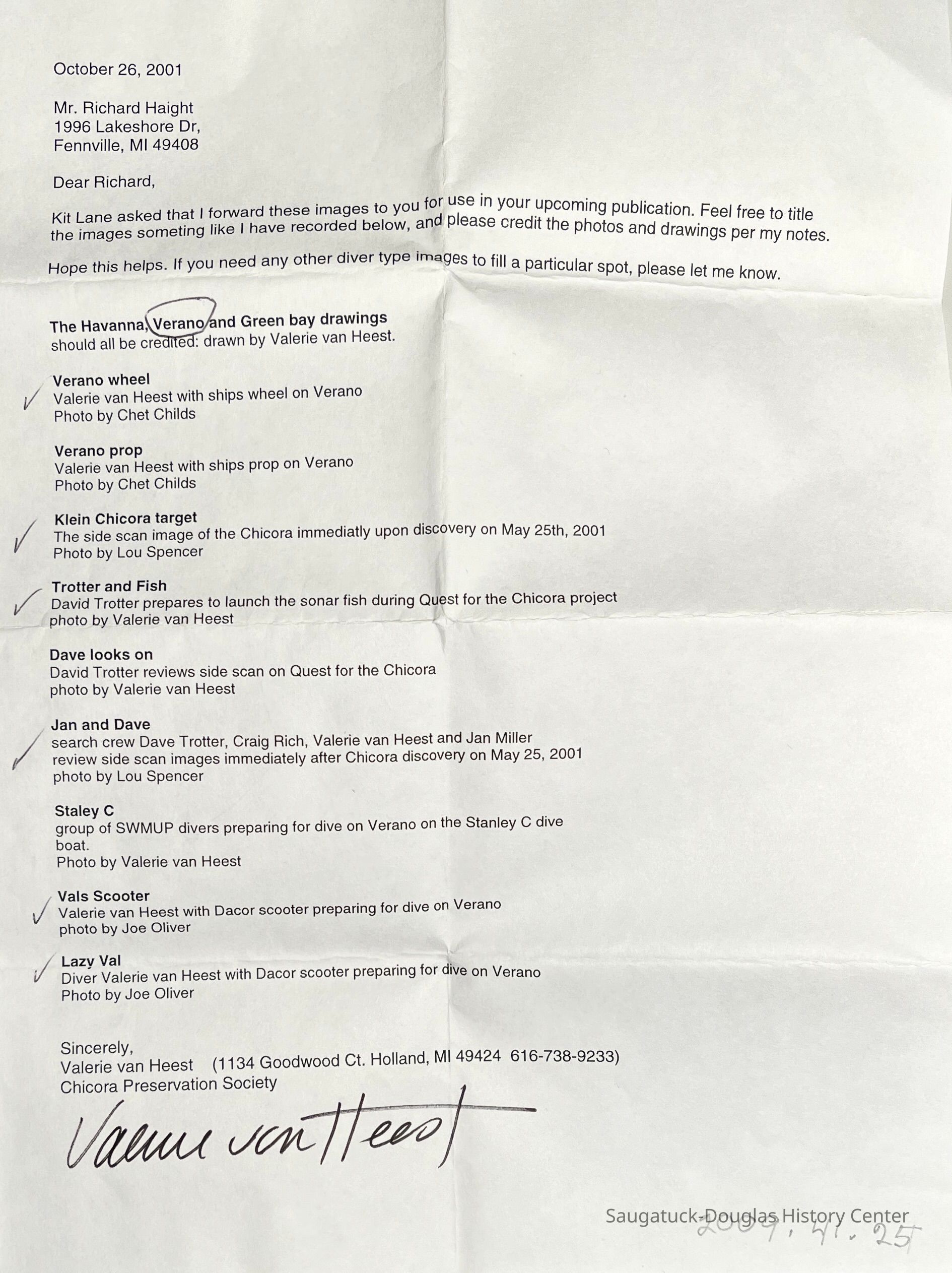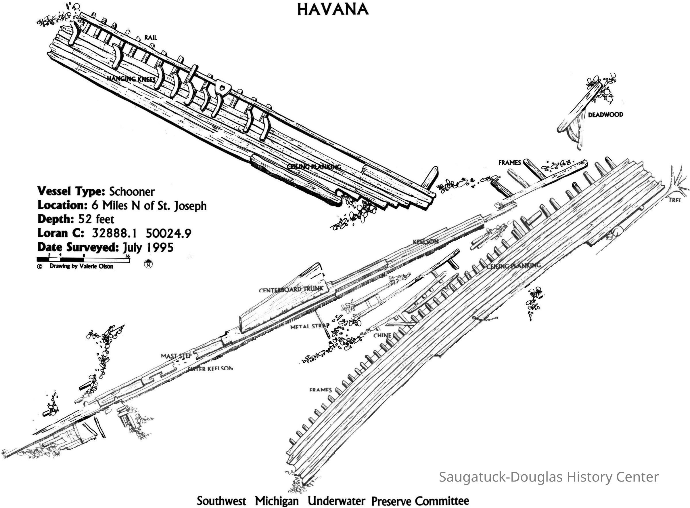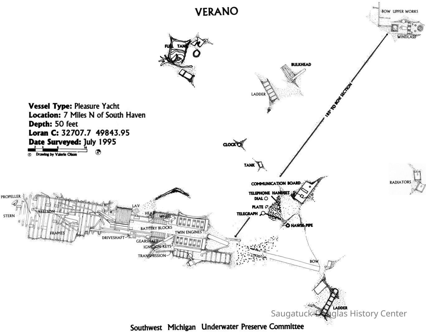 Photos and drawings of the dive team looking for the sunken ship, Chicora and other vessels. Drawings of Verano, City of Greenbay and Havanna wrecks. All photos from the CD have been copied to this entry.Photograph Details