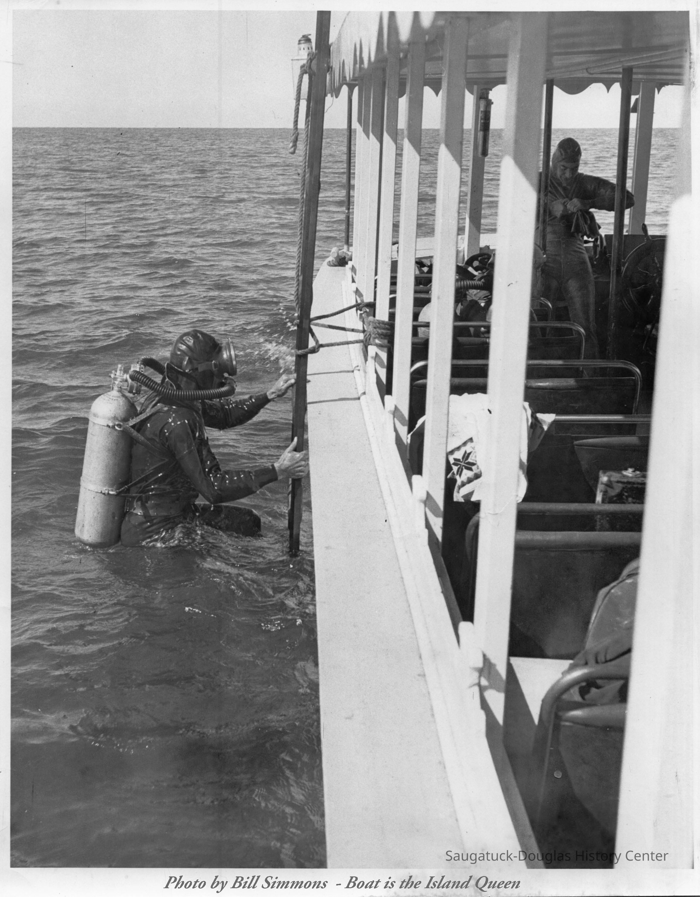 Photograph of a diver along side the boat, "Island Queen" owned by Dick HoffmanPhotograph Details