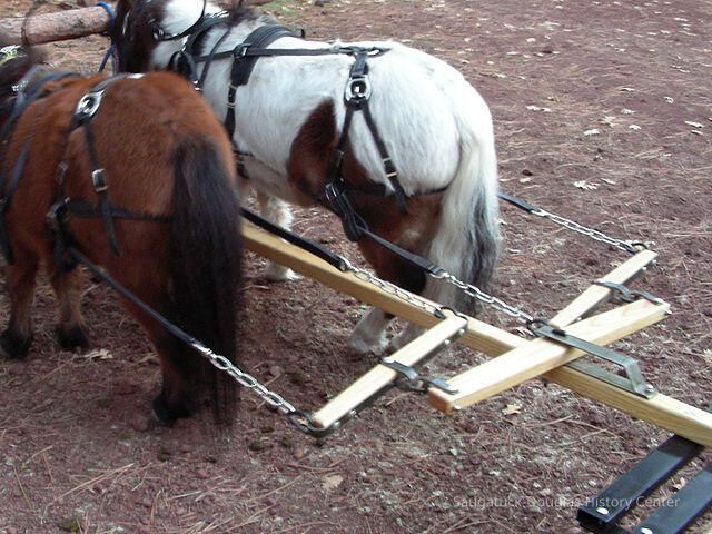 Wood and metal doubletree and tongue for harnessing horse-power.Context