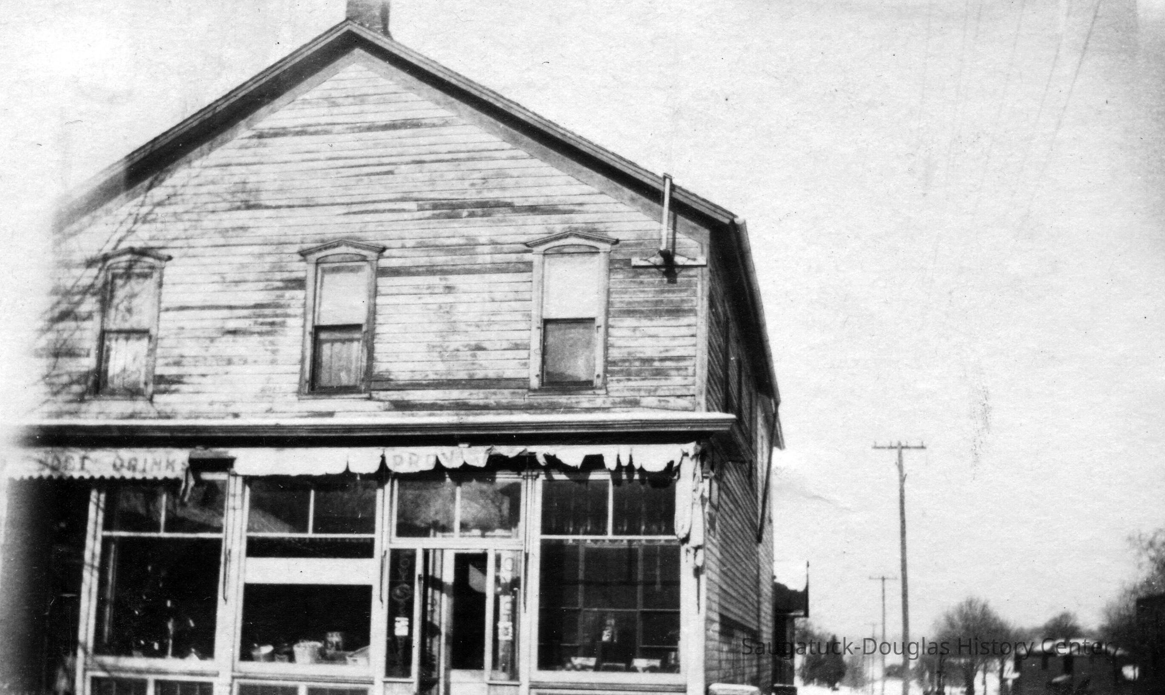 As Douglas becomes well-known for its restaurants, it is interesting that the corner of Center and Main Streets in downtown Douglas has been a sort of “restaurant corner” off and on since the 1930s. Many people today remember it as being the home of the Auction House restaurant (the Auction House sign is now in the Saugatuck-Douglas museum collection of local business signs).