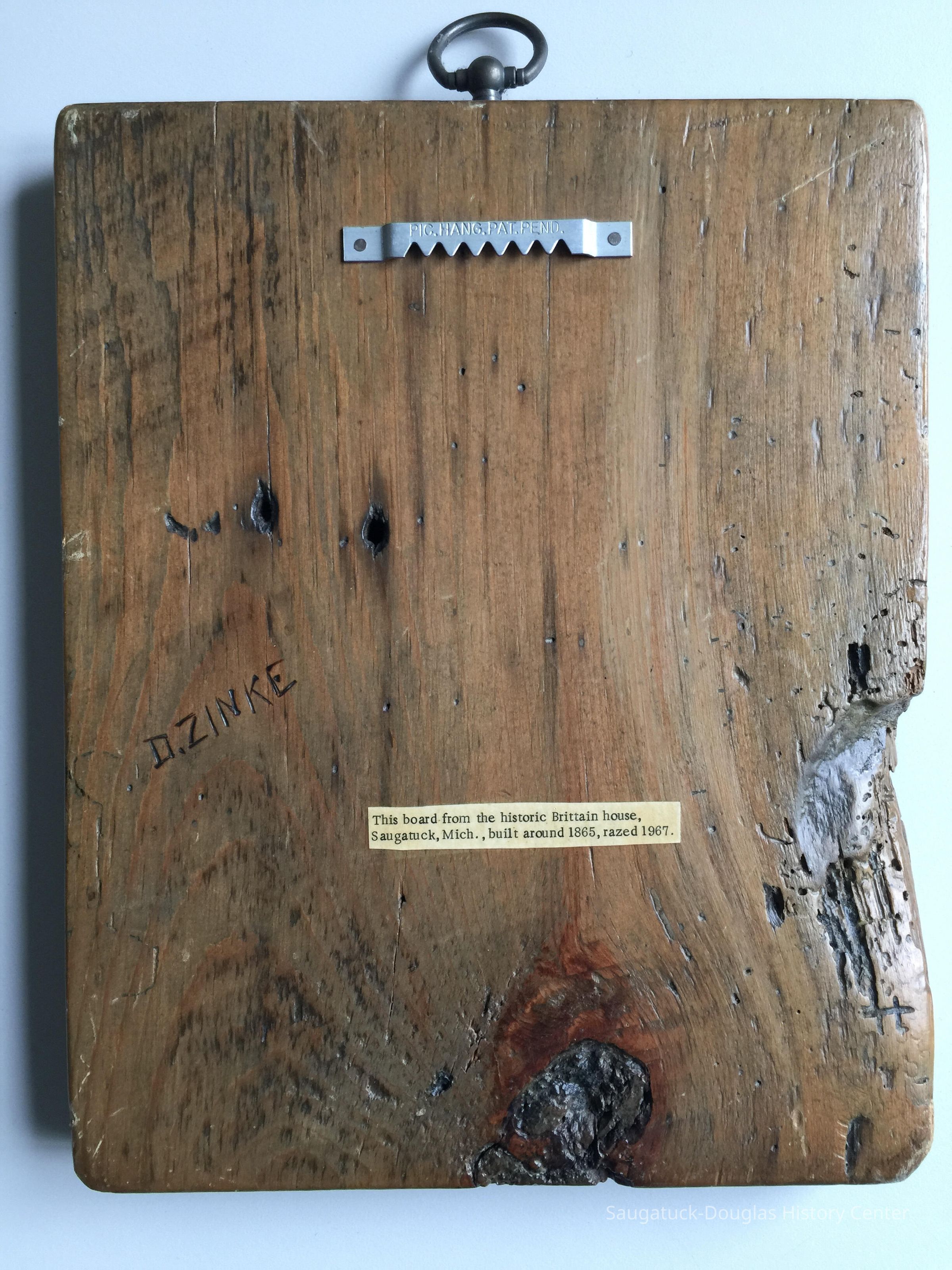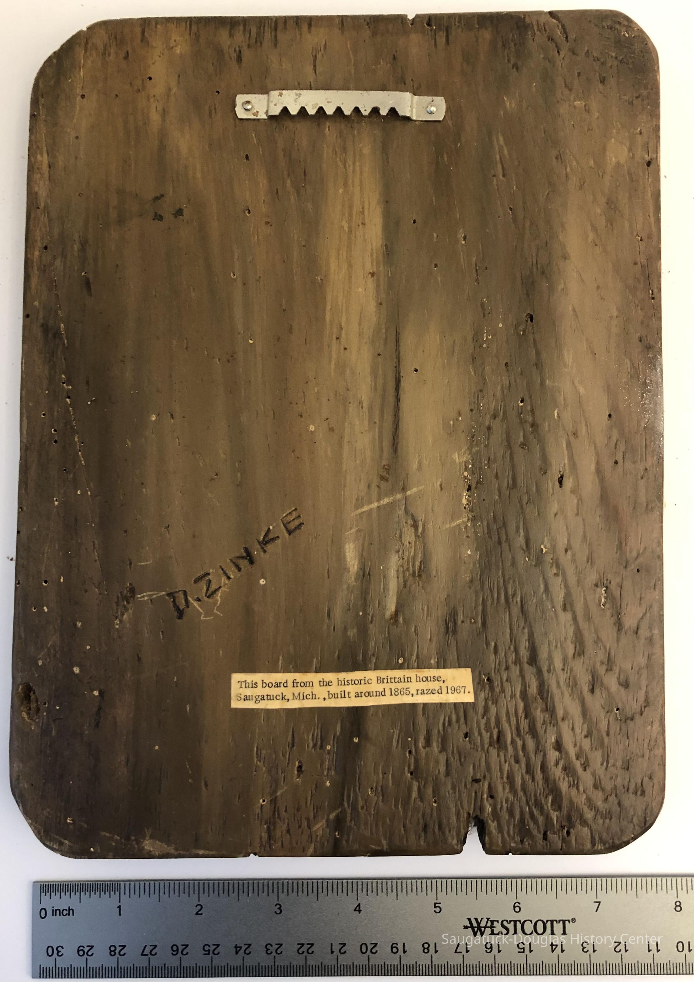 "D. Zinke" is scratched in the back of the board.