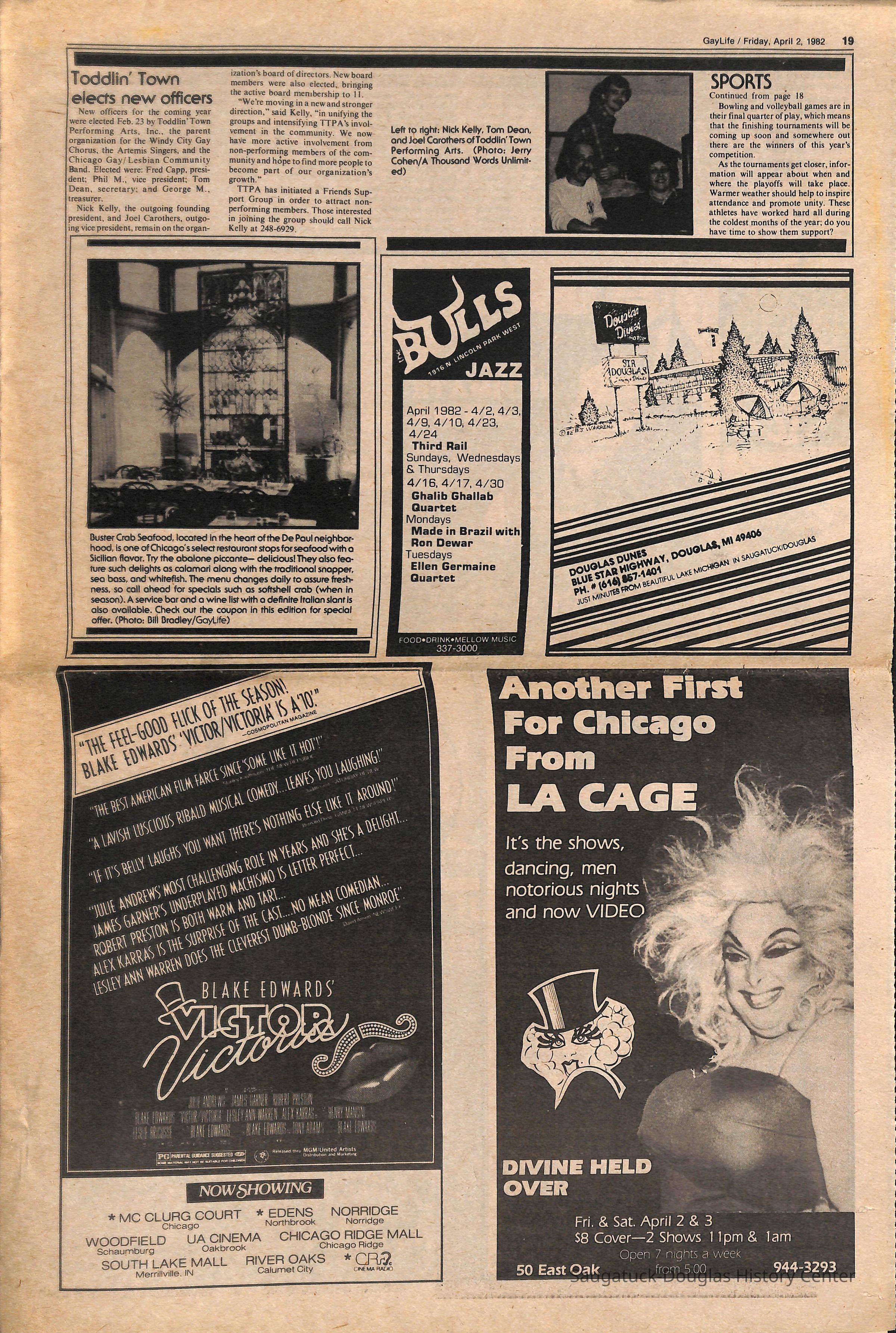 An advertisement for the Weather Girls at Douglas Dunes in Gay Life newspaper.Date(s) of Creation