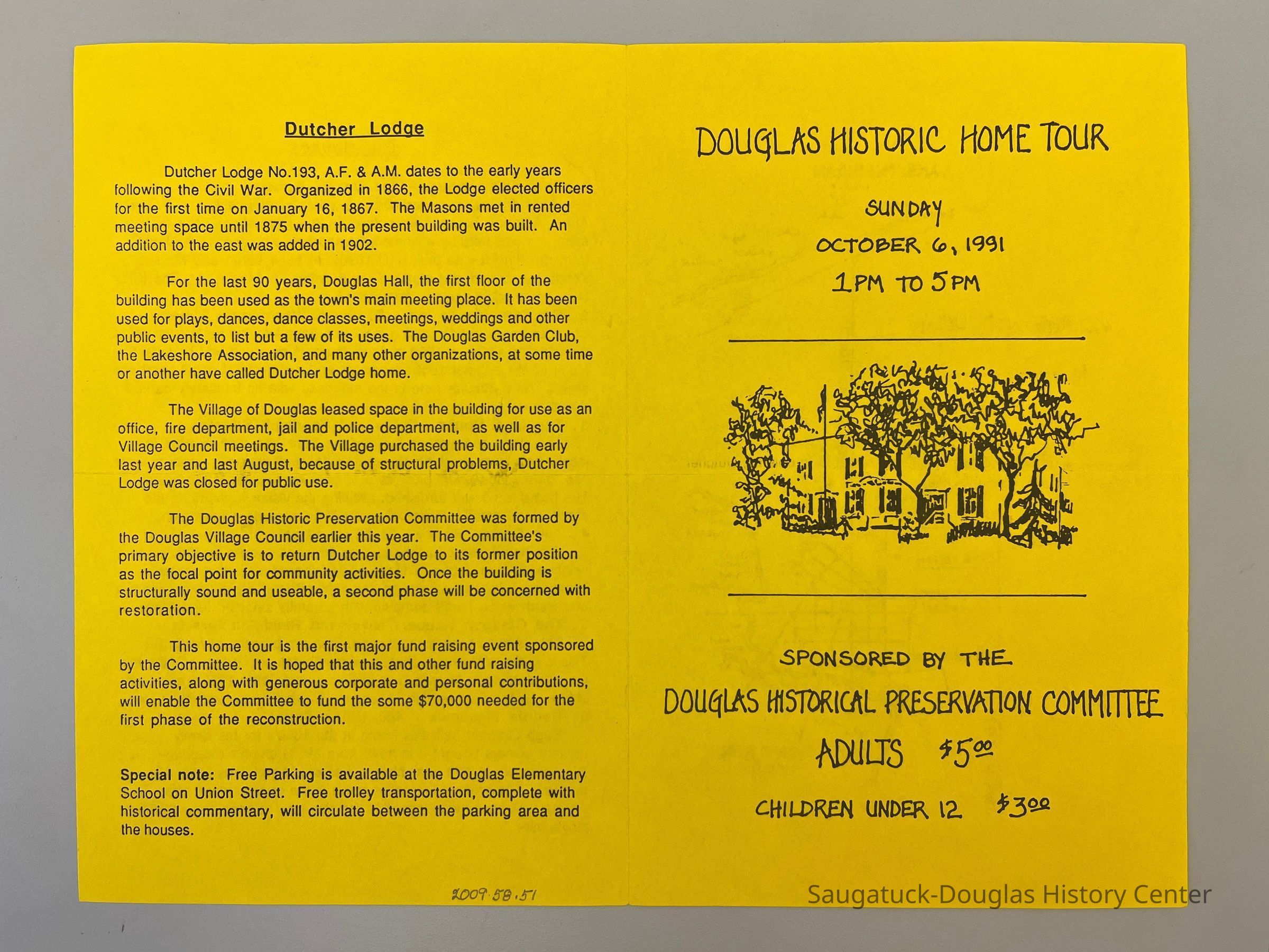 Ticket and program for the Douglas Home Tour, Sunday, October 6, 1991Collection