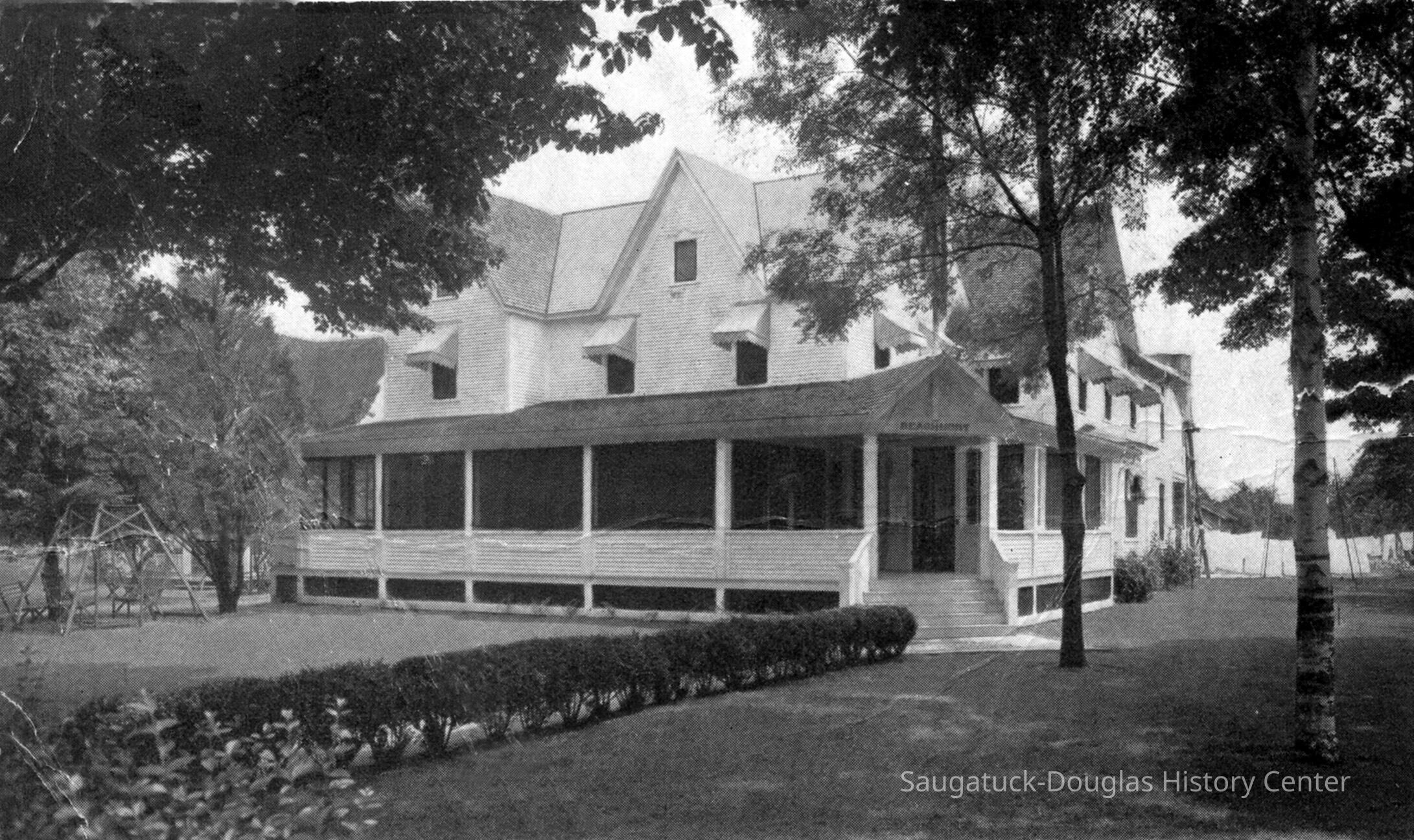 Sayre started to build and completed his place straight away. The others made plans and built in 1900 on what became known as The Knolls. In fact in that year a building boomlet commenced when some six cottages were completed. In the next ten years land prices went up, Shorewood was created and the pioneer settlers with fattened wallets went into the summer resort business and built Beachmont (McVea), Five Acre Farm (Trumbull), and Rosemont (Bryan) .