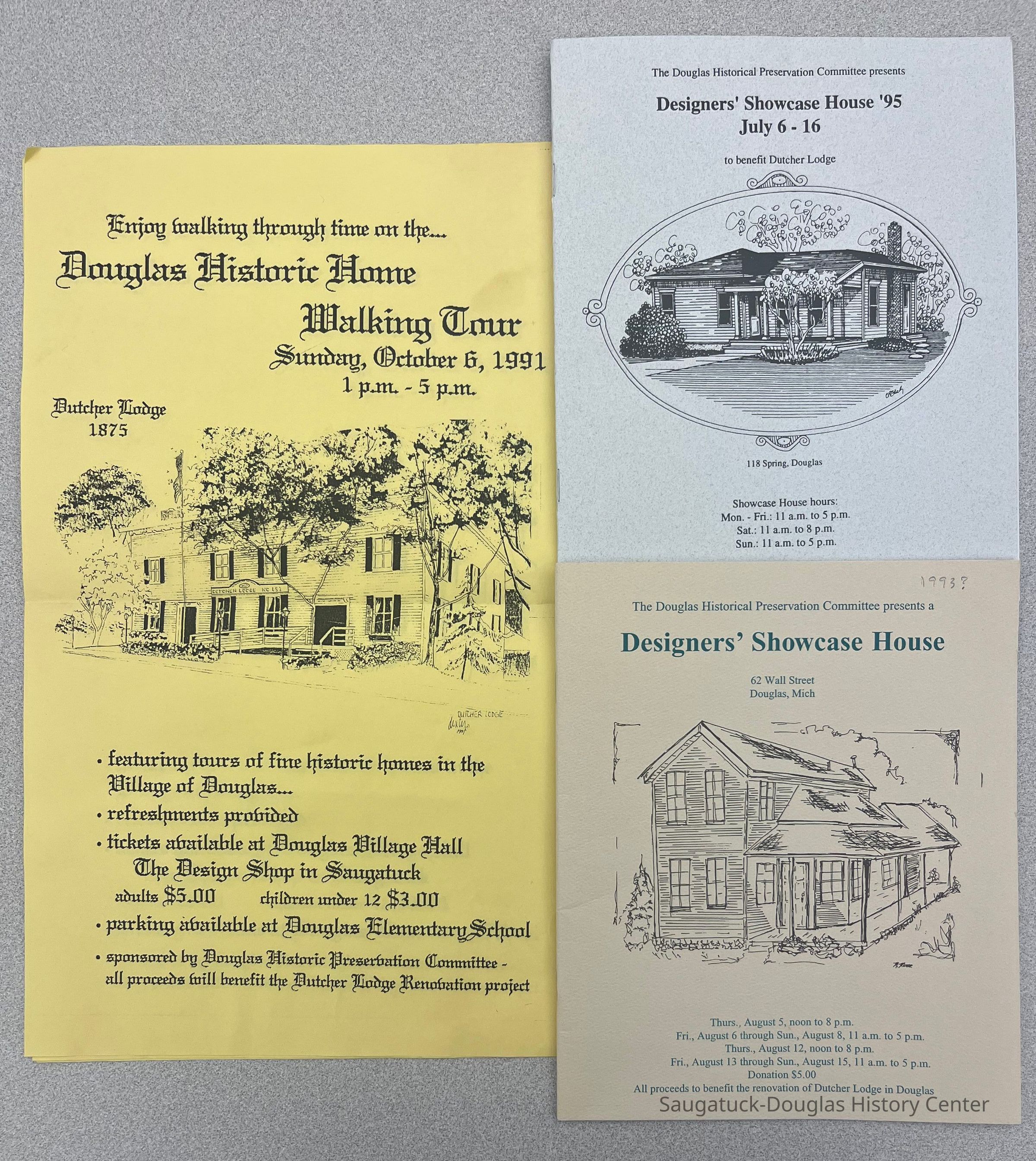 - Programs for the 1993 (?) and 1994 “Designers’ Showcase House” to benefit the renovation of Dutcher Lodge.