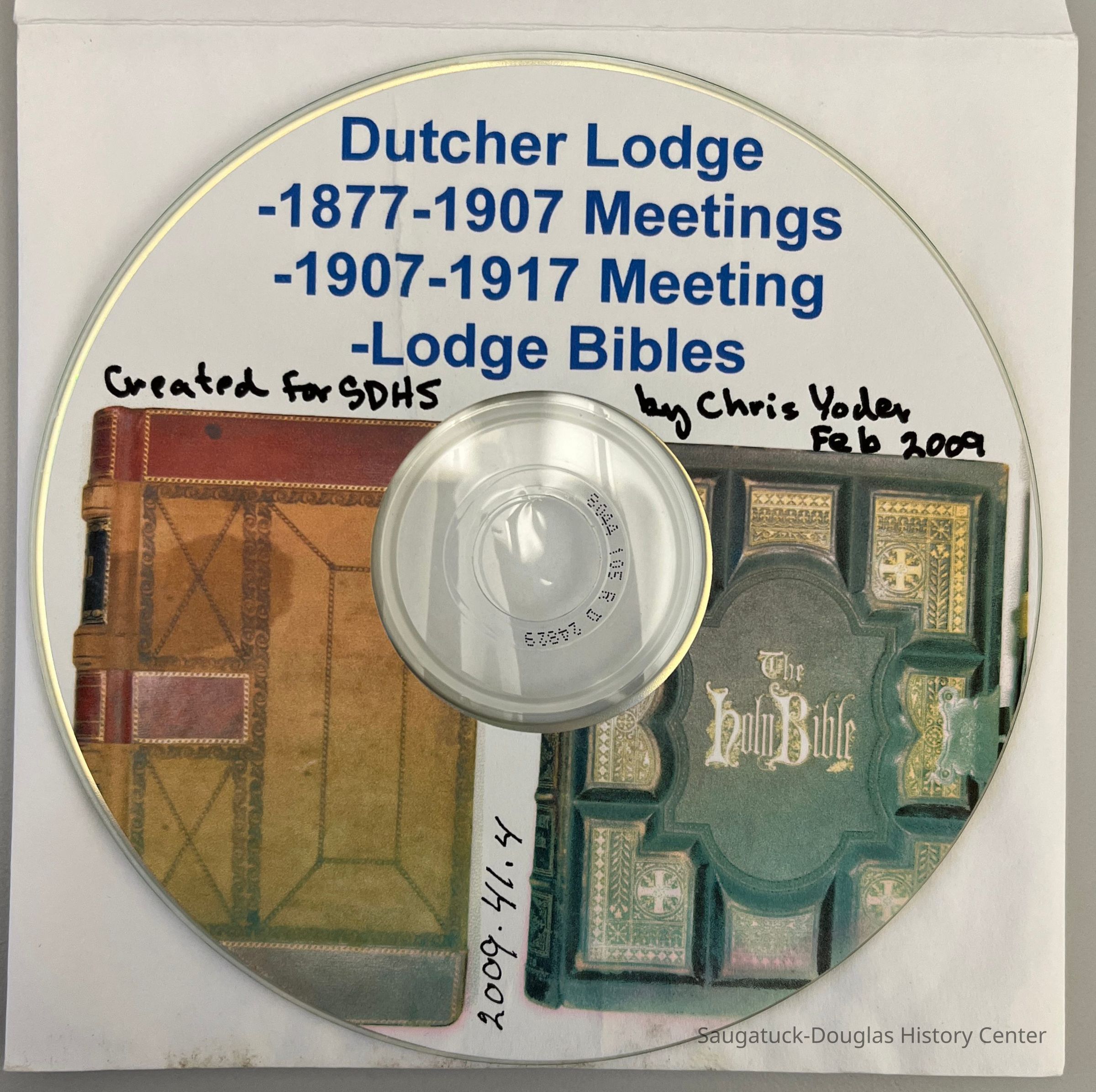 CD of scanned copies of the Dutcher Lodge Meeting minutes 1877-1917 and Lodge BiblesCollection