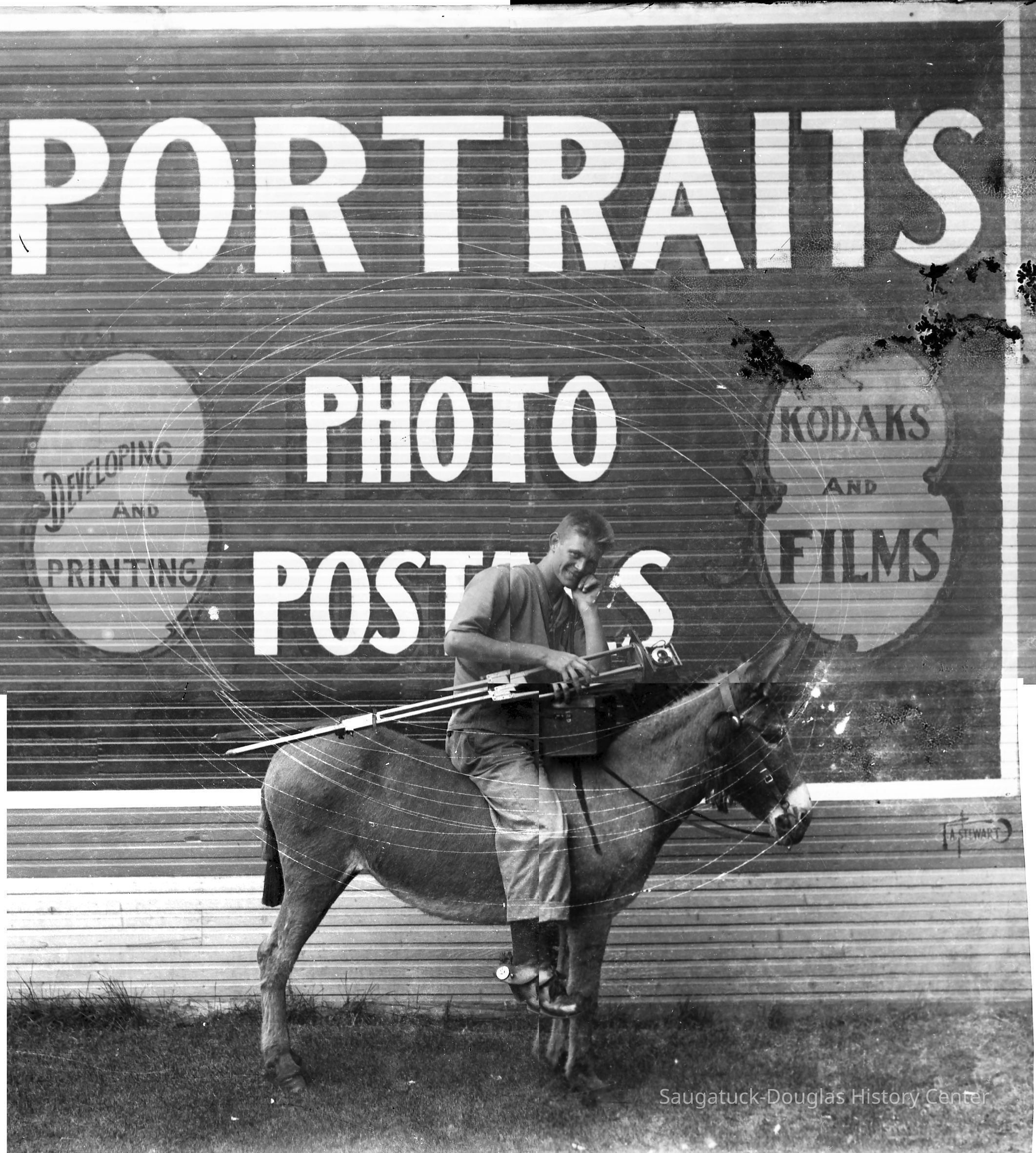 Dynamite was a series of stoic donkeys that were used by the Simonson studio as photo props. Cameramen would march around town offering to take a photo of visitors sitting on or near the animal. The visitor would later drop by the Simonson studio to pick up their print.