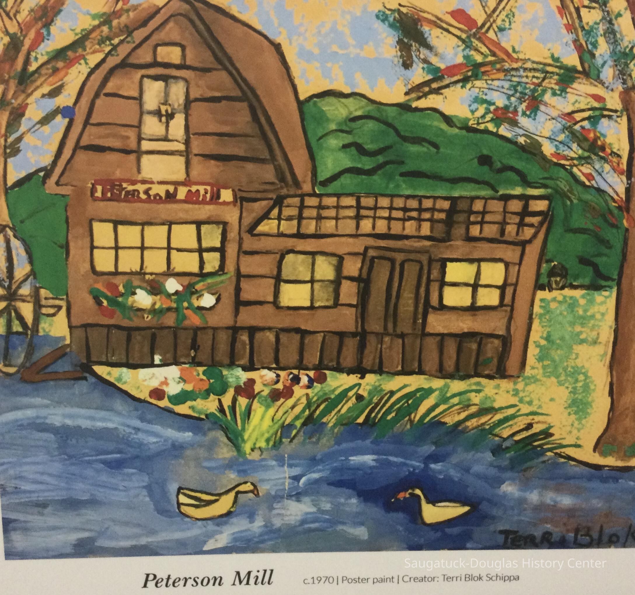 From 1931 to 1980, children were mentored in art by Cora Bliss Taylor, who had established her own Taylor Art School. According to former students, classes would be held in Mrs. Taylor’s backyard two days a week during the Summer. Terri Schippa remembers walking into Mrs. Taylor’s garden and seeing clotheslines full of drying paintings, a shed which housed art supplies, and egg cartons full of poster paint. For the most part, the kids were able to paint whatever they liked, “as long as it was outlined in black.” Occasionally, Cora would take her students to paint on location. Some popular places, among others, were All-Saints Church, the Peterson Mill, and the Saugatuck boardwalk.