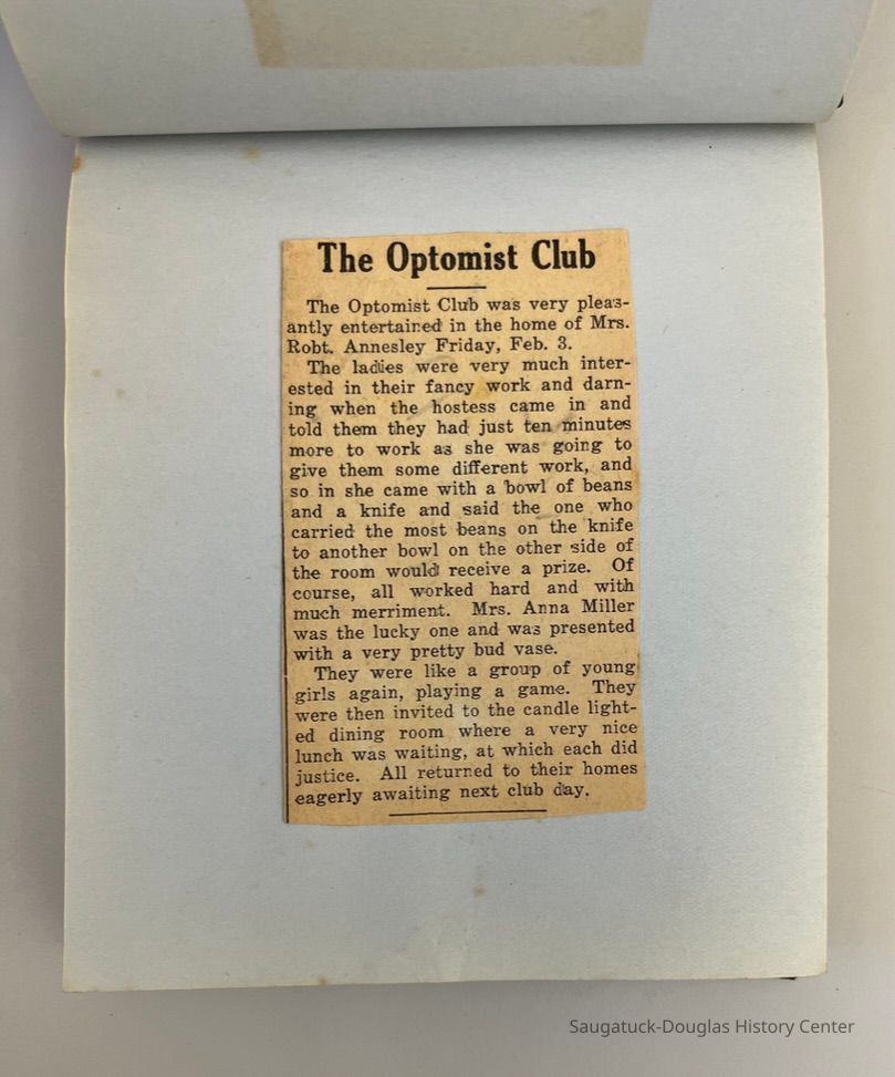 A list of birthdays suggests the club had at least 12 members that included Margaret Taylor, Madge Crow, Bessie Edgcomb, Anna Miller, Orpha? Lundberg, Mame Morce, Elma Hill, Babe Force, Maud Annesley, Lillian Morris, Jane Newnham and May Force.Collection