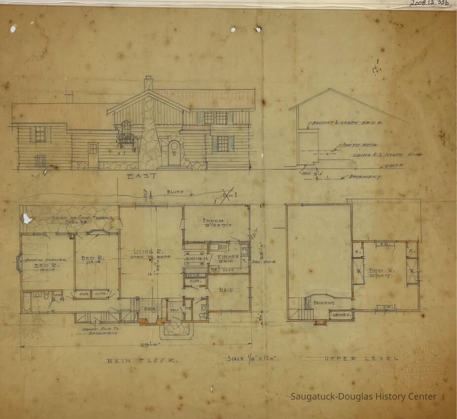 This architectural drawing consists of very similar details to Object 2008.12.33a. However, it contains some differences in the labels for the rooms and some of the measurments.Collection