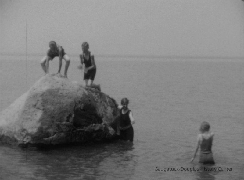 Footage includes scenes of children playing on beach sand, golfing at the family home "Beechwoods" and later at West Shore, picnicking, gardening, horseback riding, a baseball game at Beery Field, sailboats racing on Kalamazoo Lake, views from power boat trips on the river, teens horsing around, an Island Queen cruise, swinging on a rope, and an Easter egg hunt on Lakeshore Drive. Children grow into teens, pair up, and introduce their children to the beach as parents age.