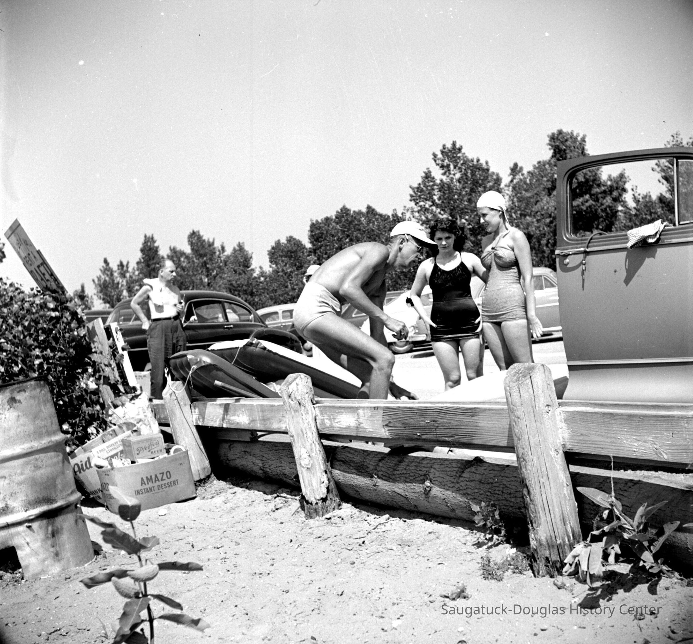 156 0/3 Saugatuck - Beach 8/1949 Ed Bombley and truck at beach