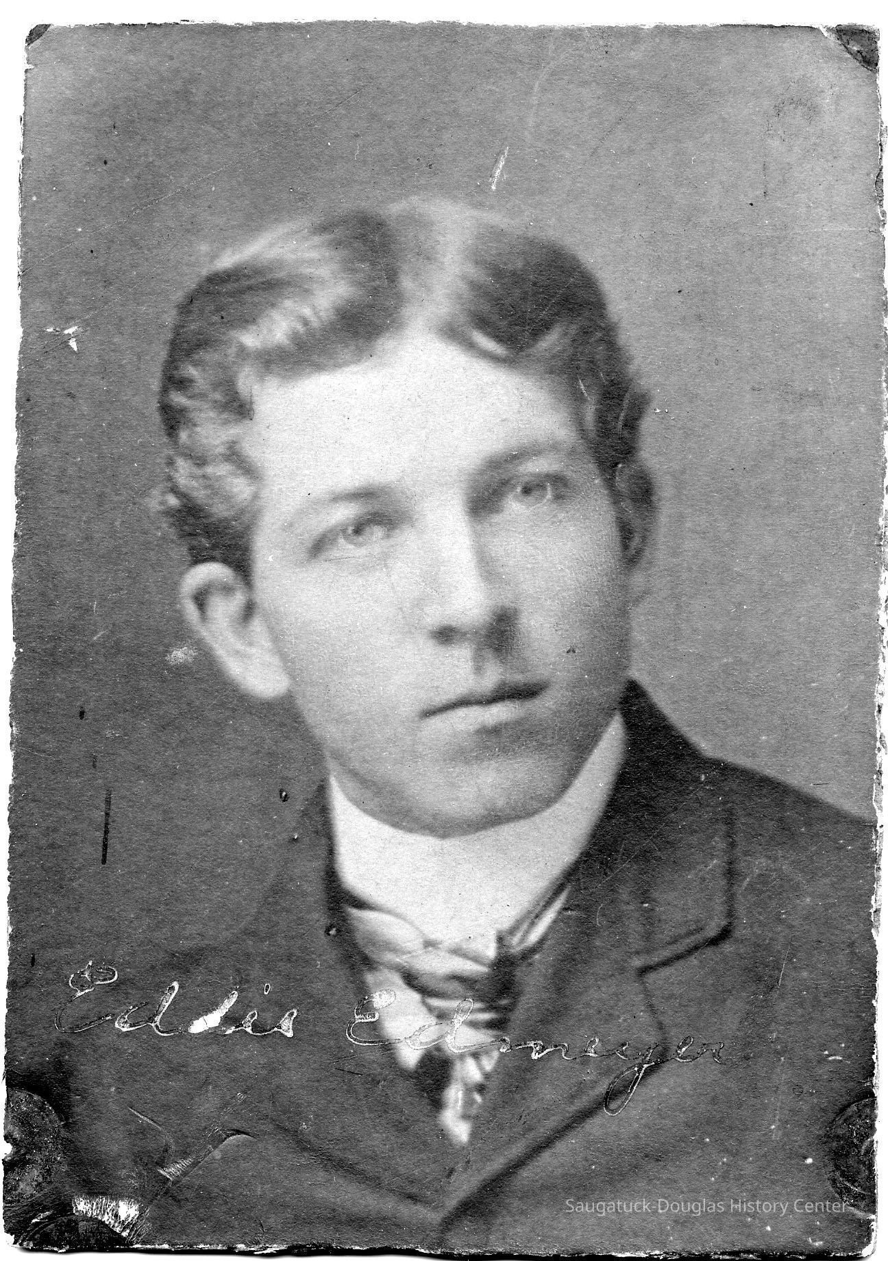 Studio portrait of a young man. Handwriting on the front of the print reads "Eddie Edmeyer."