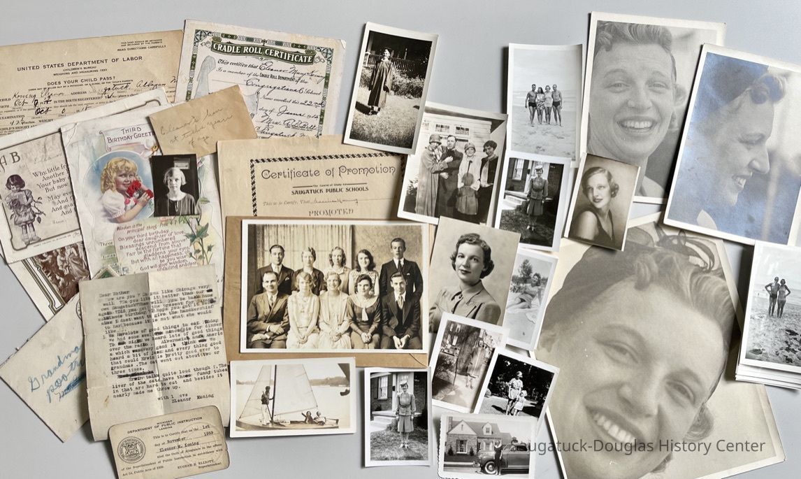 Childhood to grown-up photos, diplomas, cards, letters and documents created by or pertaining to Eleanor Koning.