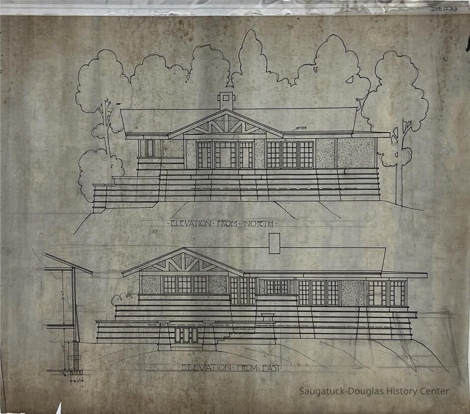 This architectural drawing features drawings of the North and East elevations for the Bungalow at Ravinia, Illinois.Collection