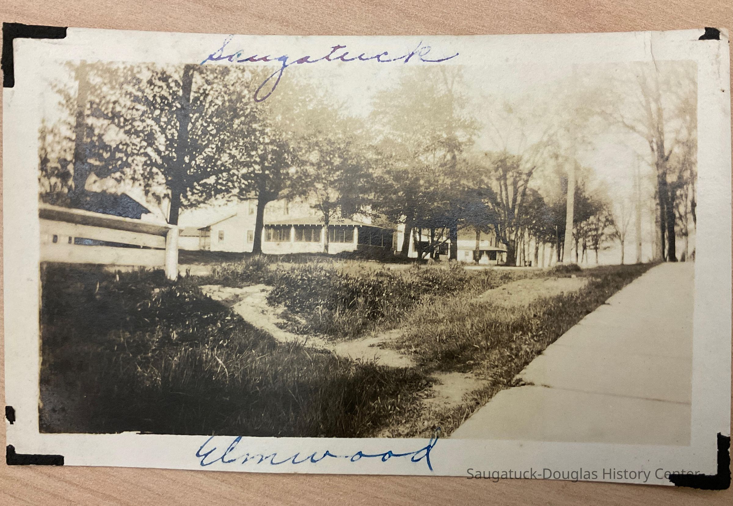 Photo of guest house building with “Saugatuck” written at the top and “Elmwood” at the bottom.Photograph Details