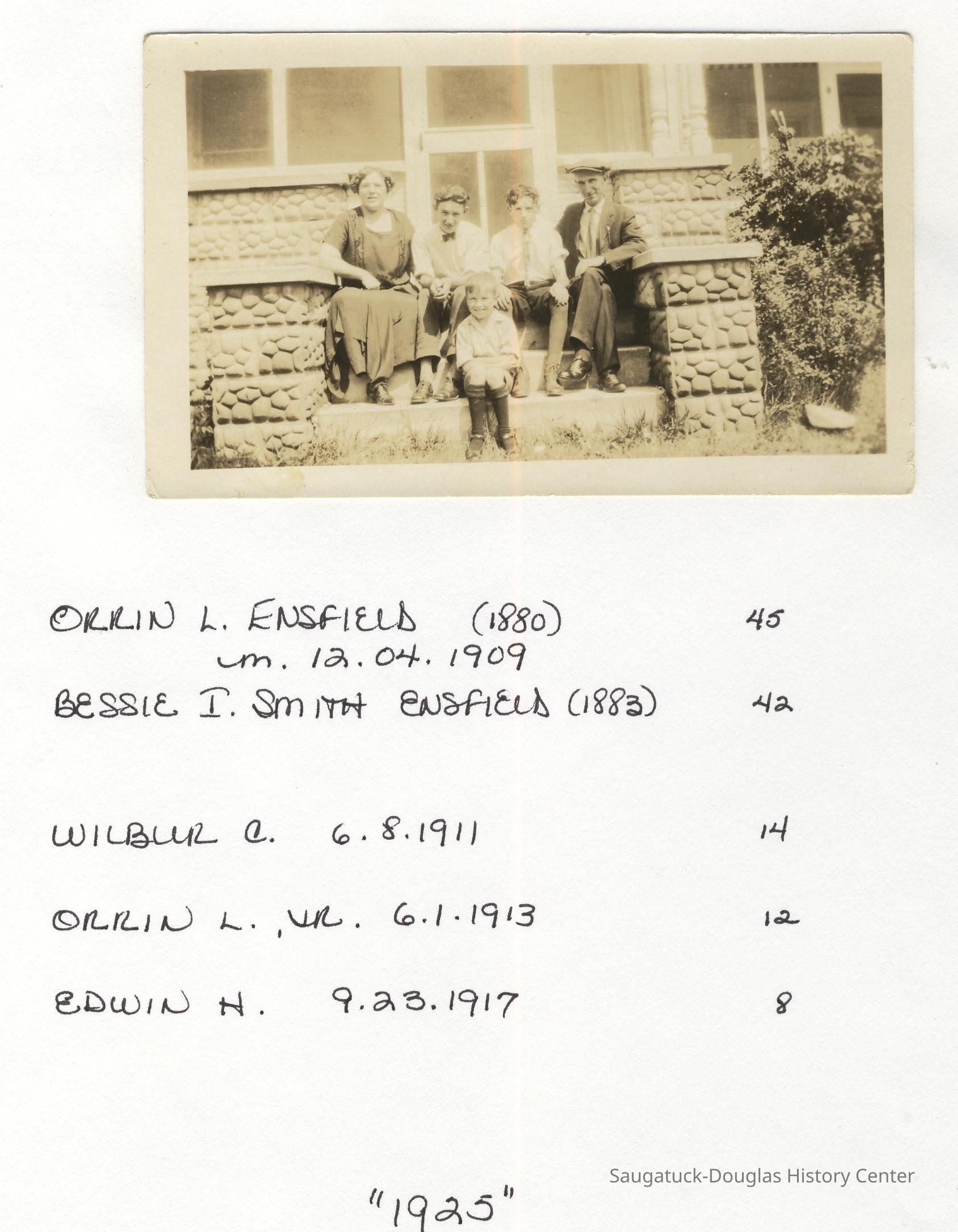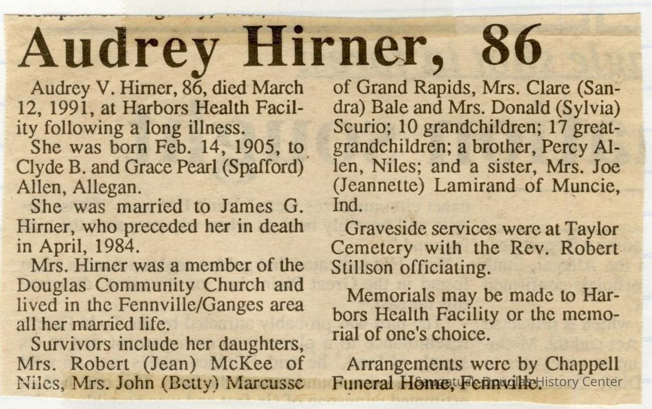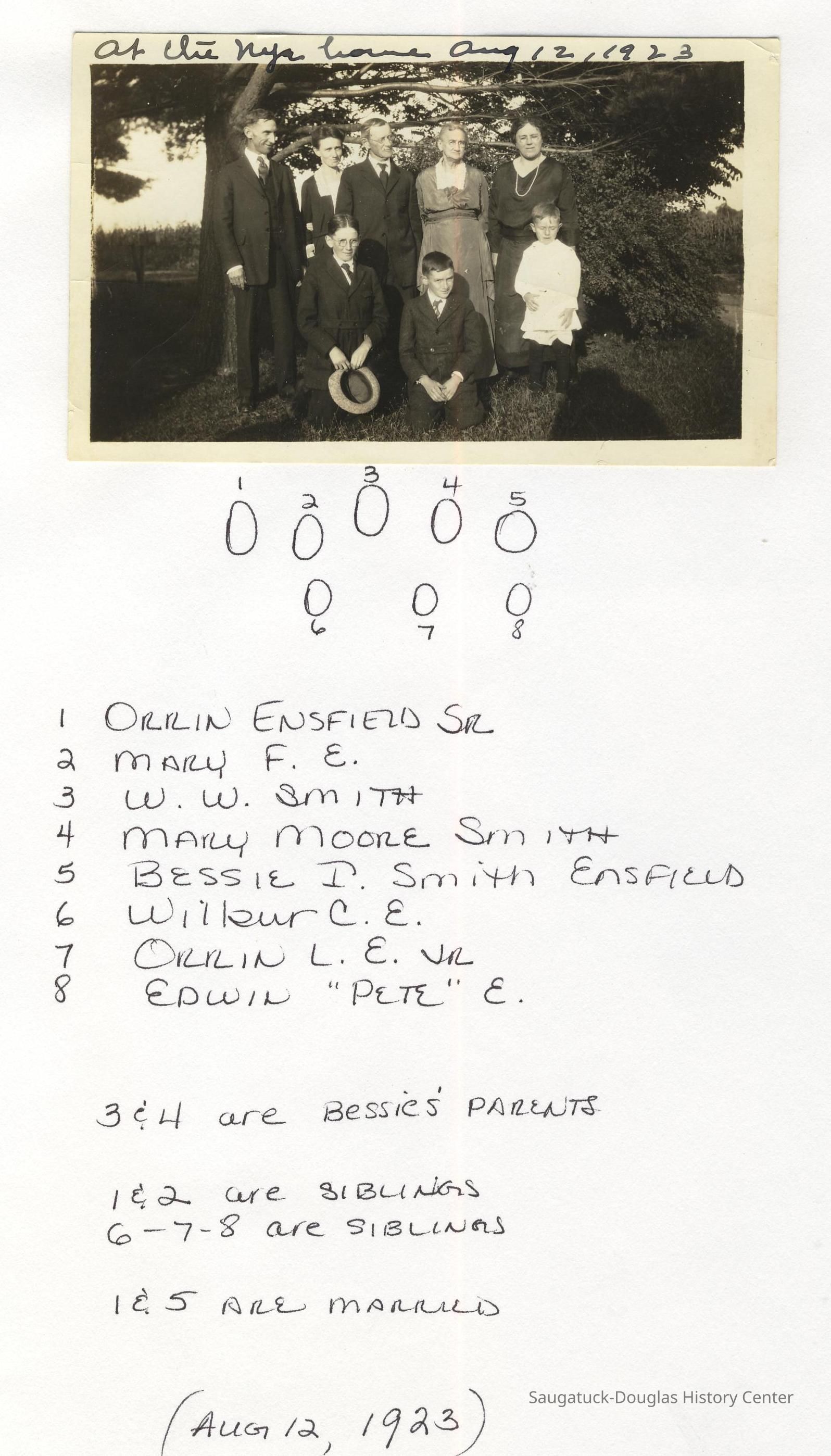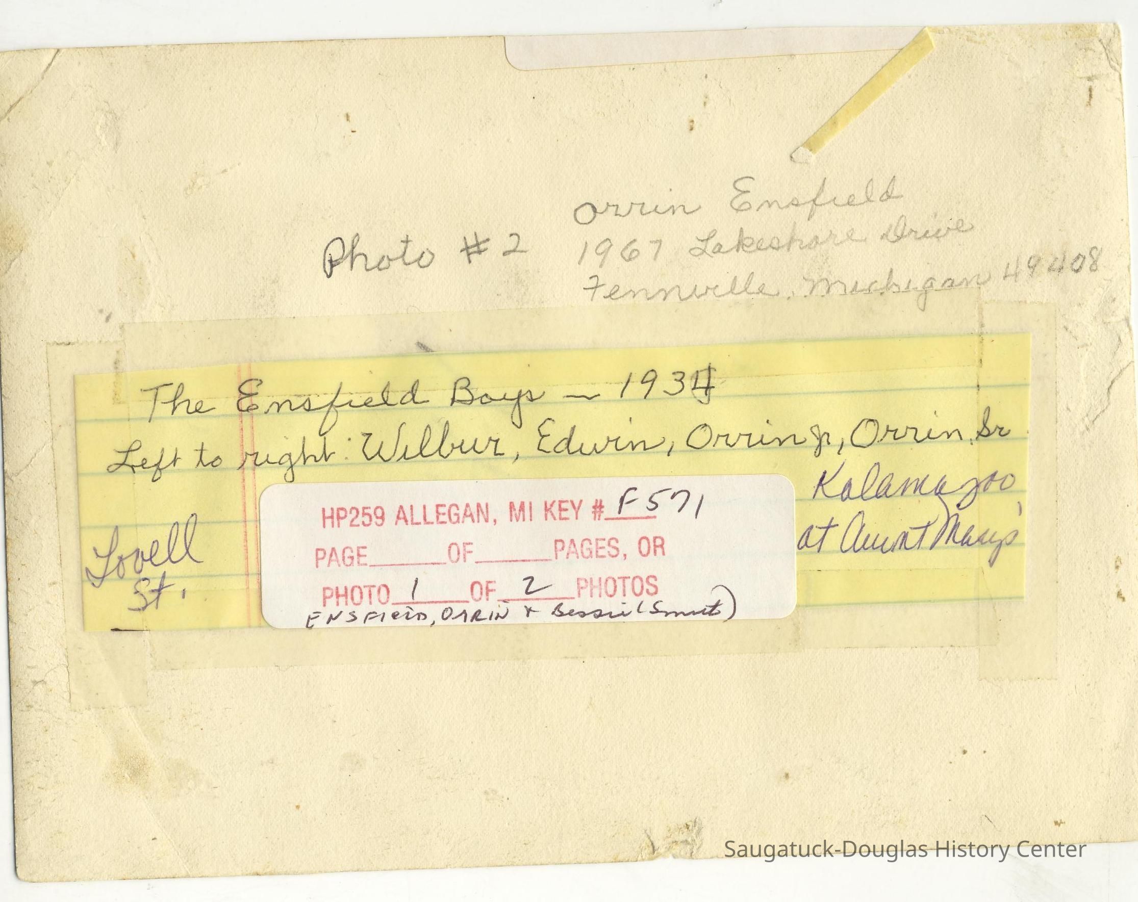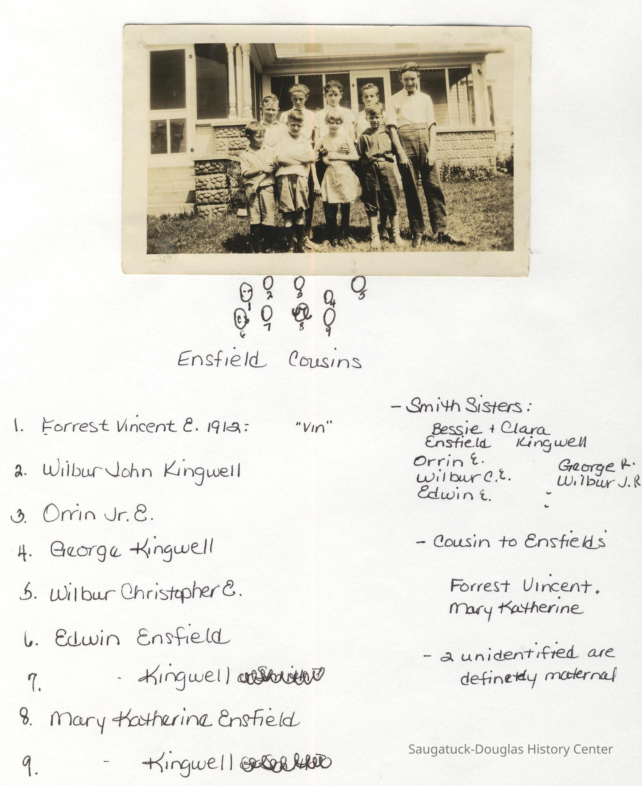 Ensfield and Grosvenor family research information including scans of photos, obituaries and funeral programs collected by Chris Yoder. Many of the subject people have Fennville and Ganges farming connections.