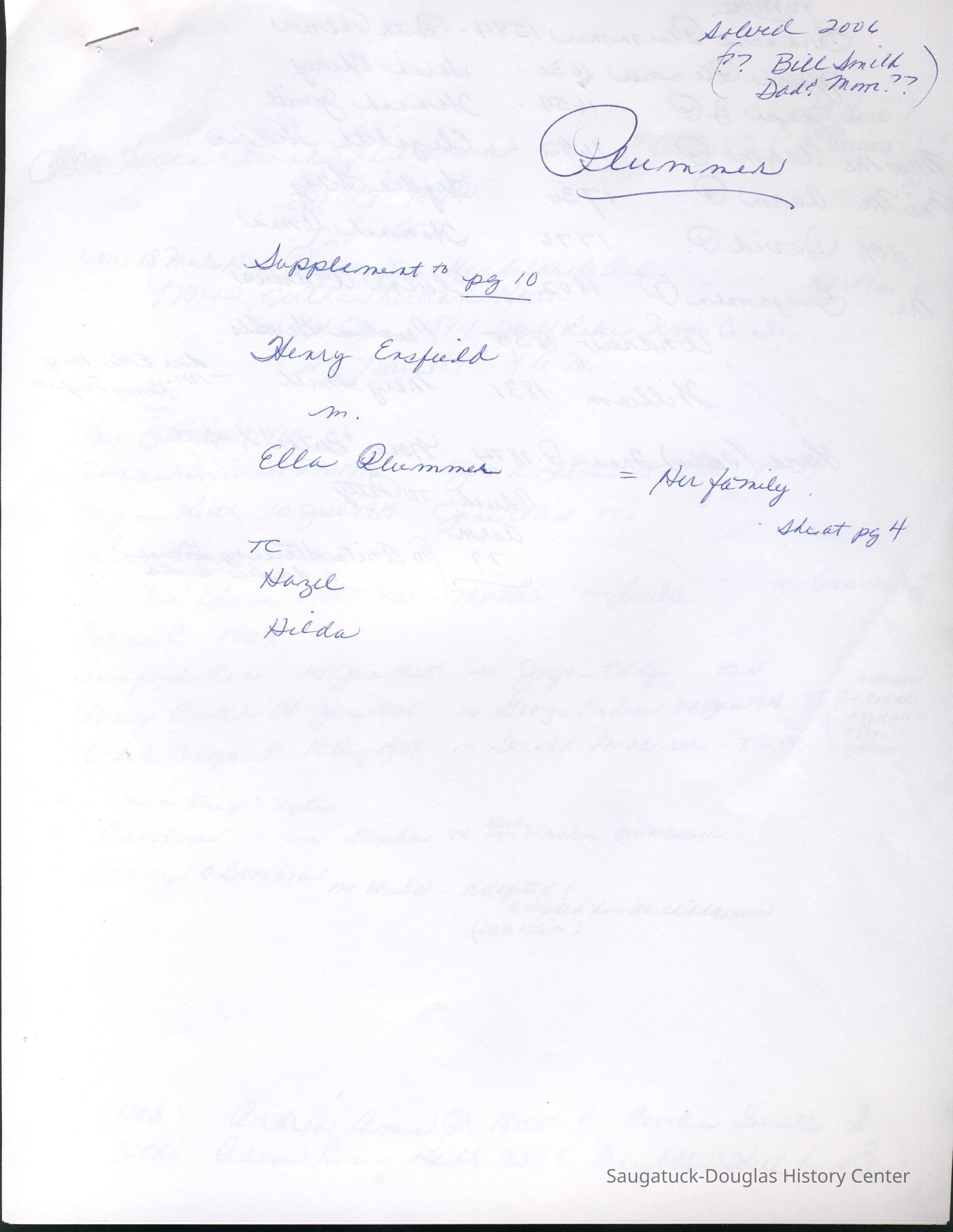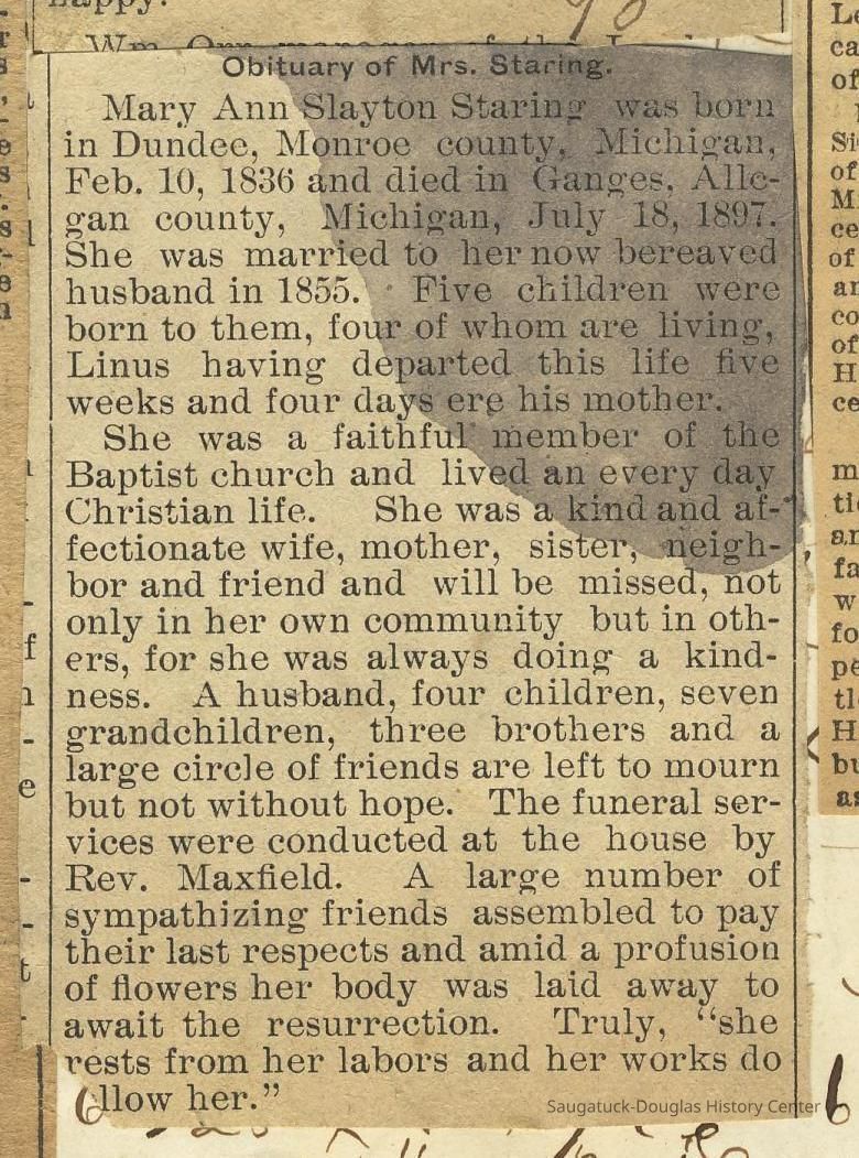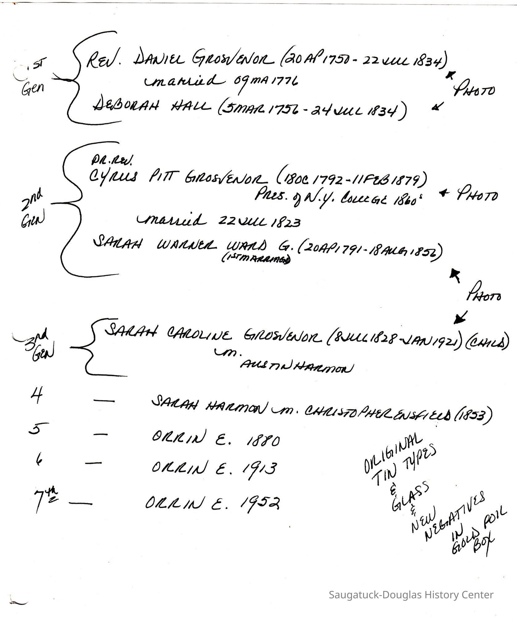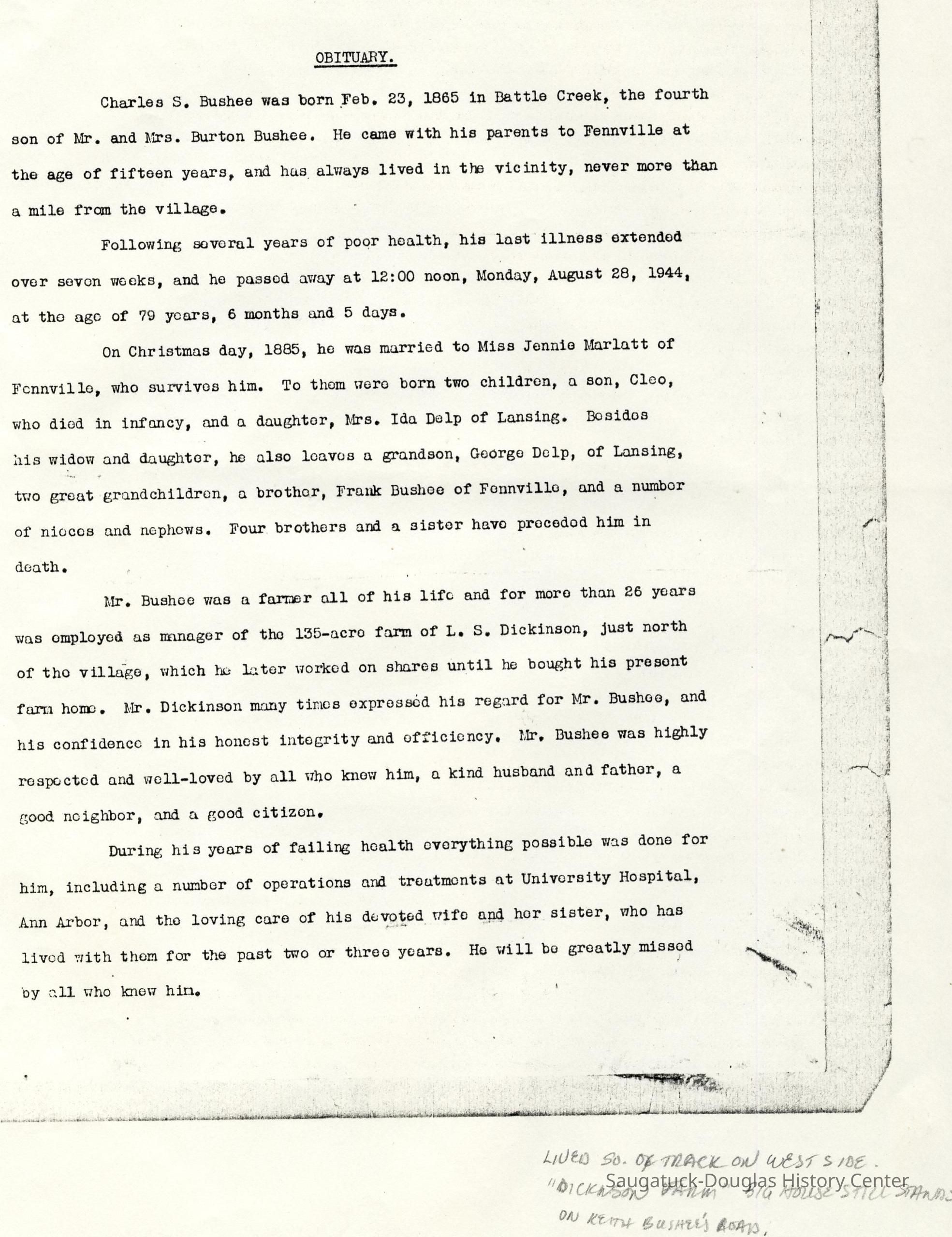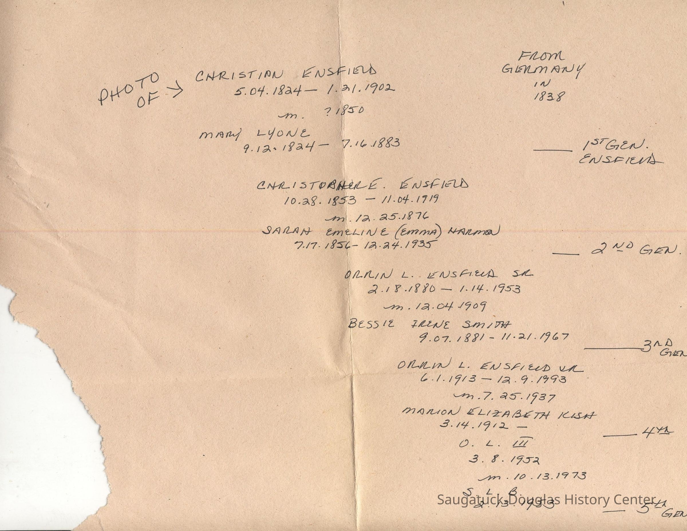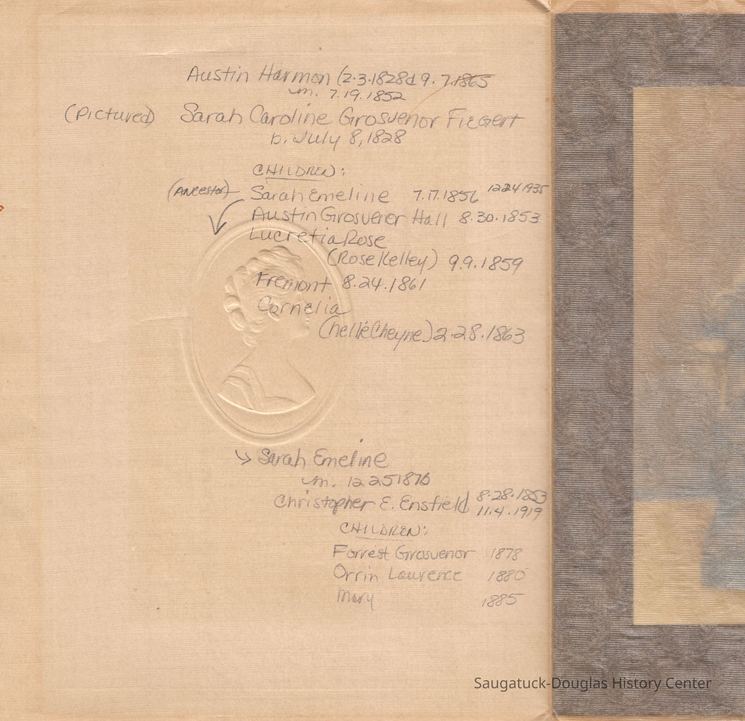 Ensfield and Grosvenor family research information including scans of photos, obituaries and funeral programs collected by Chris Yoder. Many of the subject people have Fennville and Ganges farming connections.
