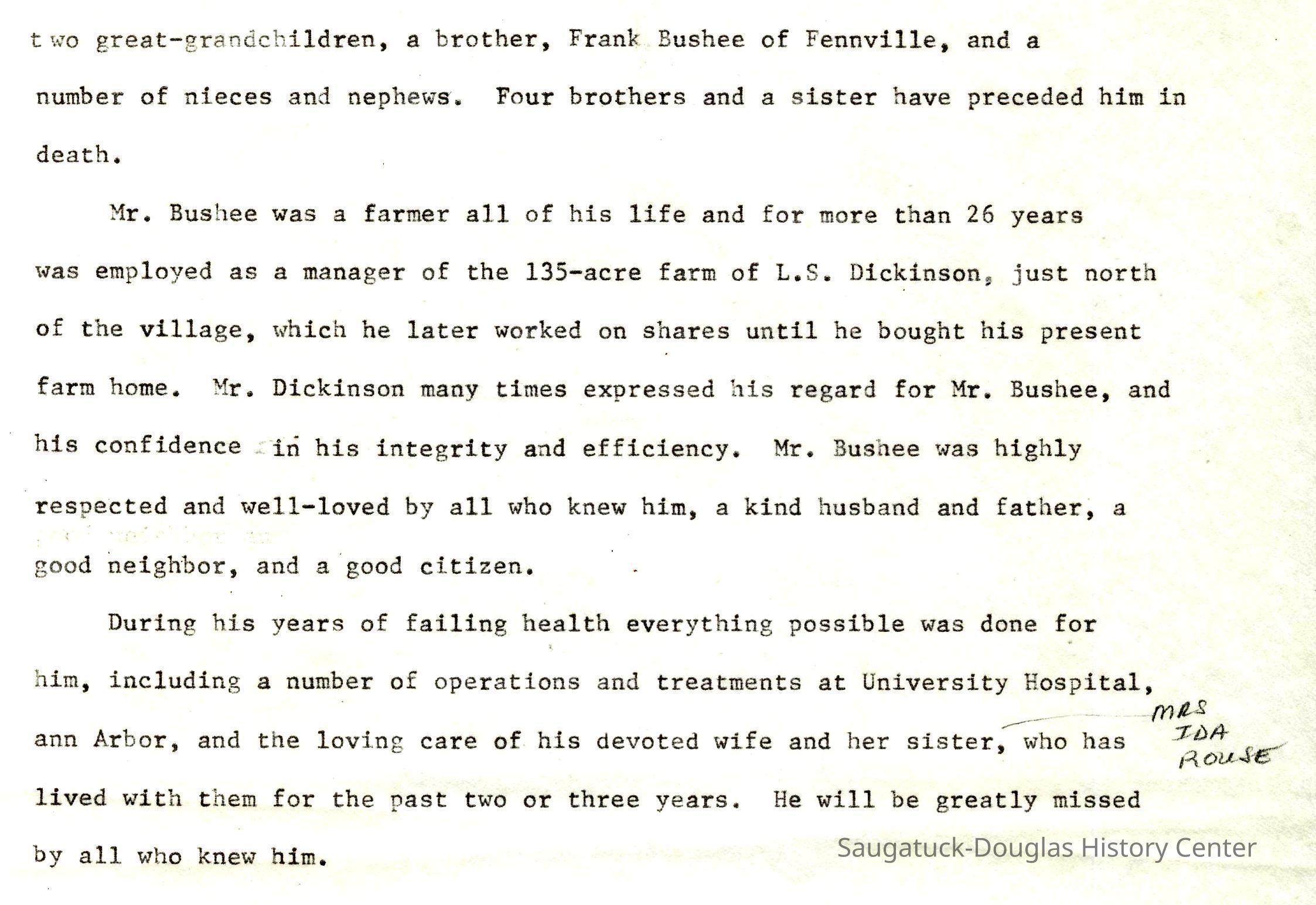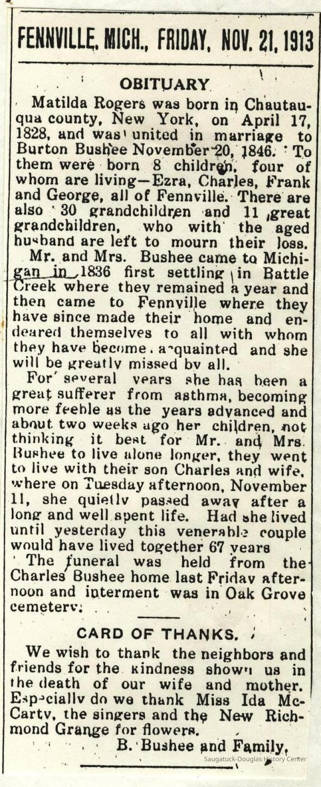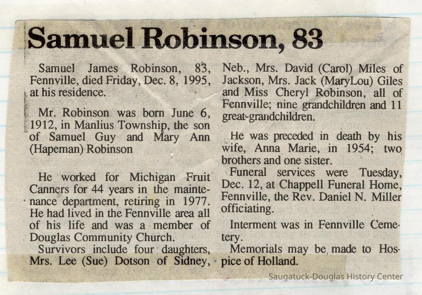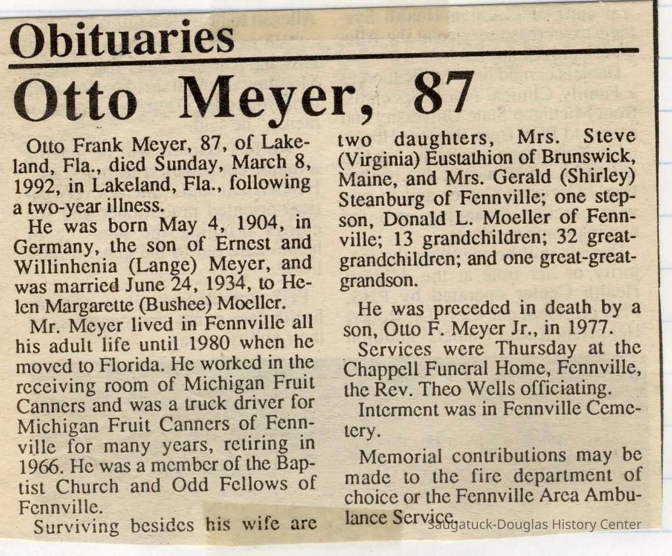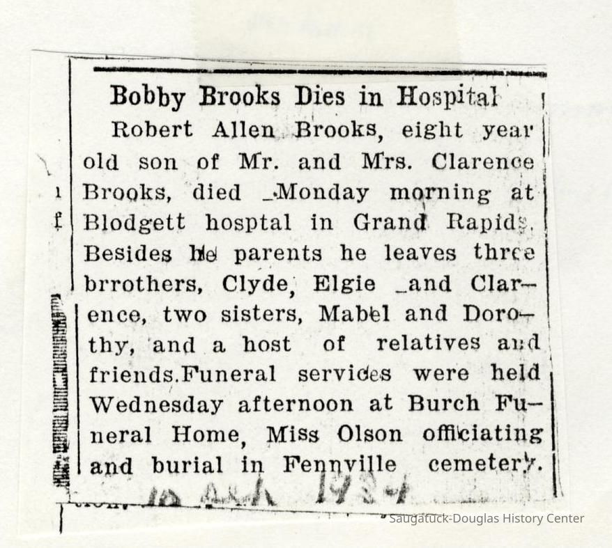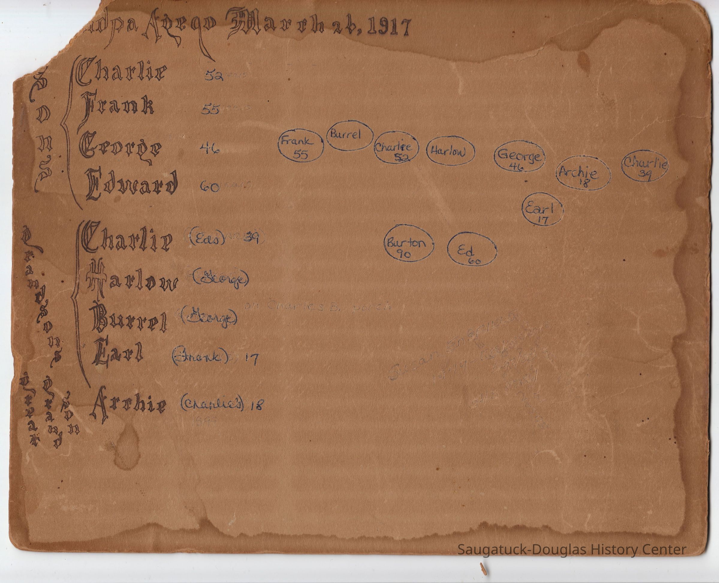 Ensfield and Grosvenor family research information including scans of photos, obituaries and funeral programs collected by Chris Yoder. Many of the subject people have Fennville and Ganges farming connections.