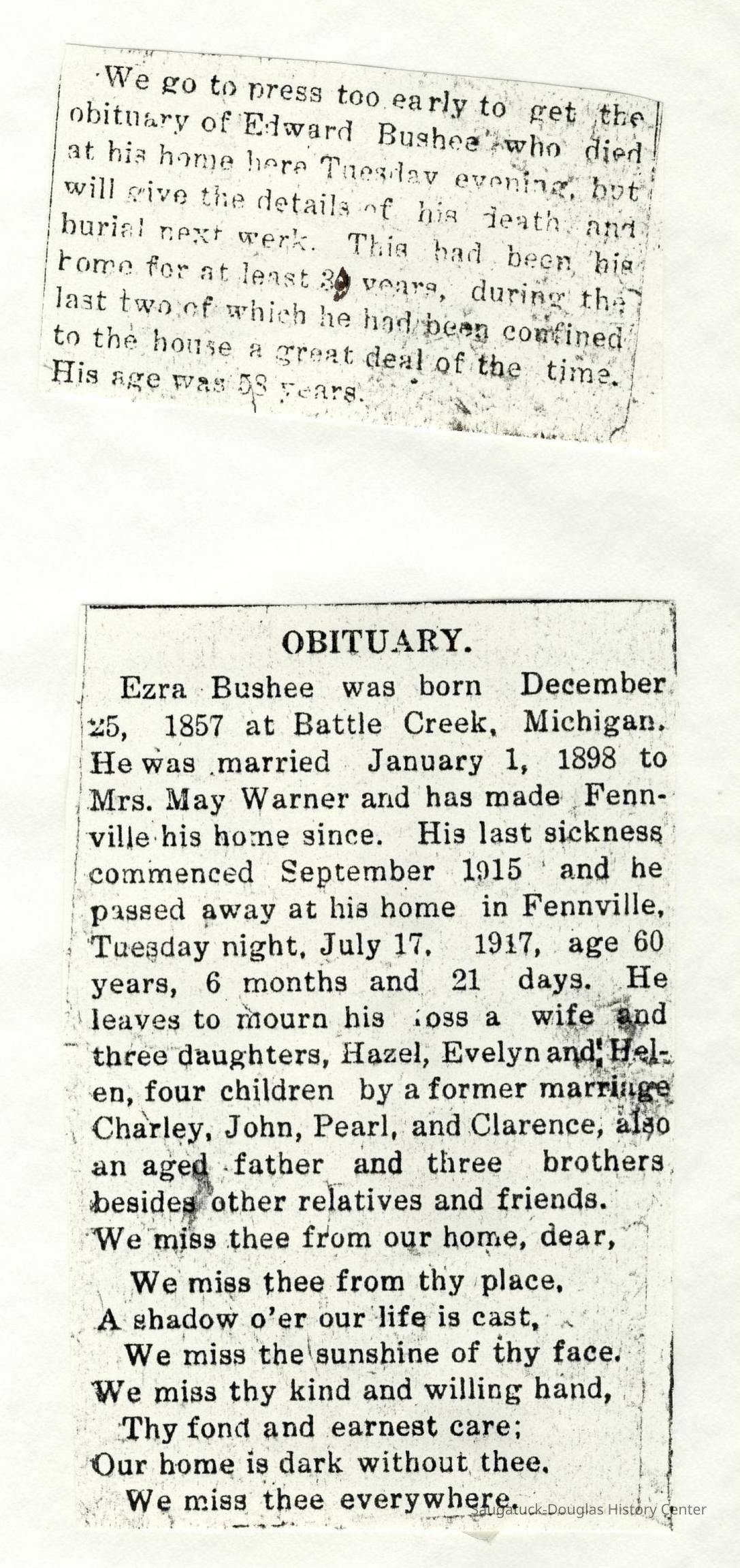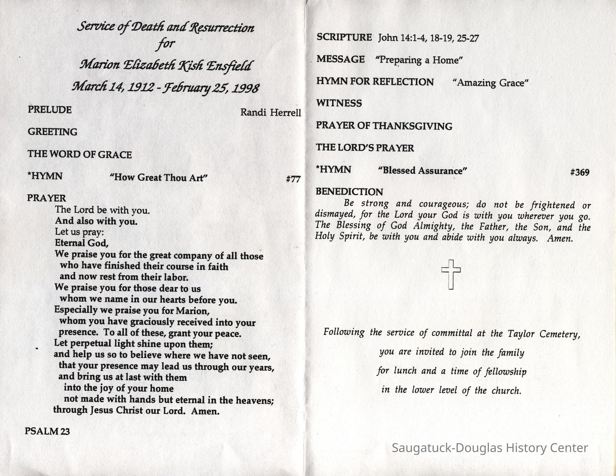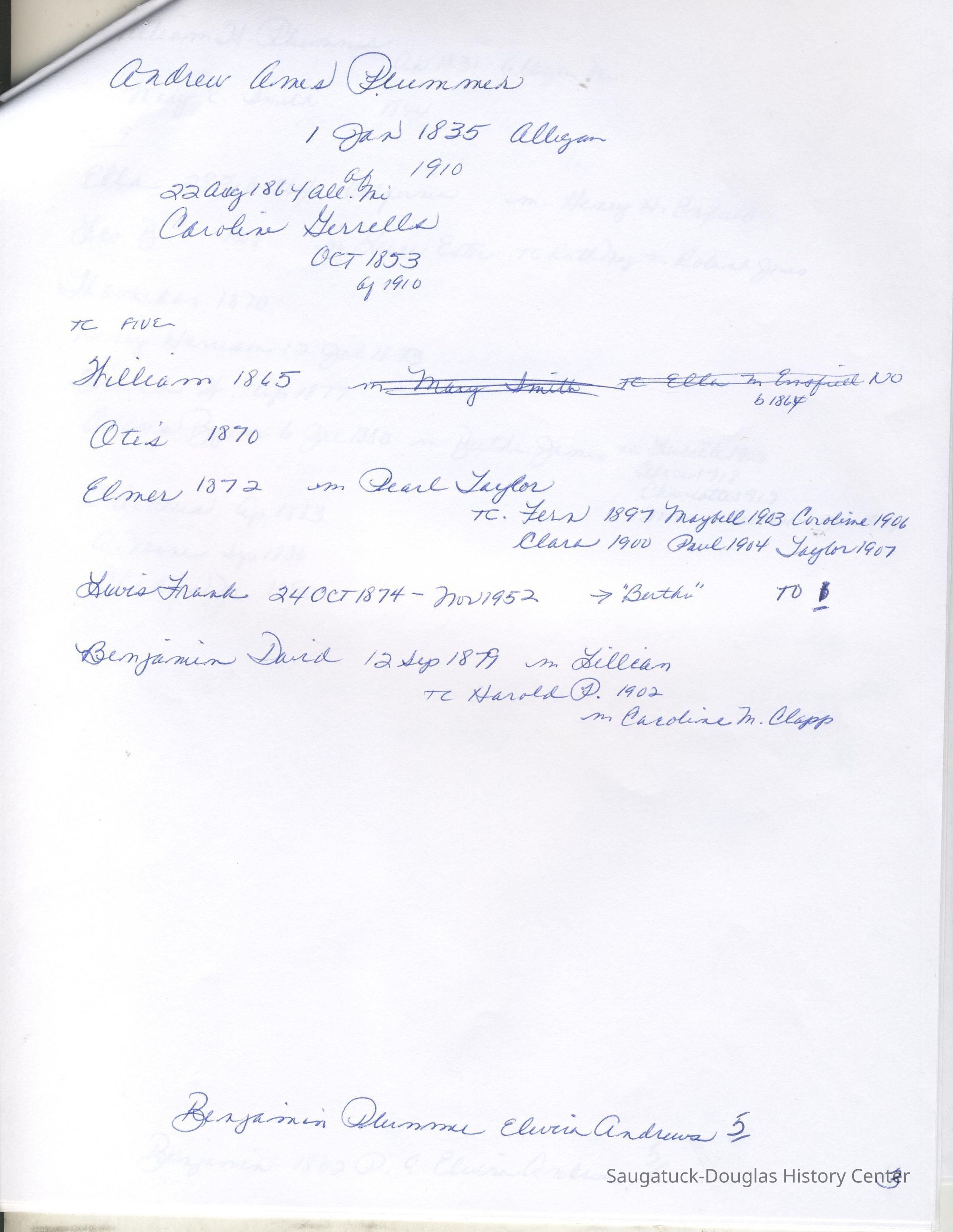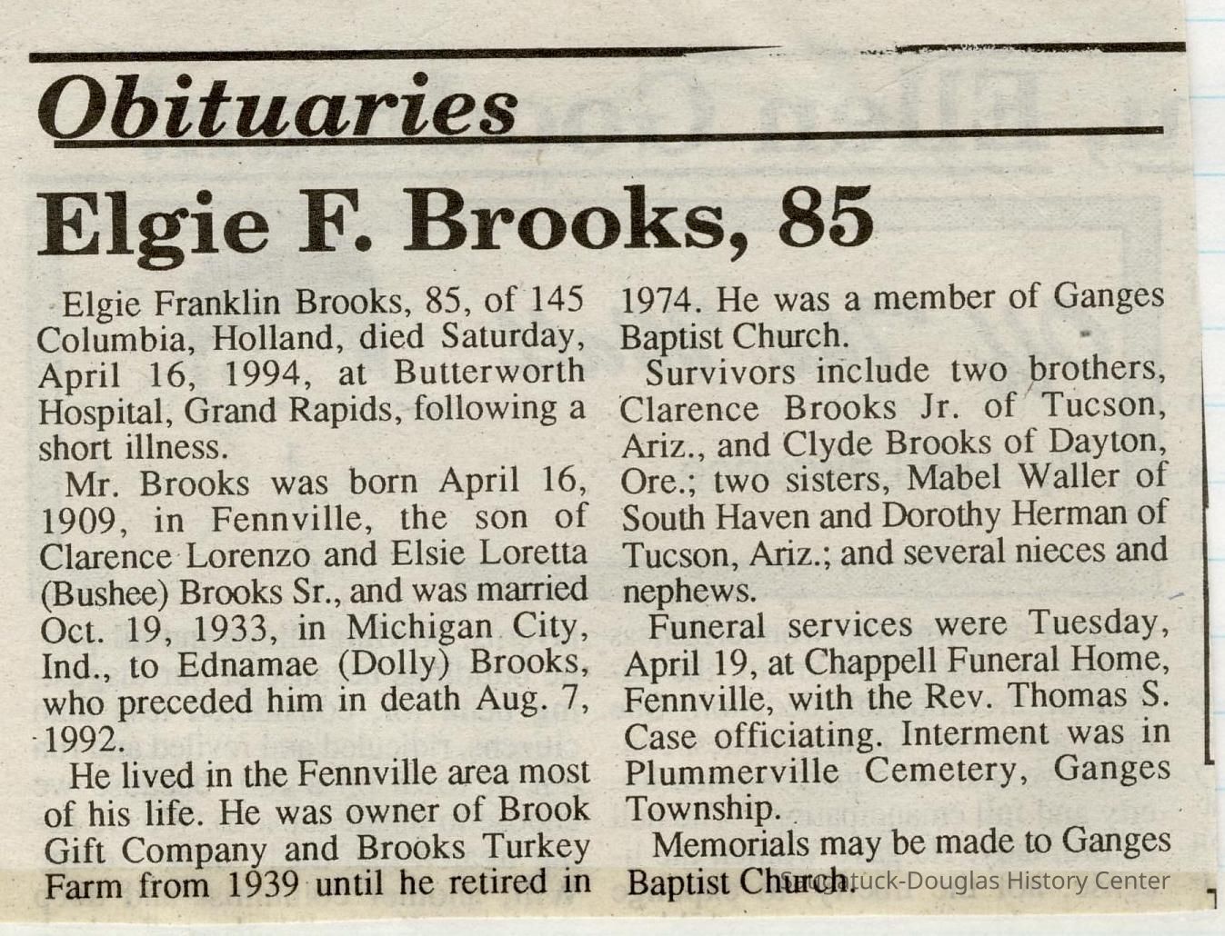 Ensfield and Grosvenor family research information including scans of photos, obituaries and funeral programs collected by Chris Yoder. Many of the subject people have Fennville and Ganges farming connections.