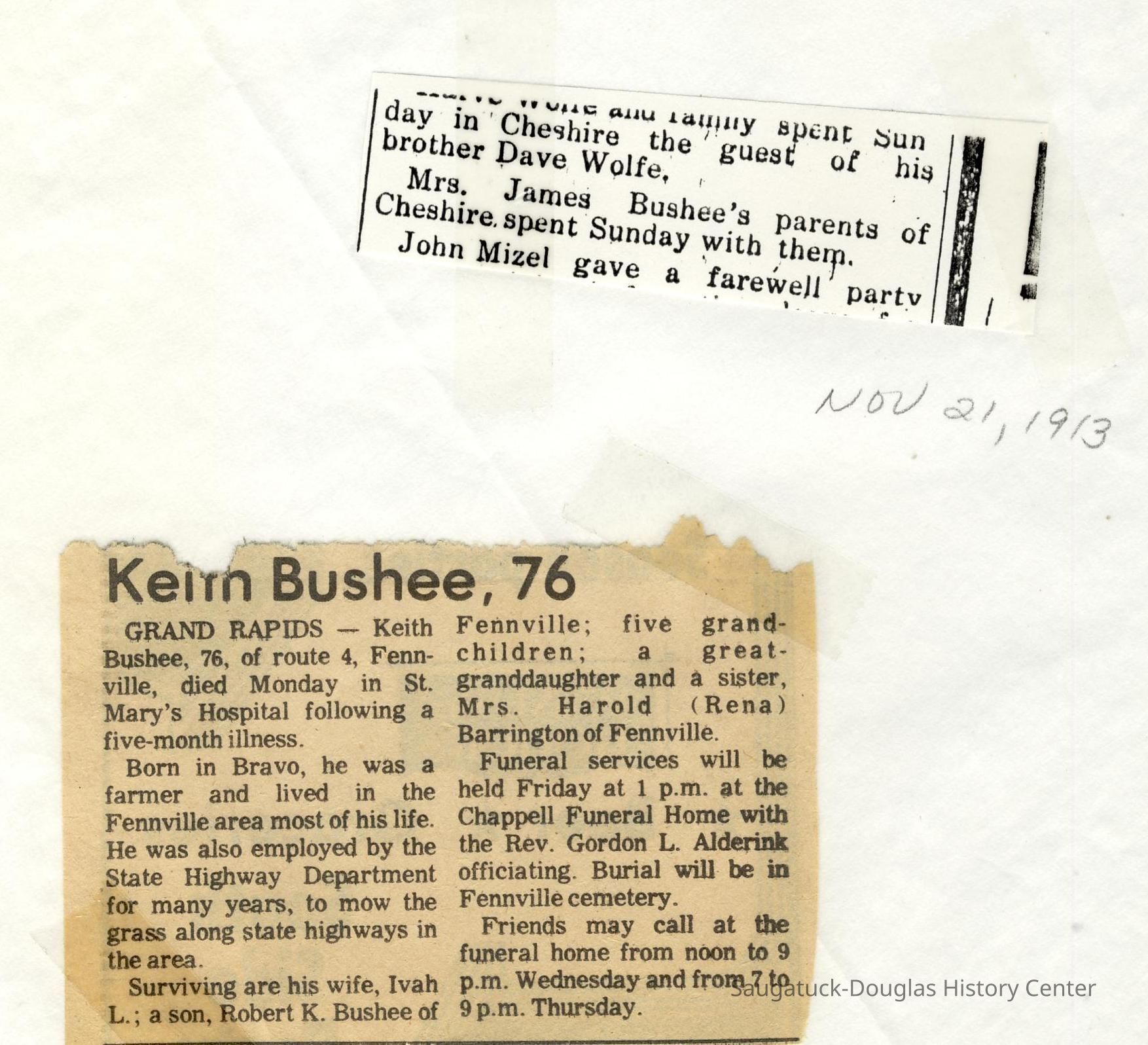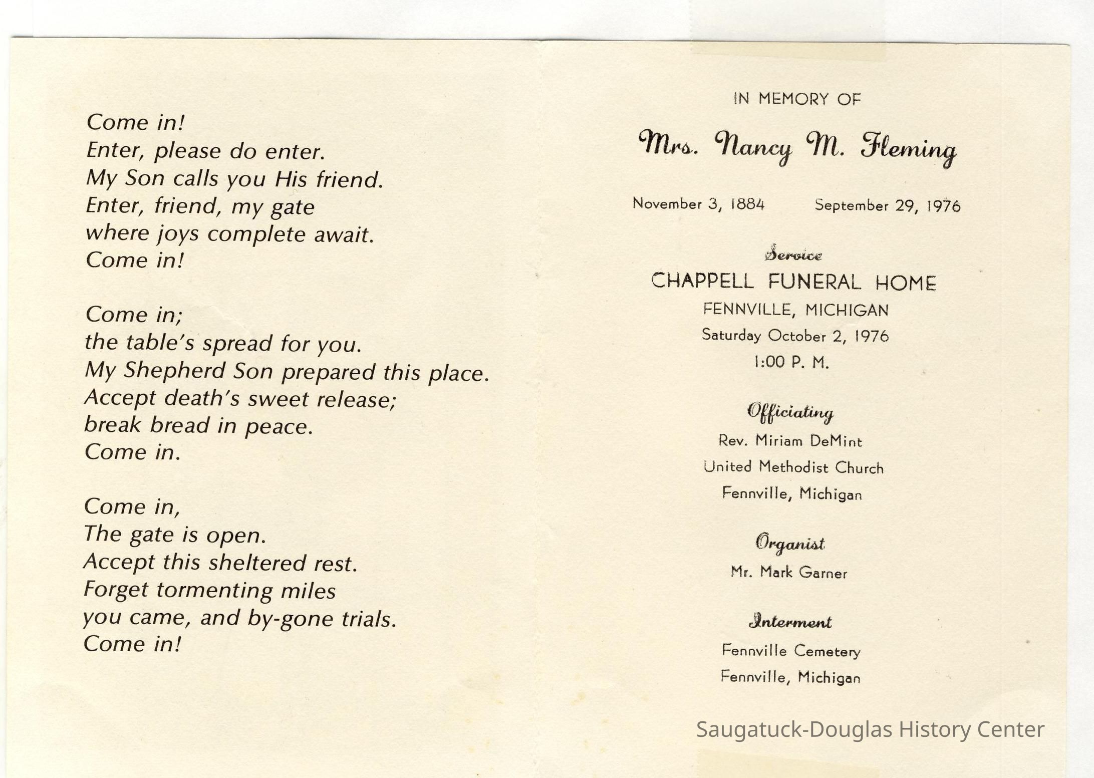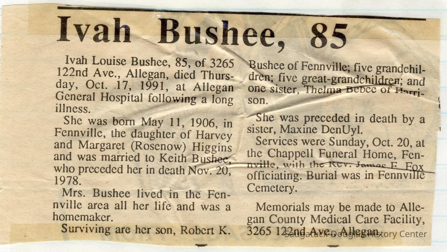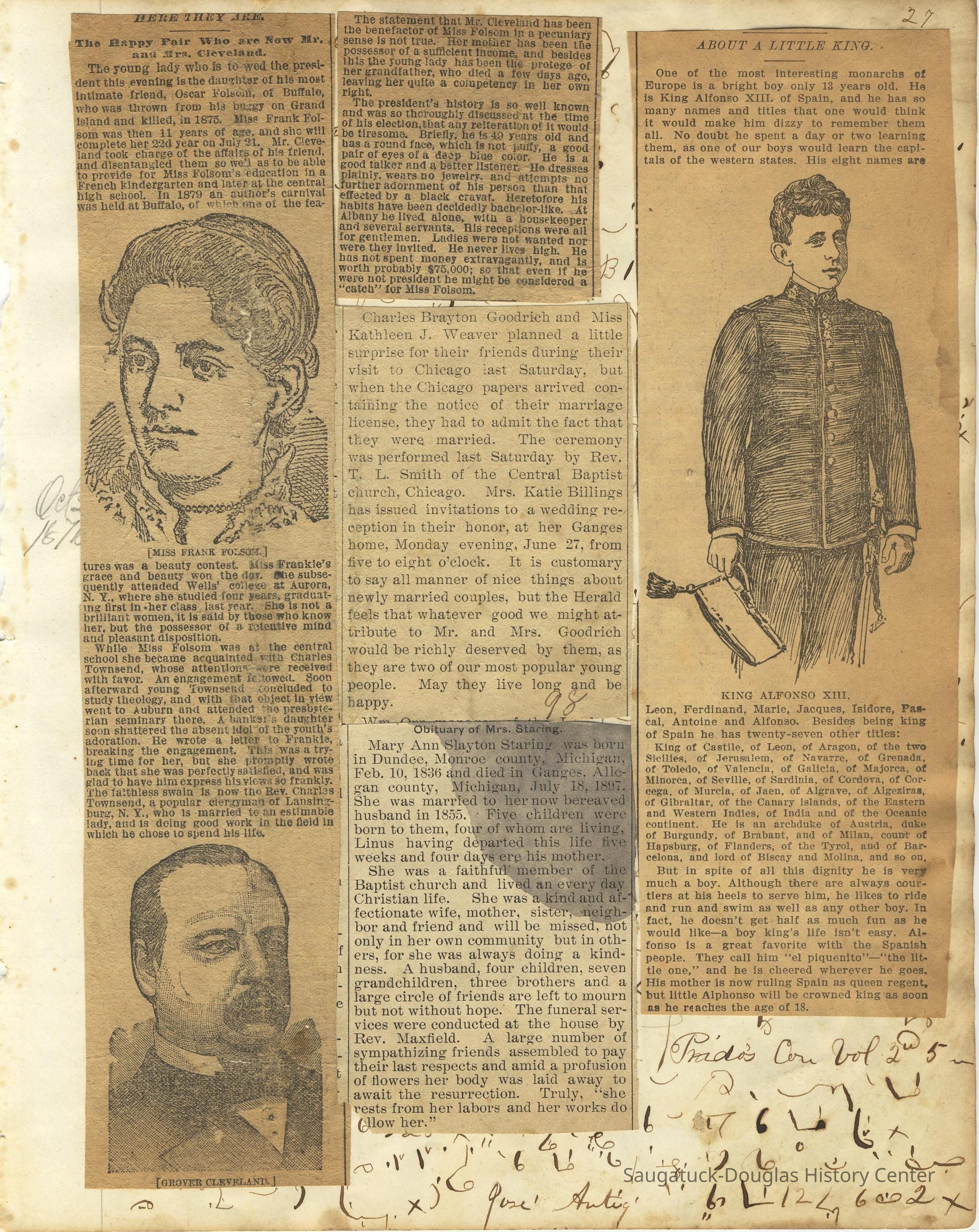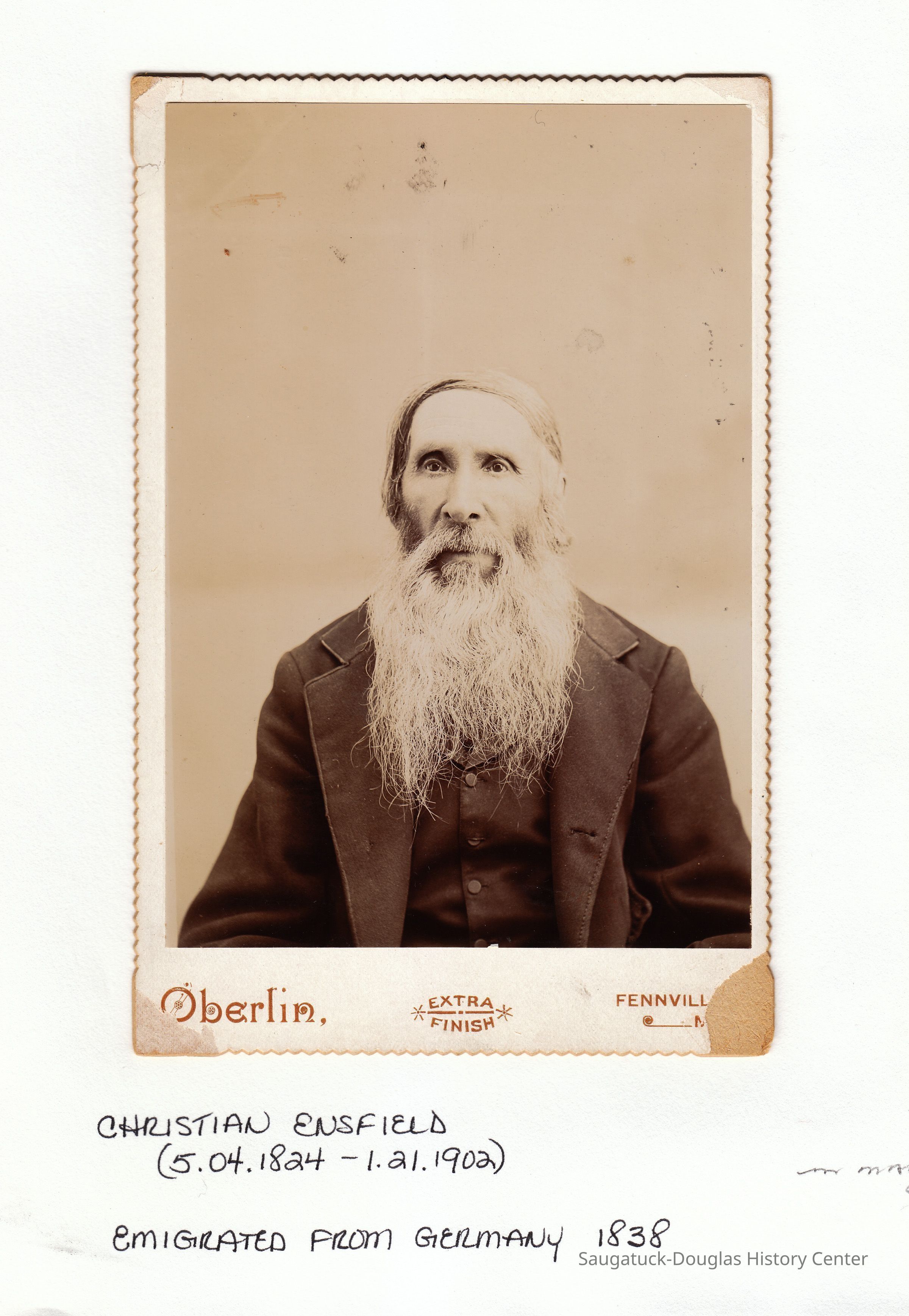 Ensfield and Grosvenor family research information including scans of photos, obituaries and funeral programs collected by Chris Yoder. Many of the subject people have Fennville and Ganges farming connections.