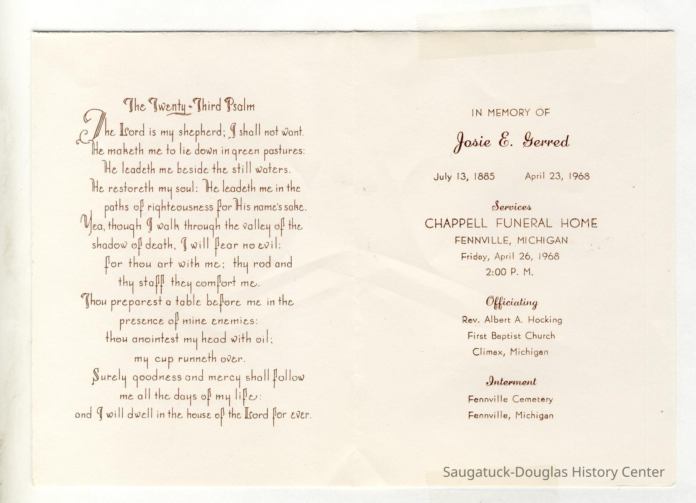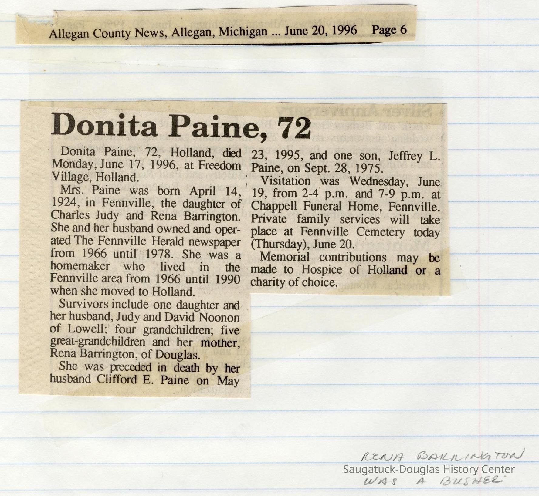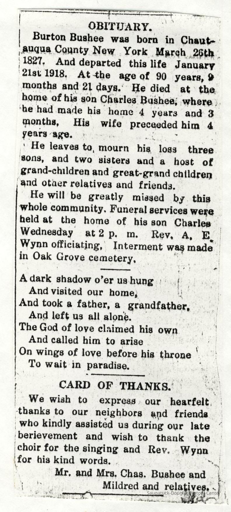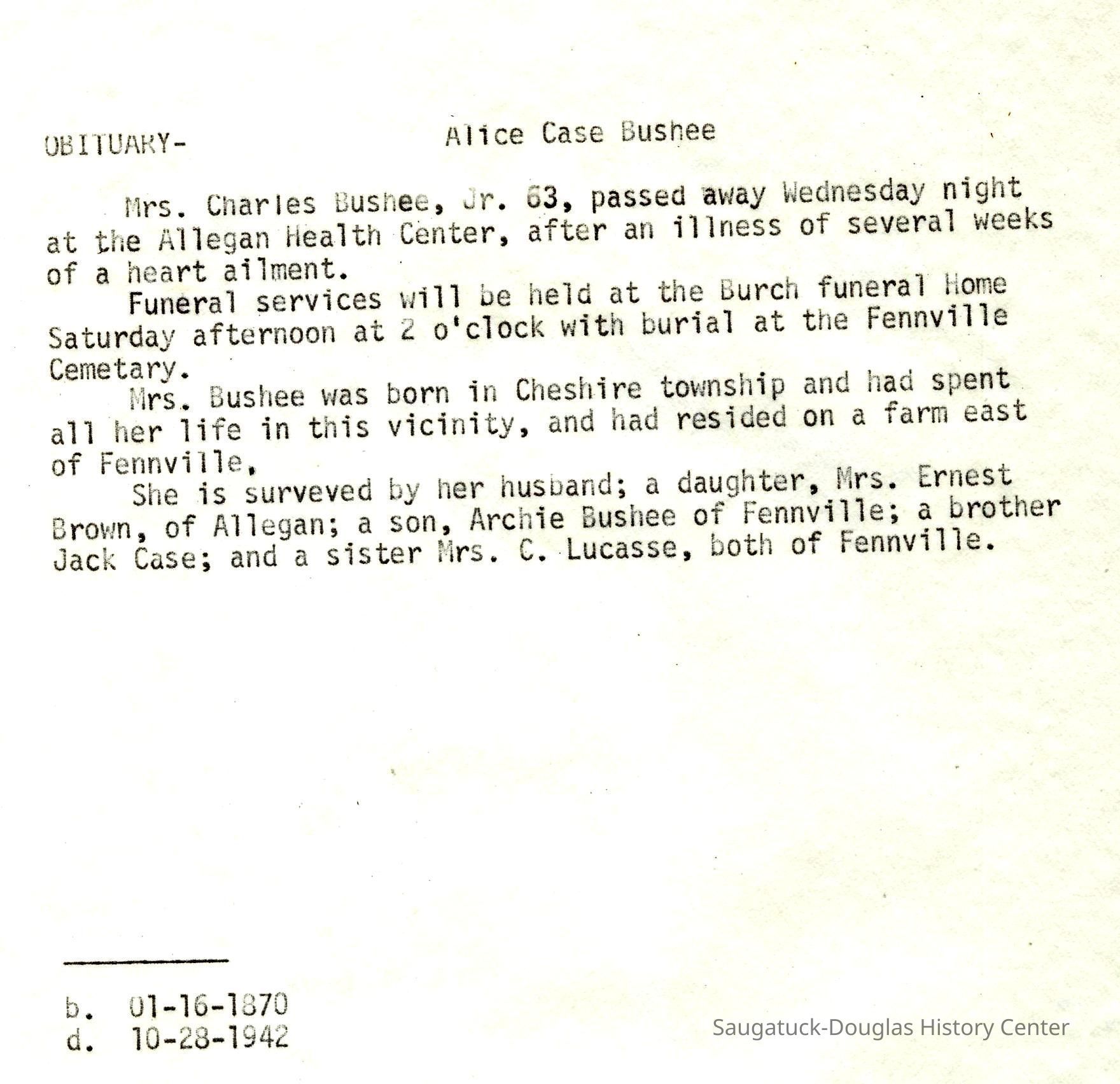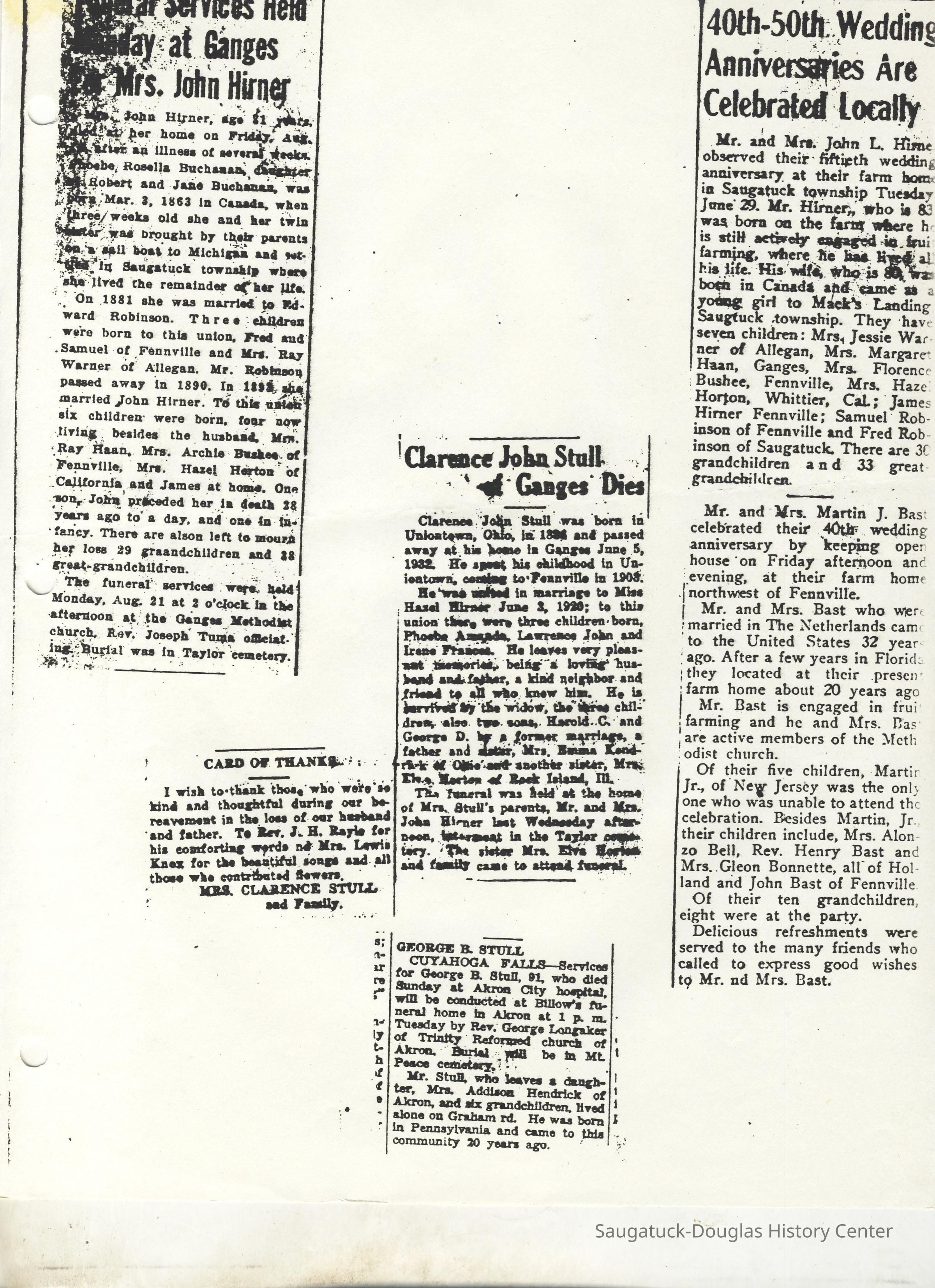 Ensfield and Grosvenor family research information including scans of photos, obituaries and funeral programs collected by Chris Yoder. Many of the subject people have Fennville and Ganges farming connections.
