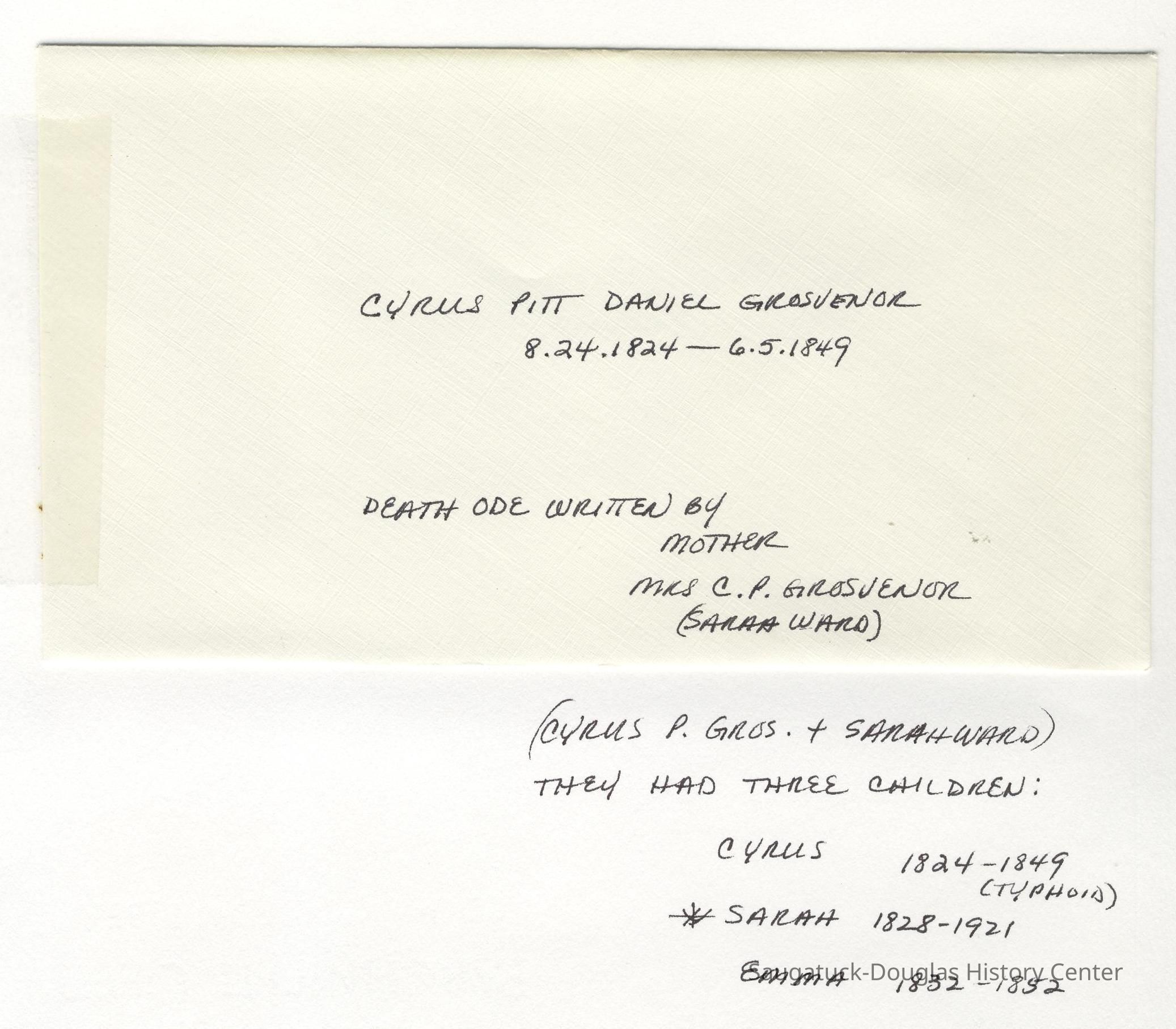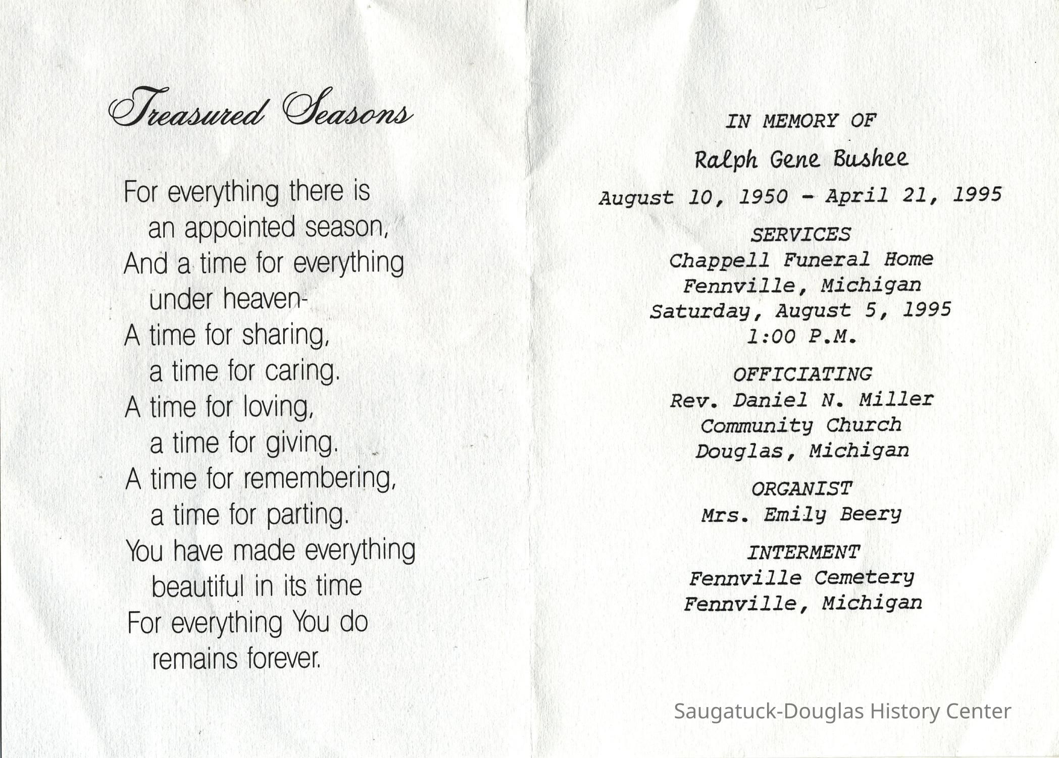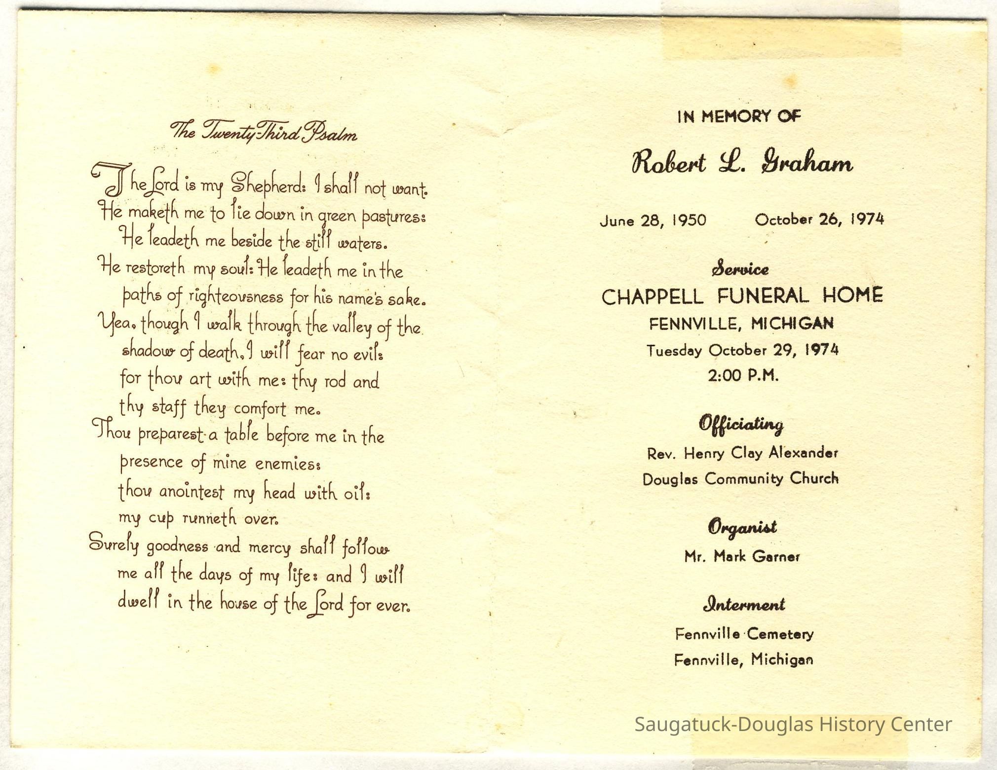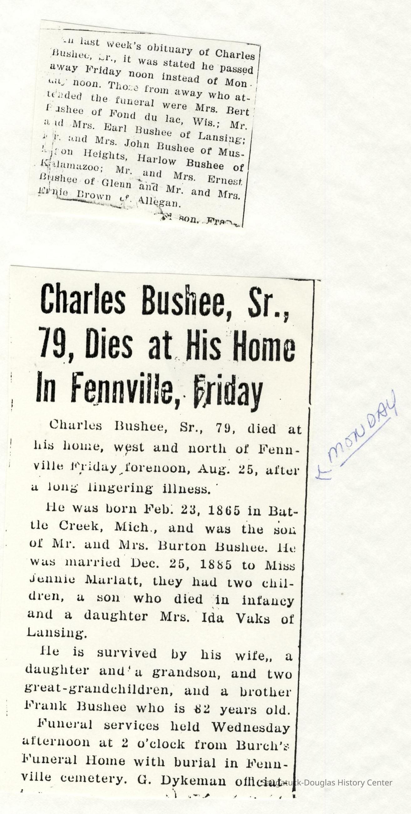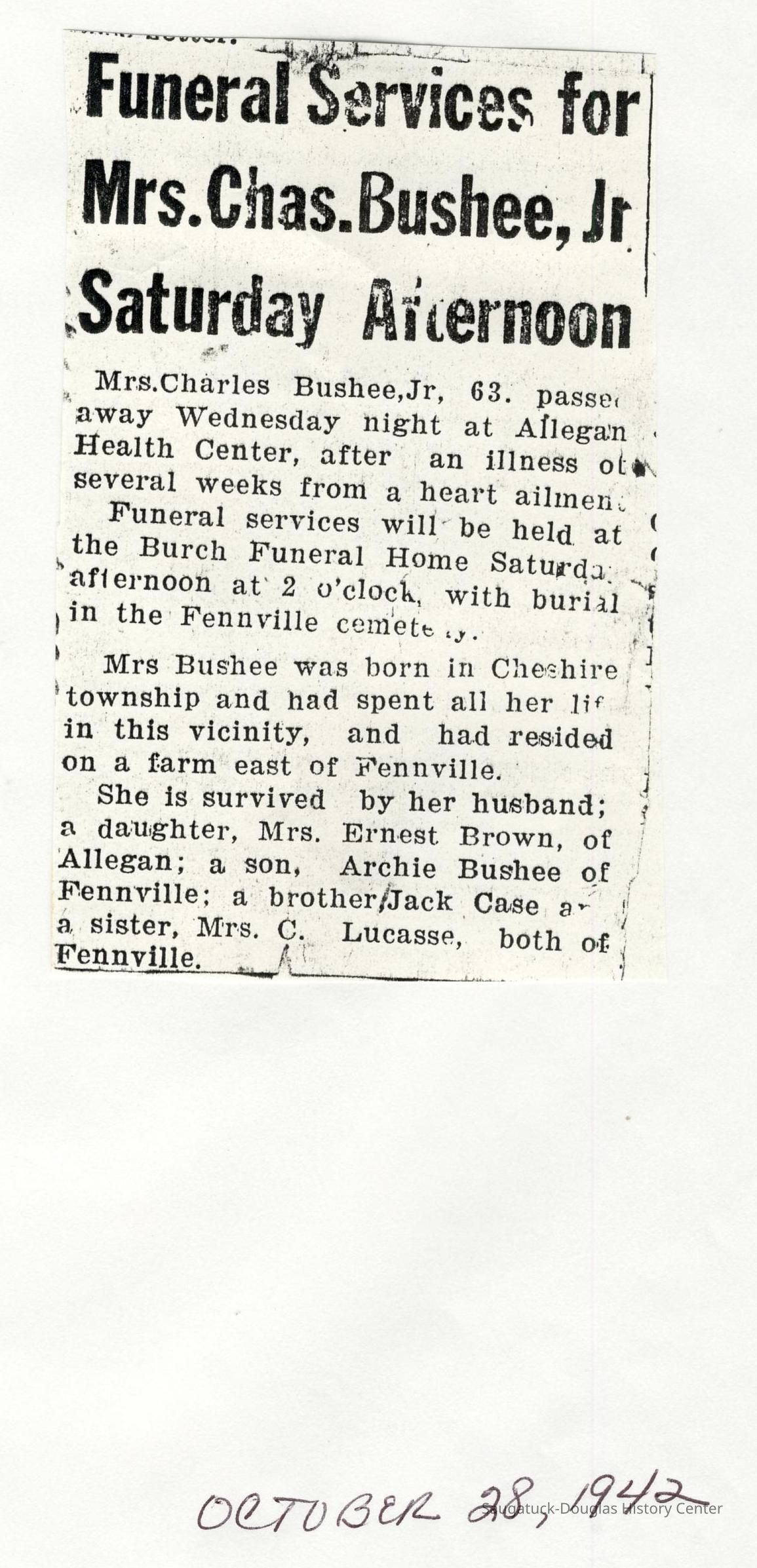 Ensfield and Grosvenor family research information including scans of photos, obituaries and funeral programs collected by Chris Yoder. Many of the subject people have Fennville and Ganges farming connections.