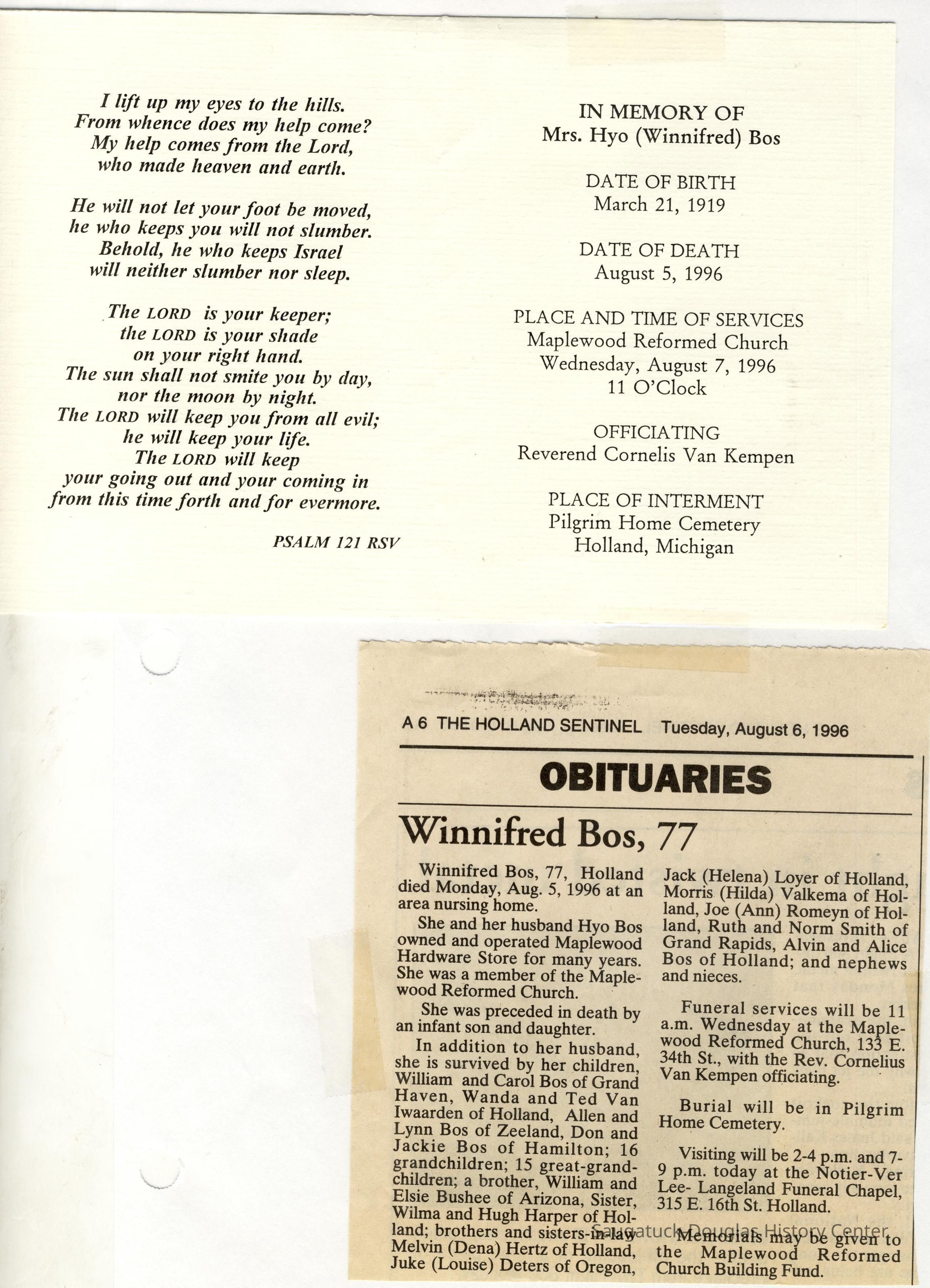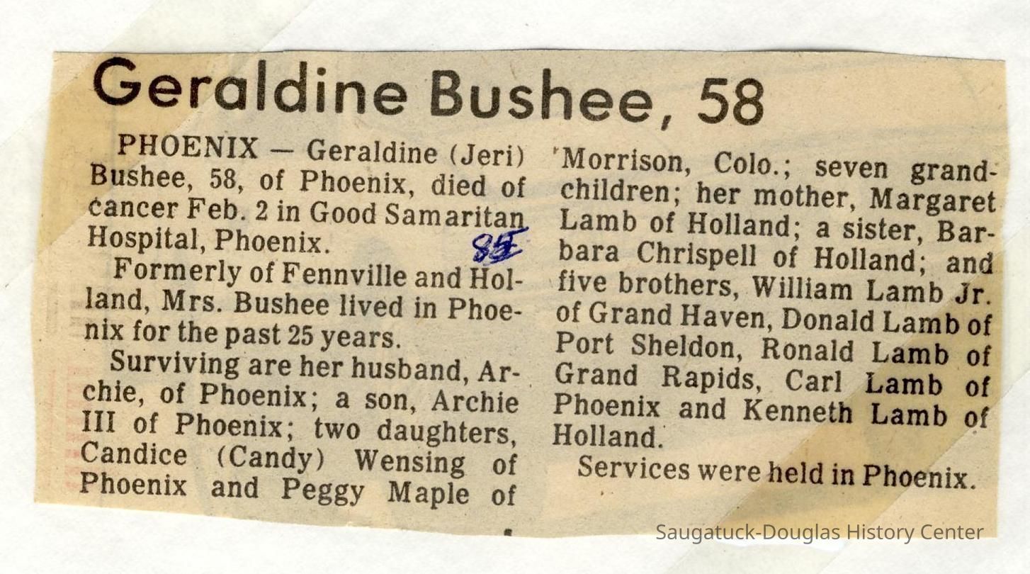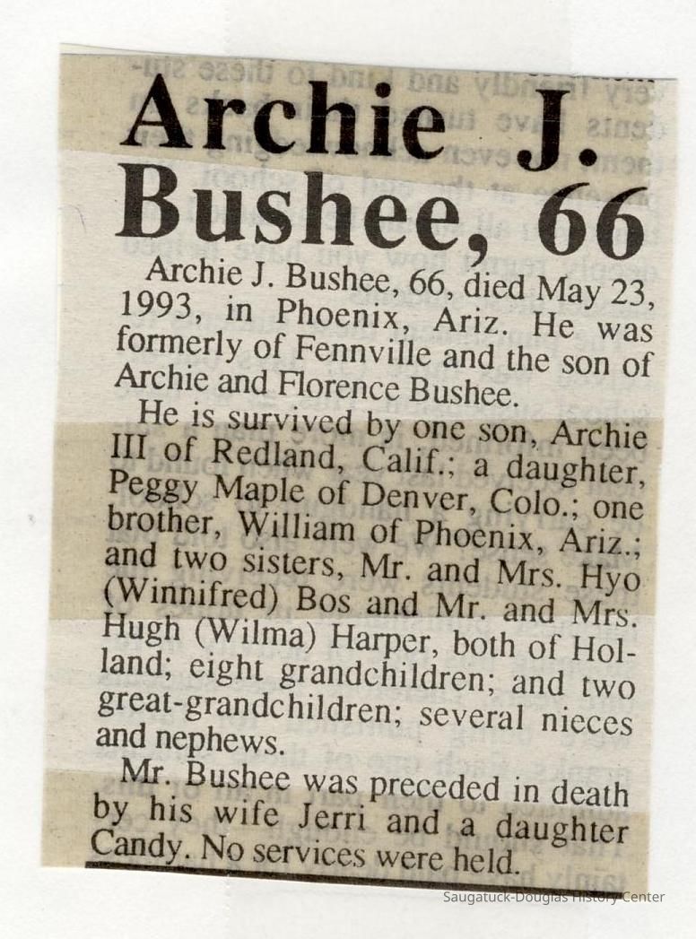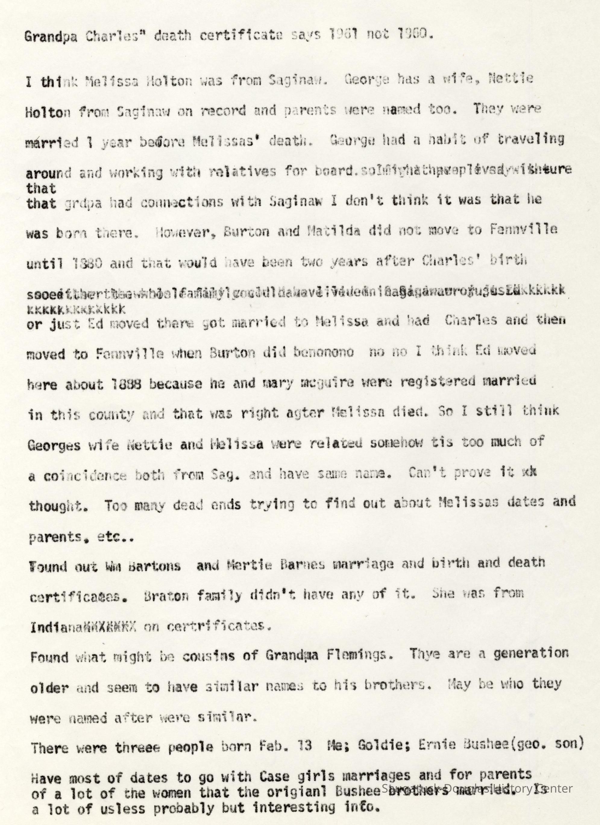 Also information about members of the Bos, Brooks, Bushee, Fleming, Gerred, Gilbert, Hirner, Hoy, Harper, Hartsuiker, Holmes, Horton, Ingallinera, Johnson, Meyer, Paine, Parks, Robinson, Schregardus, Schultz, Snellenberger, and Stuff families.Collection