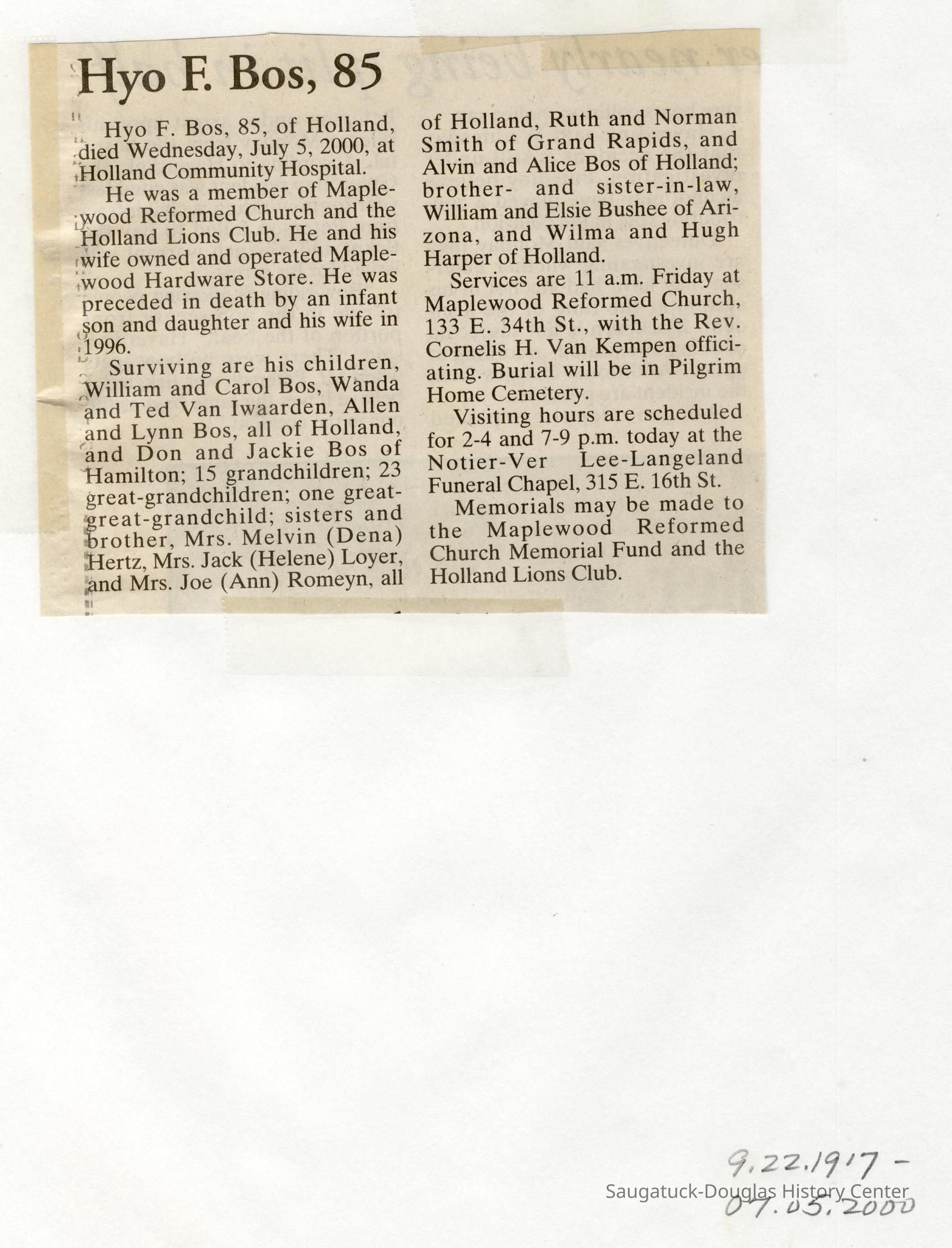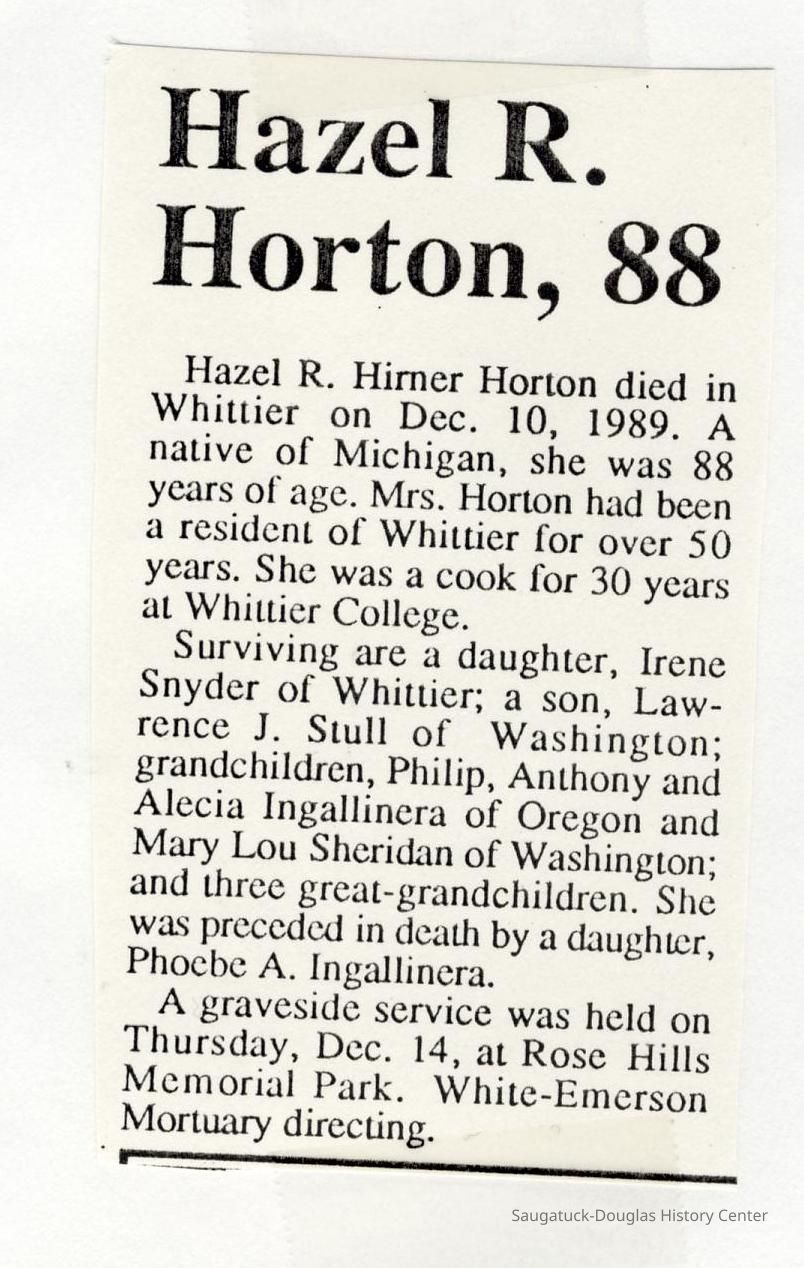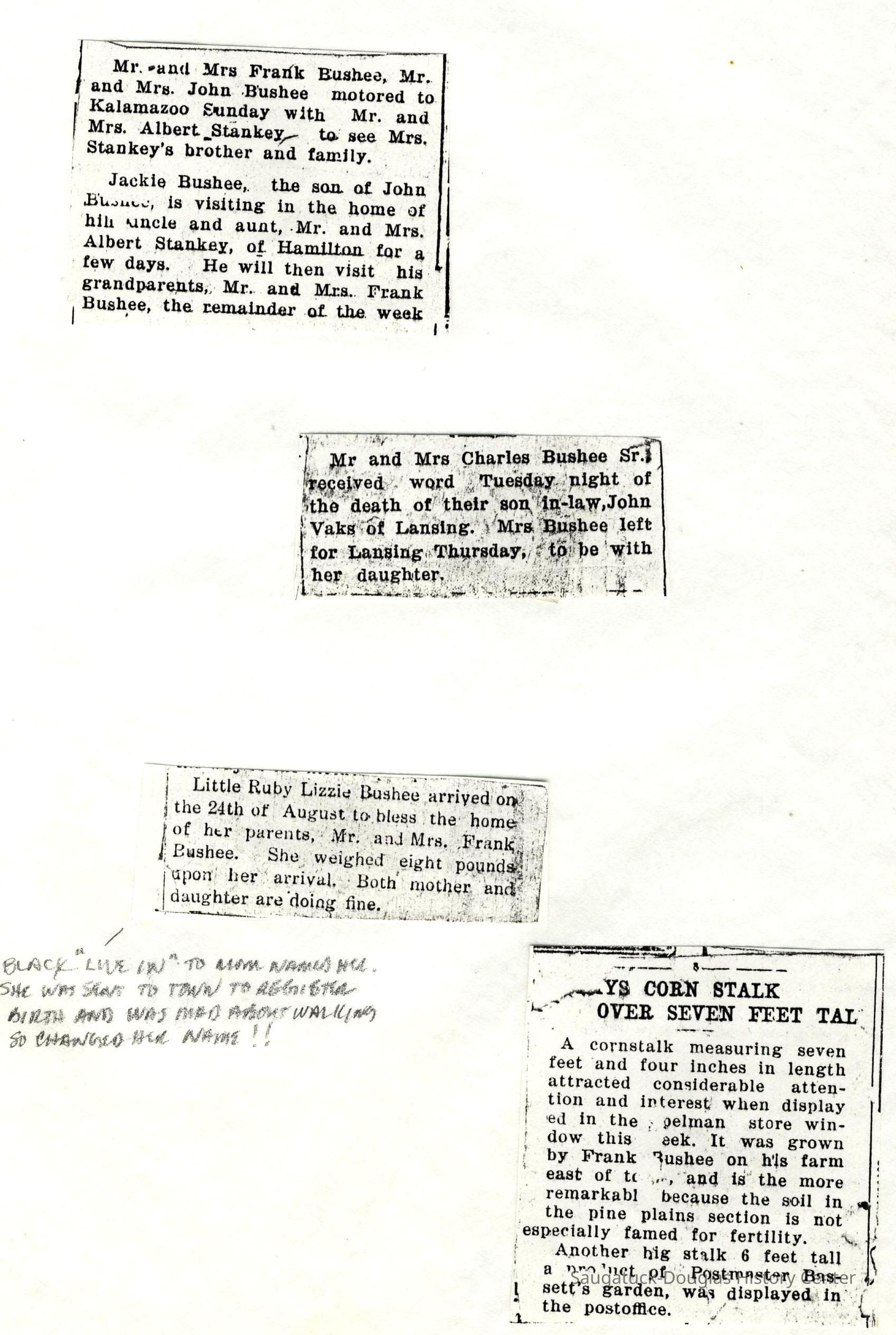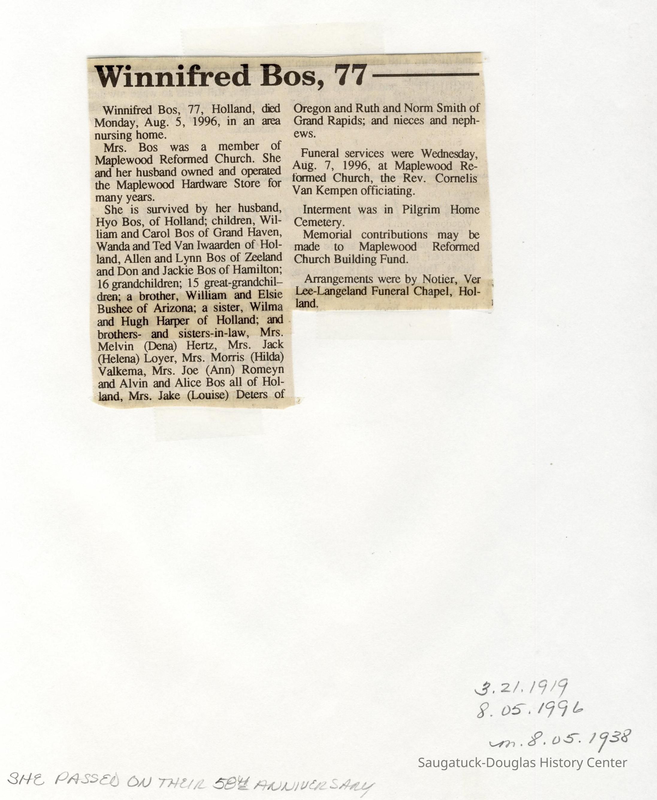 Also information about members of the Bos, Brooks, Bushee, Fleming, Gerred, Gilbert, Hirner, Hoy, Harper, Hartsuiker, Holmes, Horton, Ingallinera, Johnson, Meyer, Paine, Parks, Robinson, Schregardus, Schultz, Snellenberger, and Stuff families.Collection