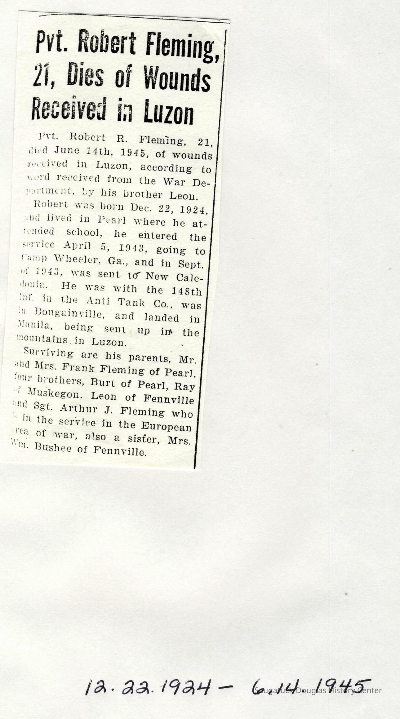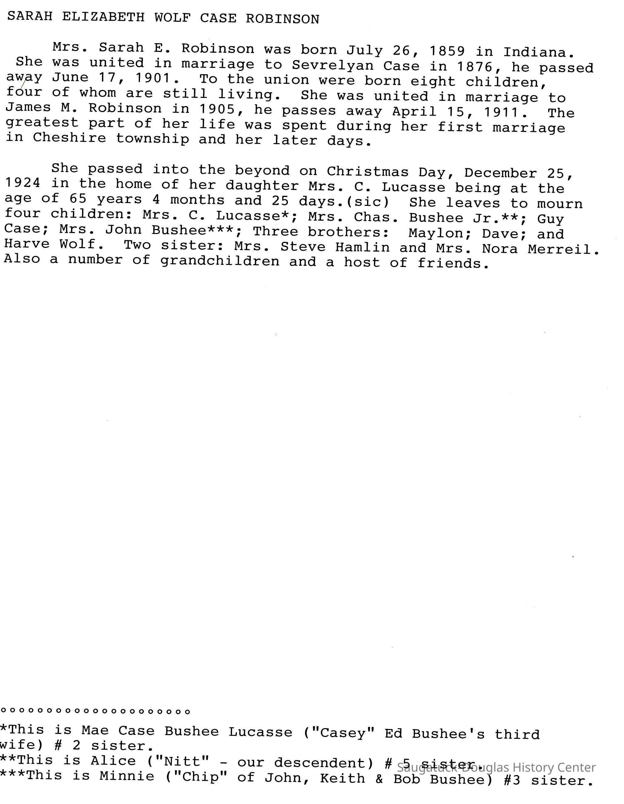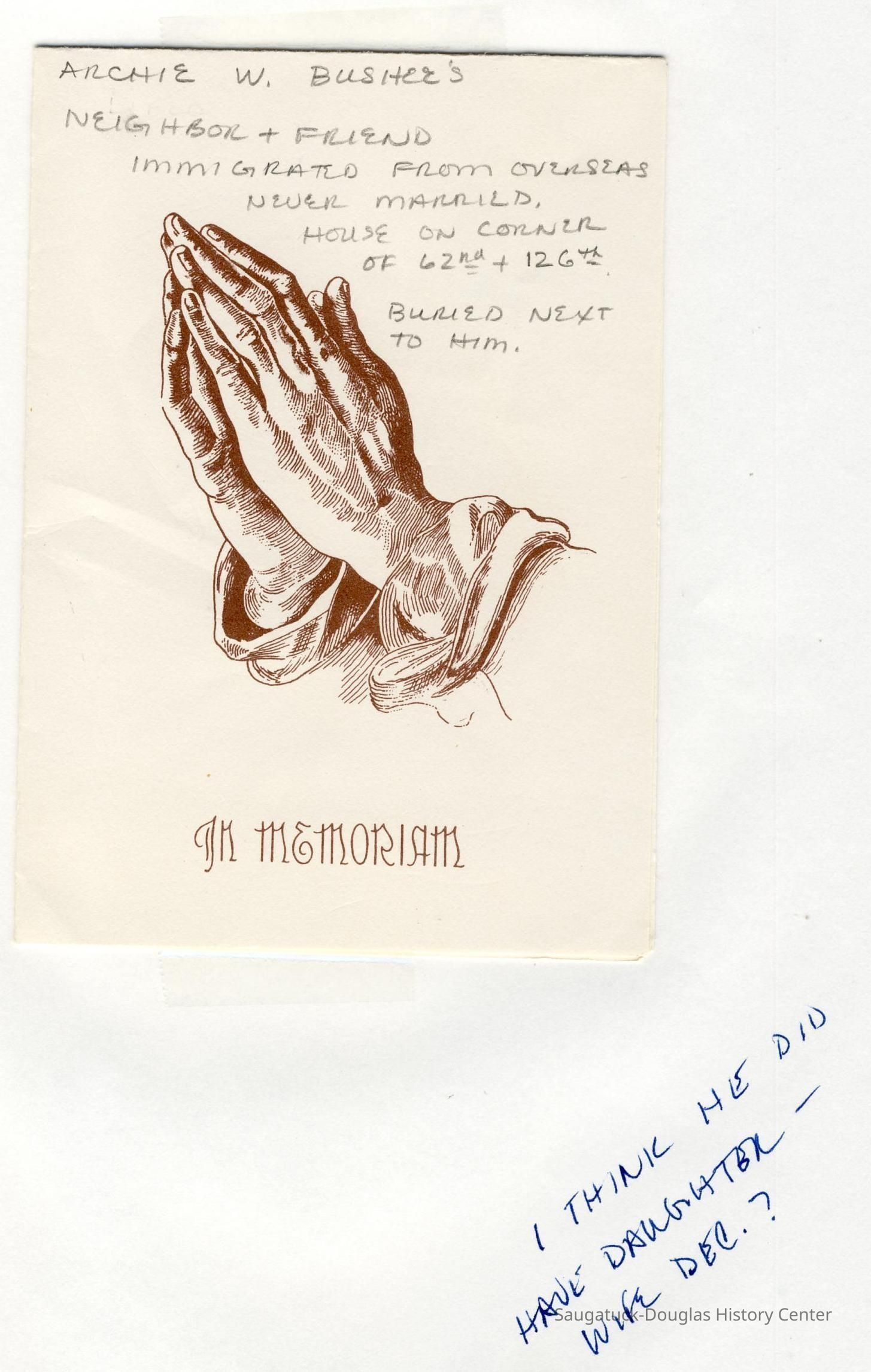 Also information about members of the Bos, Brooks, Bushee, Fleming, Gerred, Gilbert, Hirner, Hoy, Harper, Hartsuiker, Holmes, Horton, Ingallinera, Johnson, Meyer, Paine, Parks, Robinson, Schregardus, Schultz, Snellenberger, and Stuff families.Collection