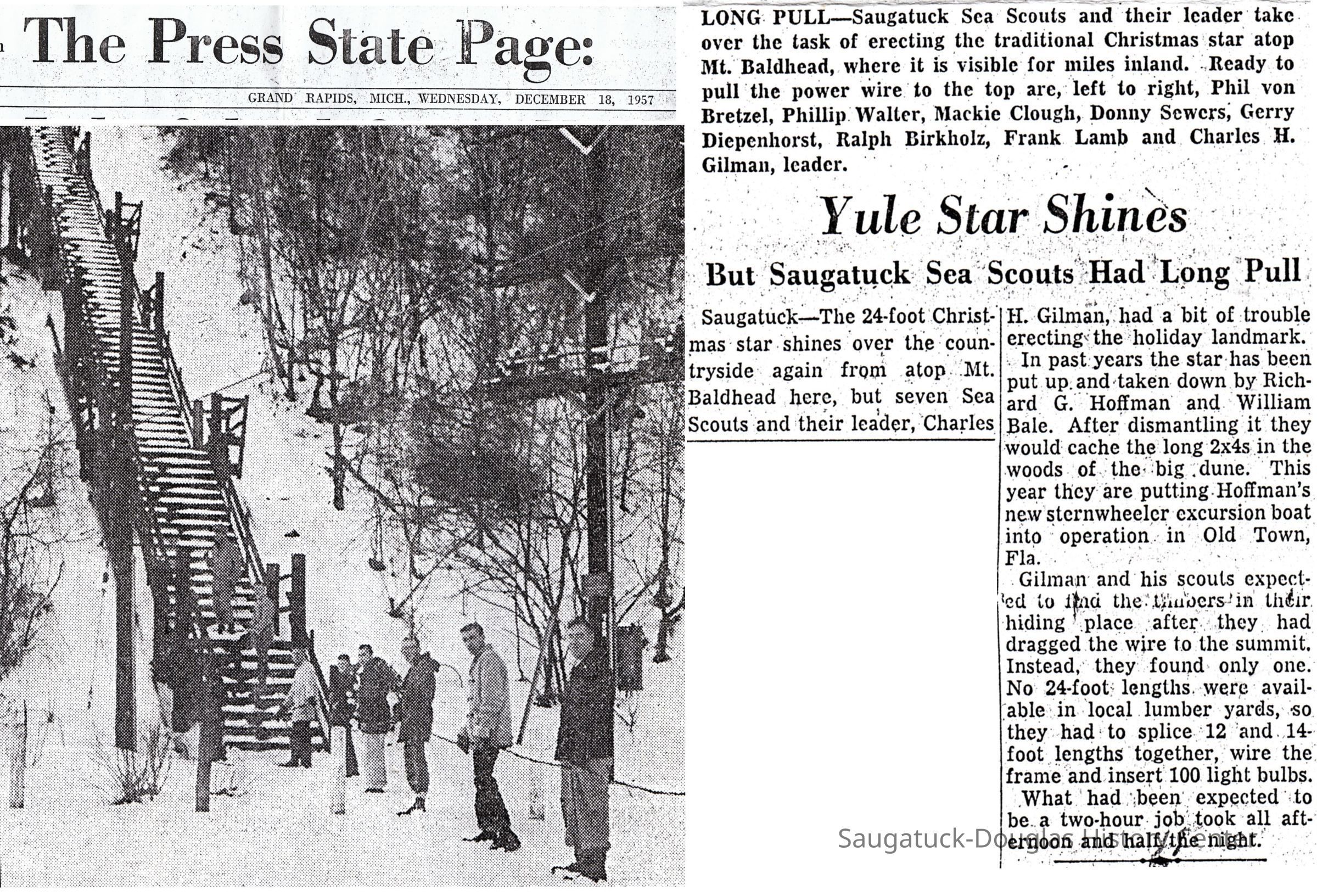 110 0/2 Saugatuck - Clubs, Baldhead 11/1957 Sea Scouts erecting Christmas star