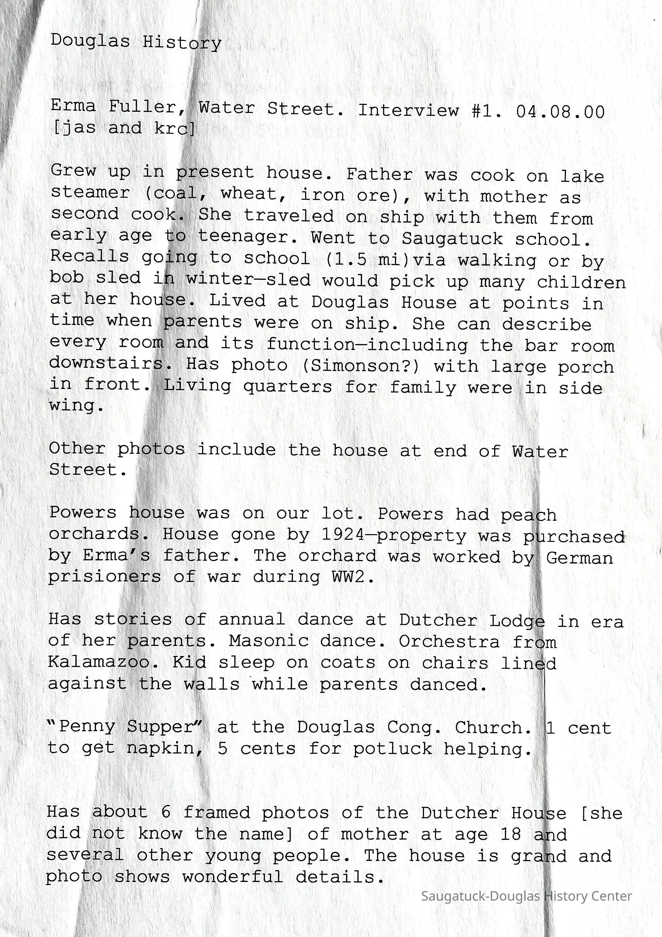 This content was created by Saugatuck-Douglas History Center volunteers or was donated to the Center in a good faith effort to preserve local history. If you feel this content should not be available to the public — or have additional information that will add context to this material — please contact the SDHC Archives at archives@mysdhistory.org.