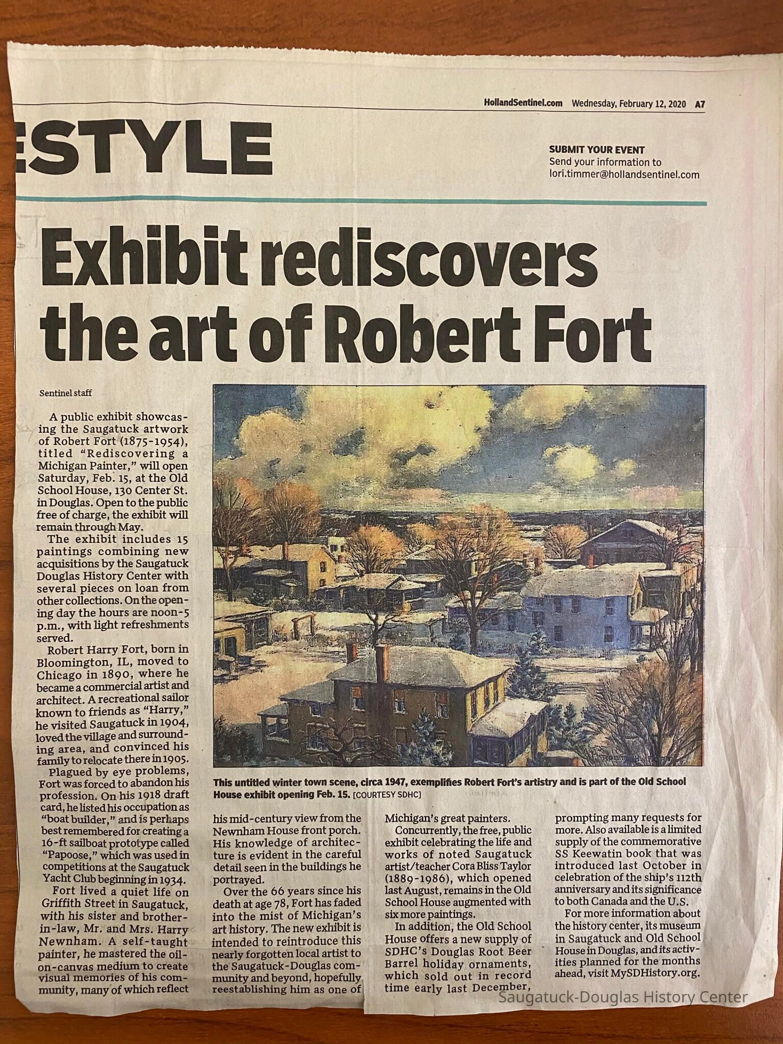 Newspaper article from Holland Sentinel February 12, 2020 describes the Robert Fort exhibit entitled re-discovering a Michigan PainterPublication Details