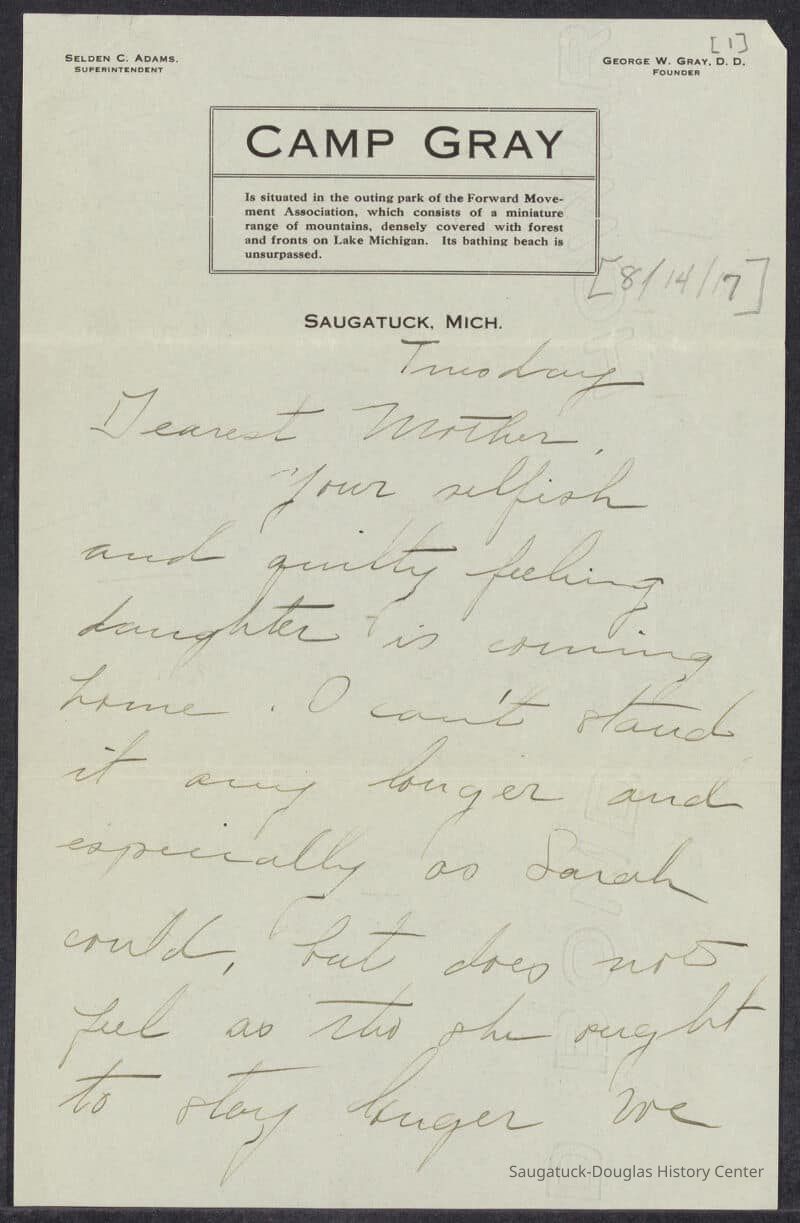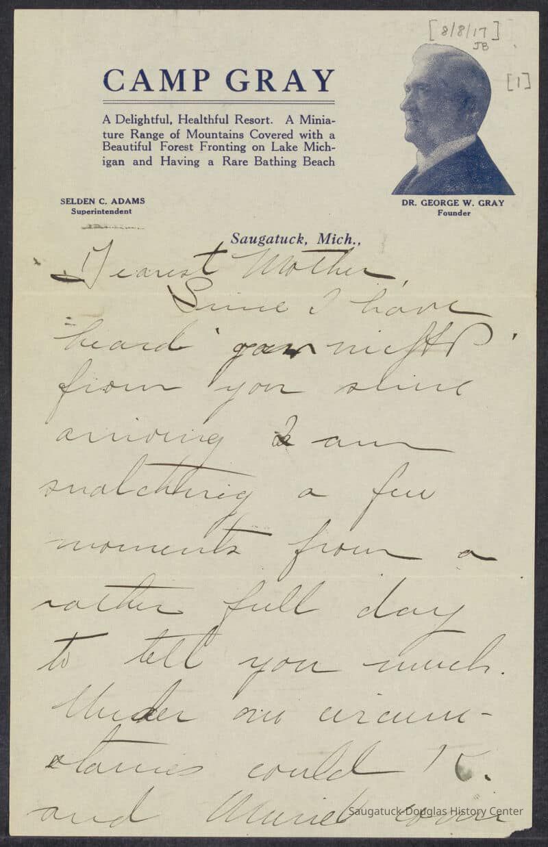 Kit Lane's 2005 book "Saugatuck Visitors 1848-2003" covers James Fenimore Cooper, Francis B. Stockbridge, Mrs. John Hull, Captain Frederick Pabst, David C. Cook, Pokagon family, Carl Sandburg, Edgar Lee Masters, Thomas Eddy Tallmadge, Bolton Brothers, Countess Bernadette, E. Stanley Jones, Carrie Snodgrass, Burr Tillstrom, Alice Cooper and REO Speedwagon.Collection