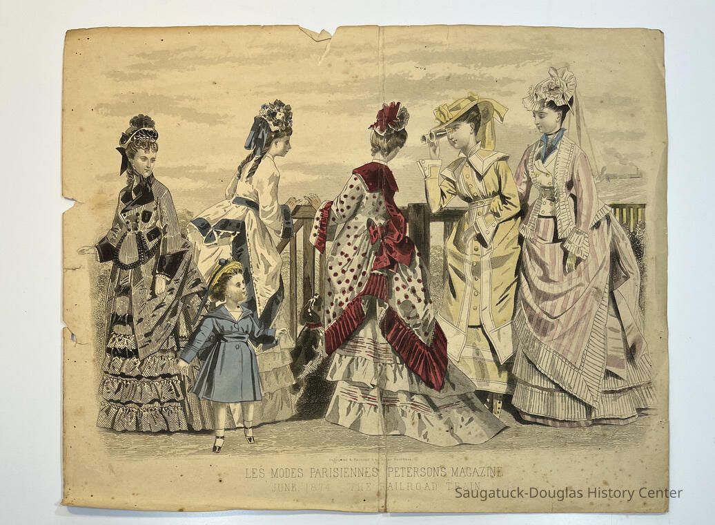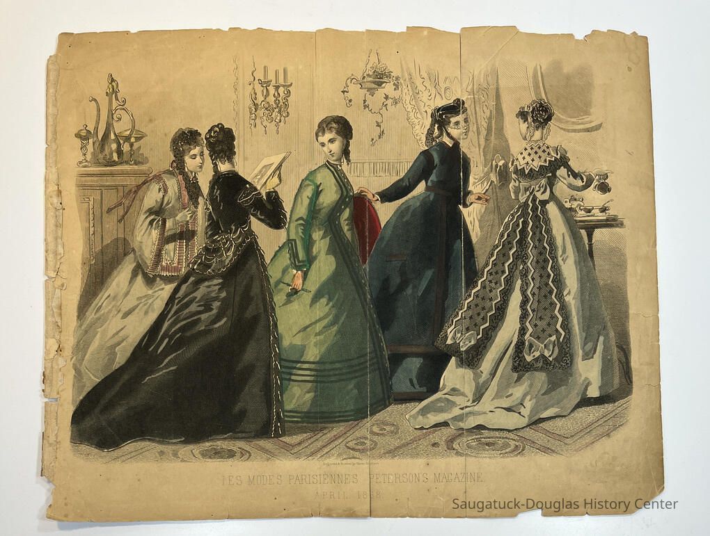Two pairs of pages of "Les Modes Parisiennes" from "Petersons Magazine," 1868 and 1874. Pages are not backed with gauze.Context