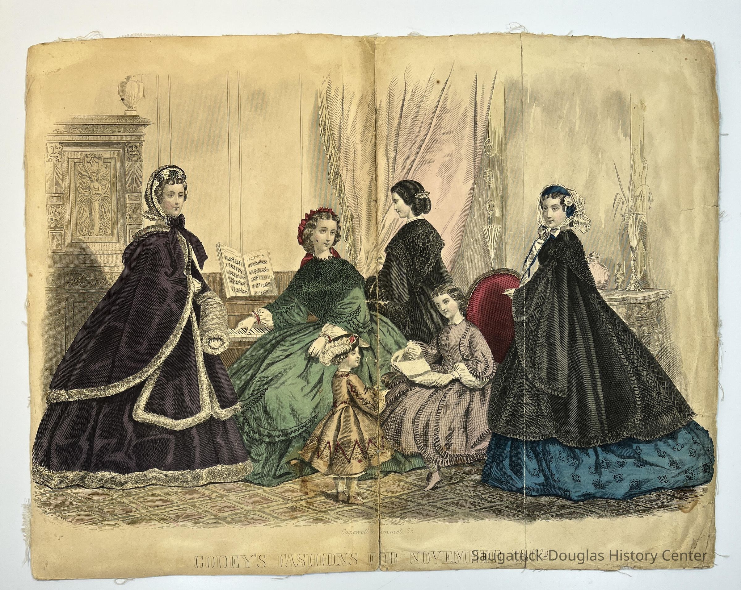 Fashion plates influenced American attitudes about dressing to show a person's social status, the importance of looking to far-off Paris to follow trends, femininity, and provides a record of what upper-class women were presented as aspirational clothing.Acquisition
