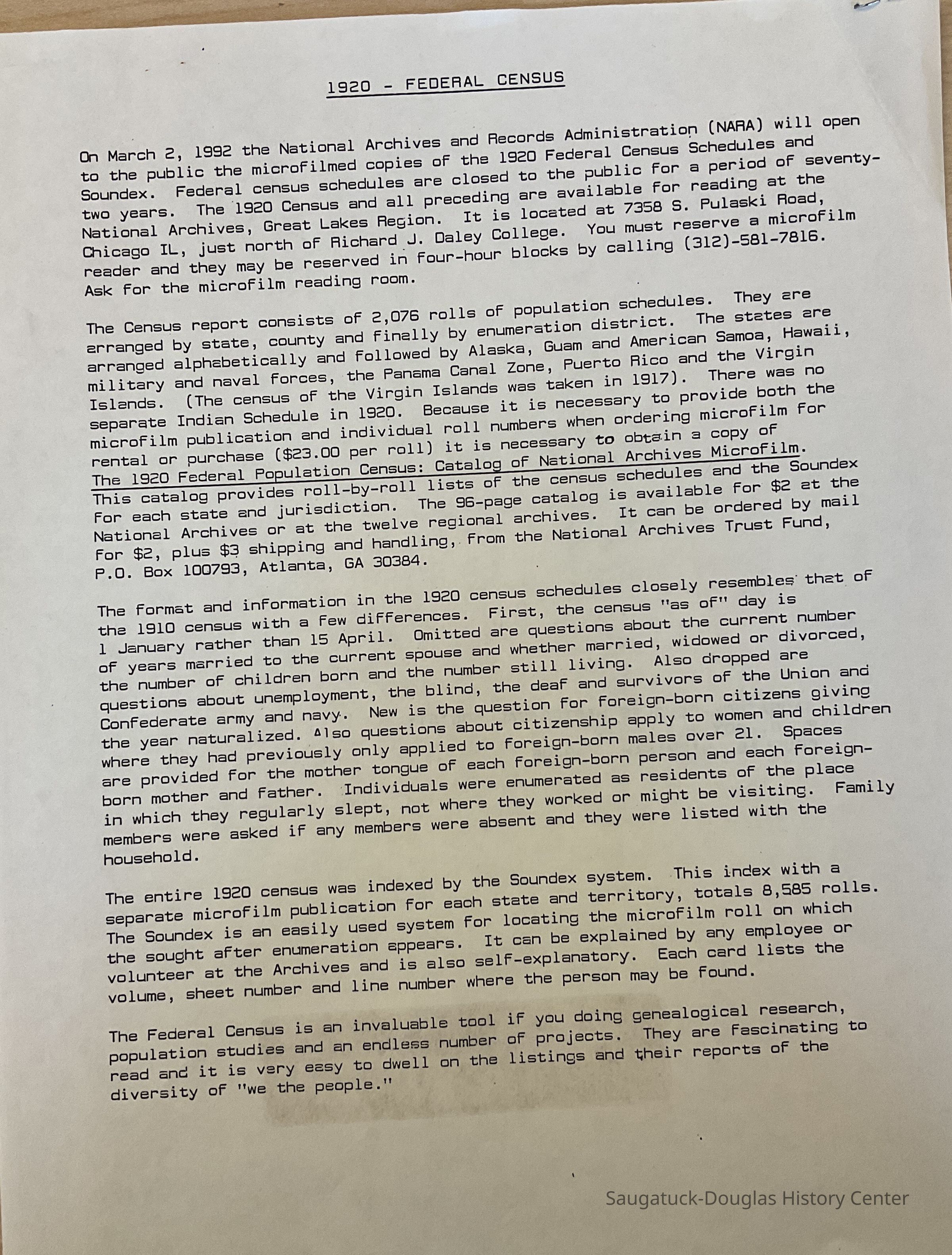 Information about the 1920 Federal Census.Cataloged By